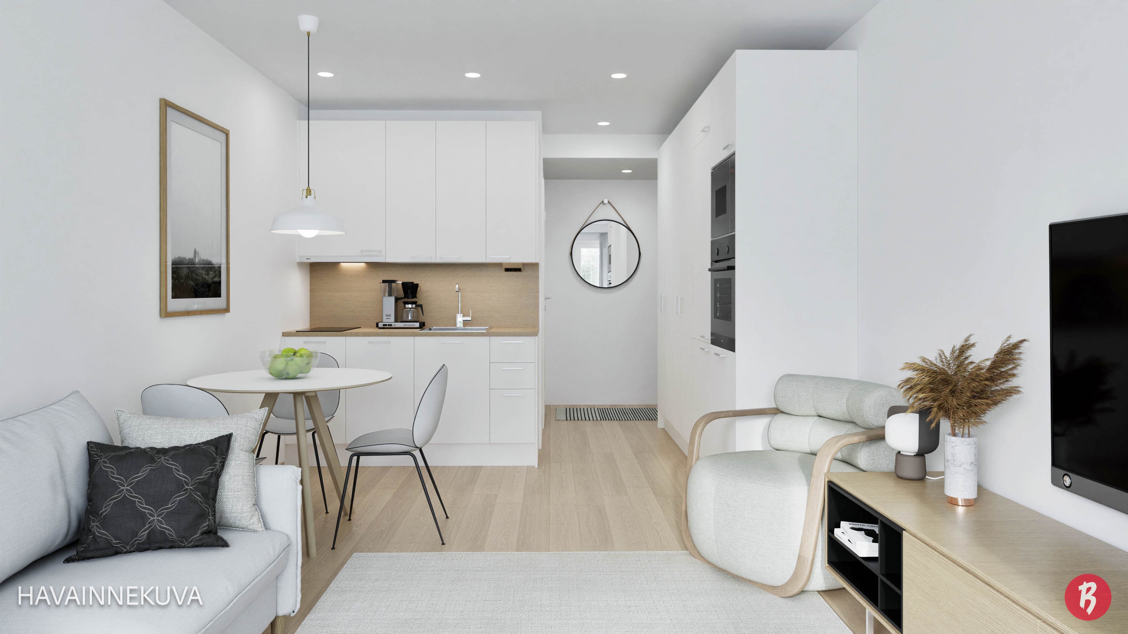 Asunnon moderni keittiö on varustettu uusilla kodinkoneilla, ja kylpyhuoneessa on mukavuutta tuova lattialämmitys. Tyylikäs vinyylilattia ja maalatut seinäpinnat luovat raikkaan ilmeen koko asunnolle. Etelään avautuva lasitettu parveke tarjoaa viihtyisän tilan rentoutumiseen.