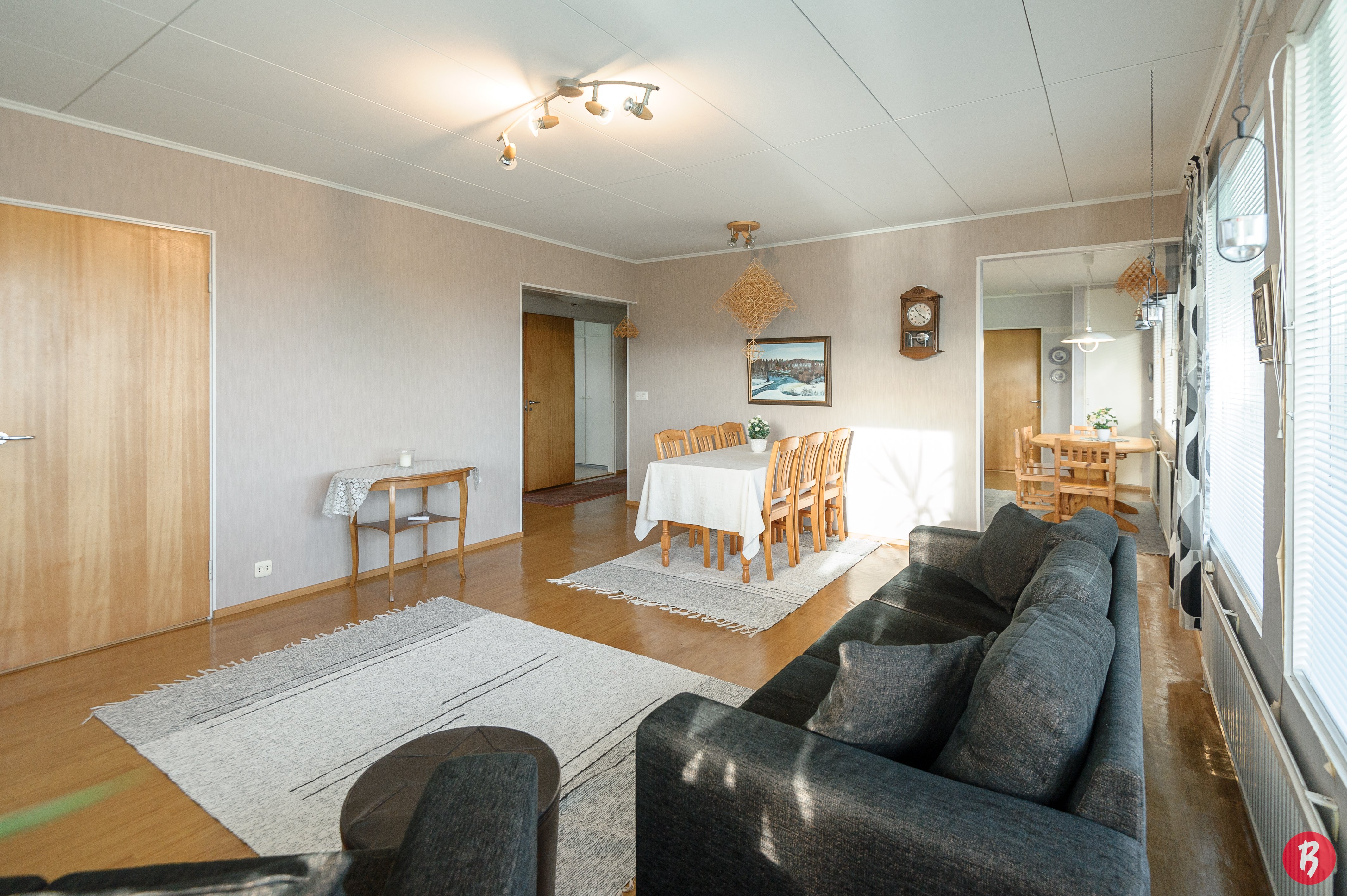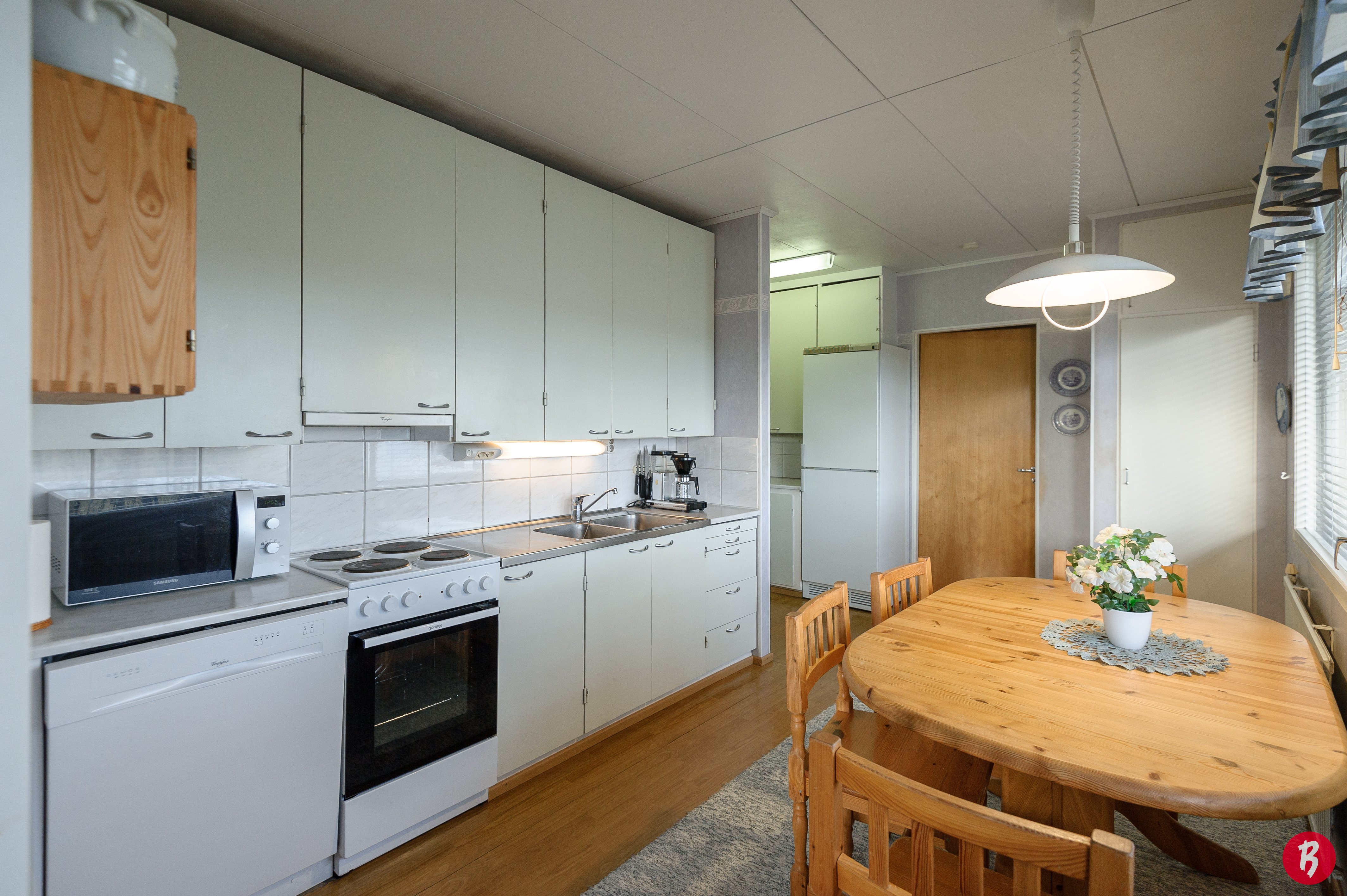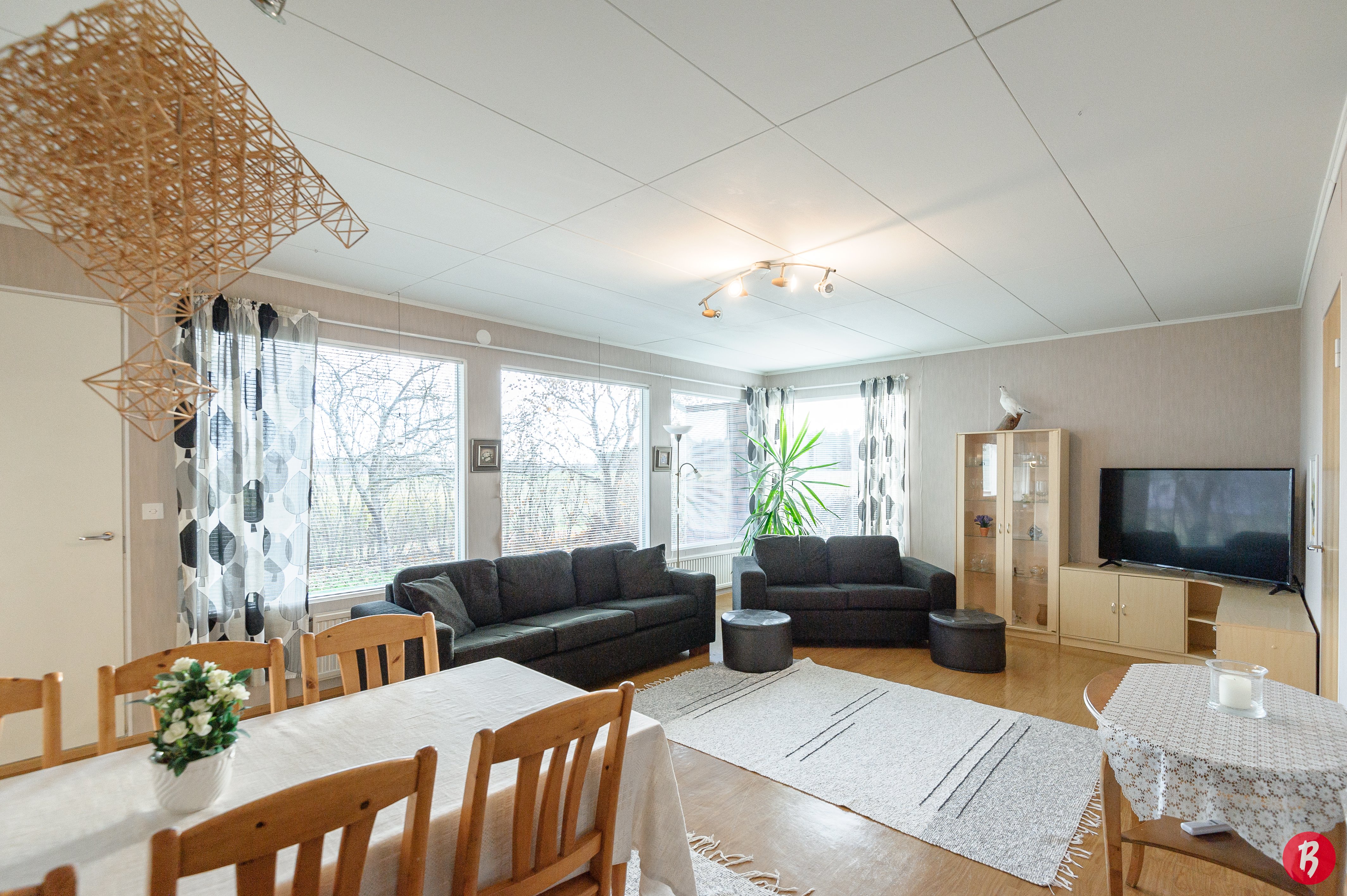 Talossa on tilaa reilusti isommallekin perheelle, makuuhuoneita on kolme kappaletta .