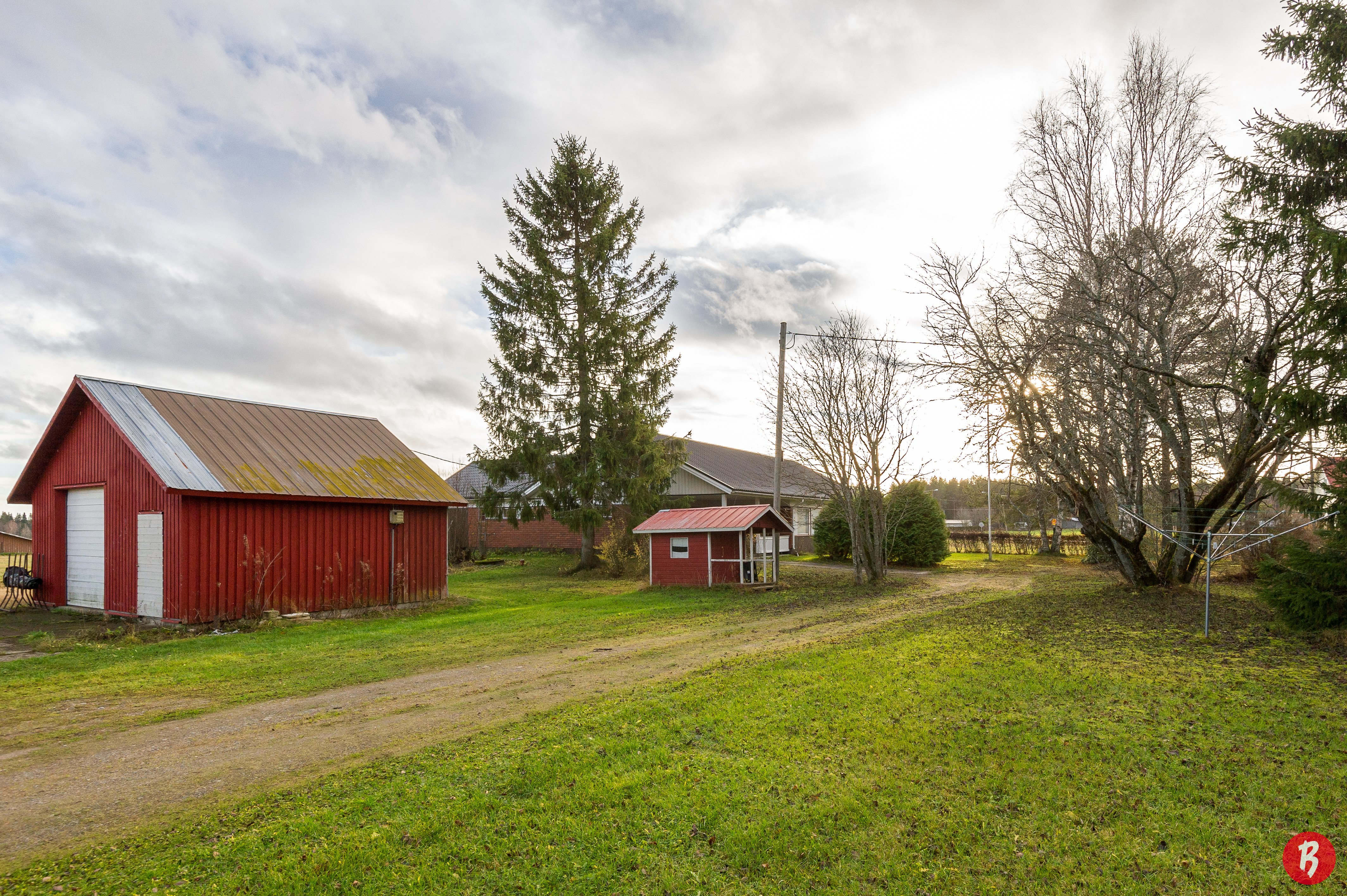 Pihapiirissä on lisäksi purkukuntoinen maalaistalo ja traktori -/ konehalli . Tästä hallista saisi pienin muutoksin tehtyä vaikka hevostallin , pieni pala peltomaata kuuluu myös määräalaan, sekä leikkimökki .