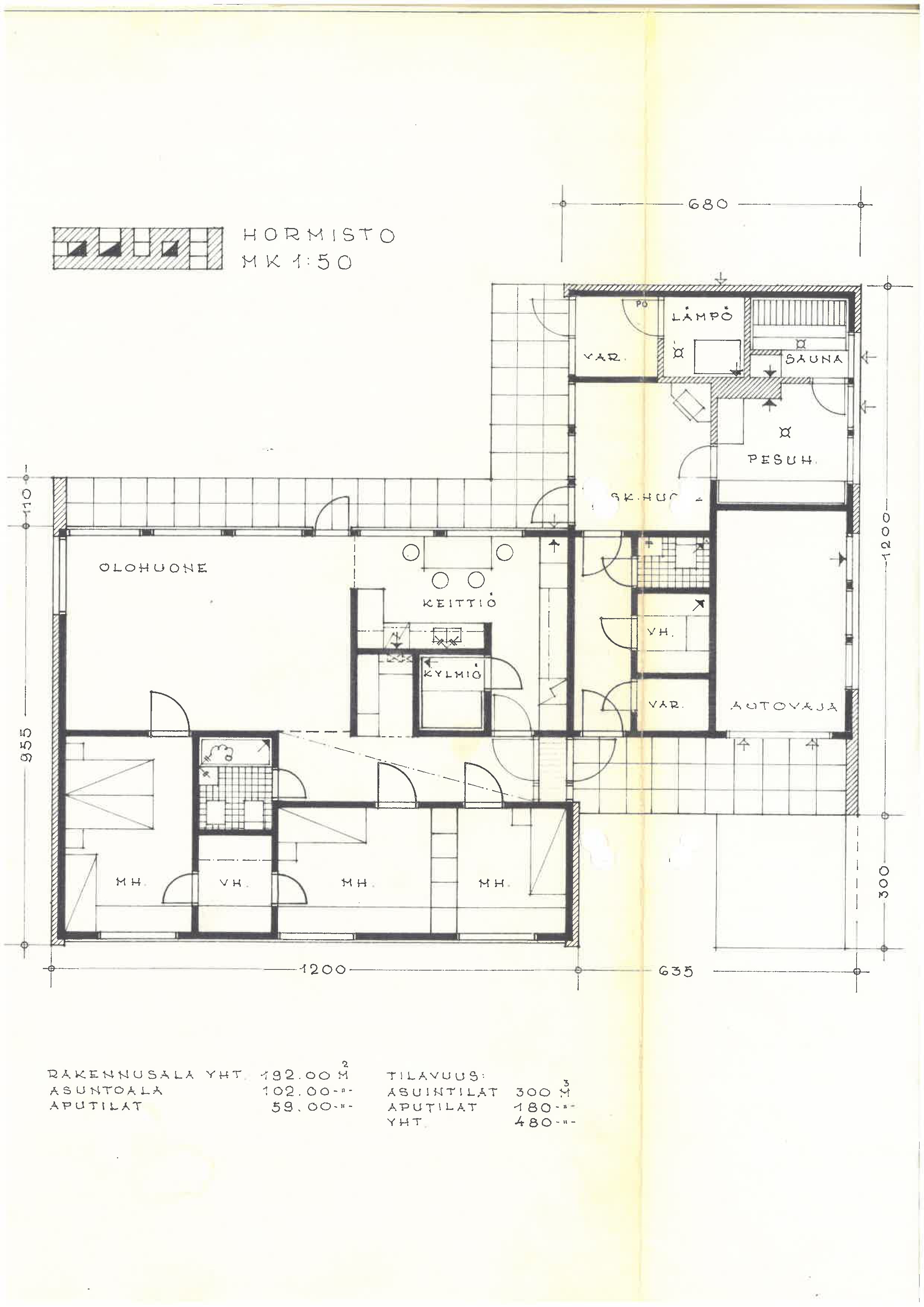 Nykyinen pohjapiirros on viitteellinen , eikä siten vastaa huonejärjestyksessä nykyistä muotoaan.