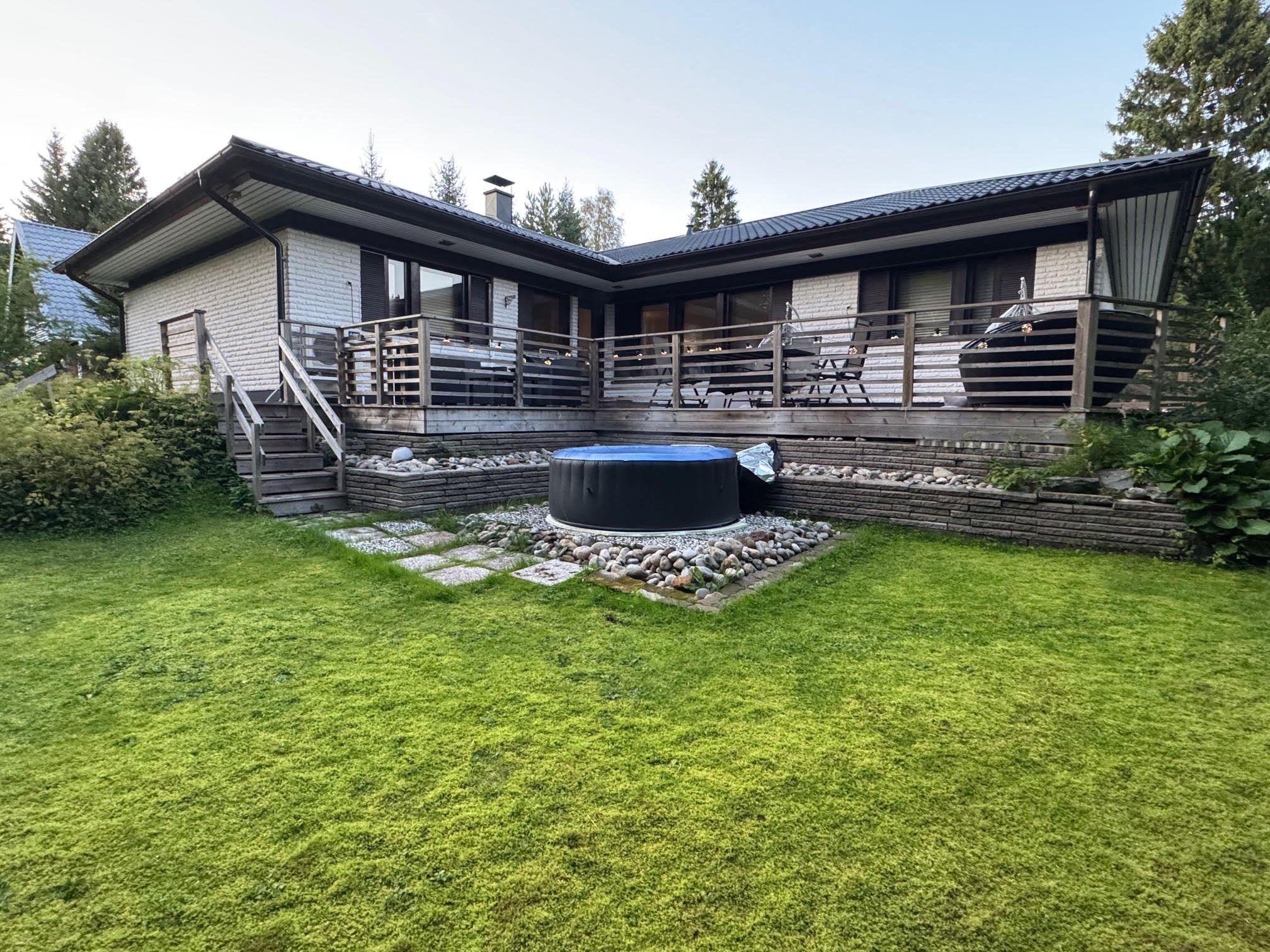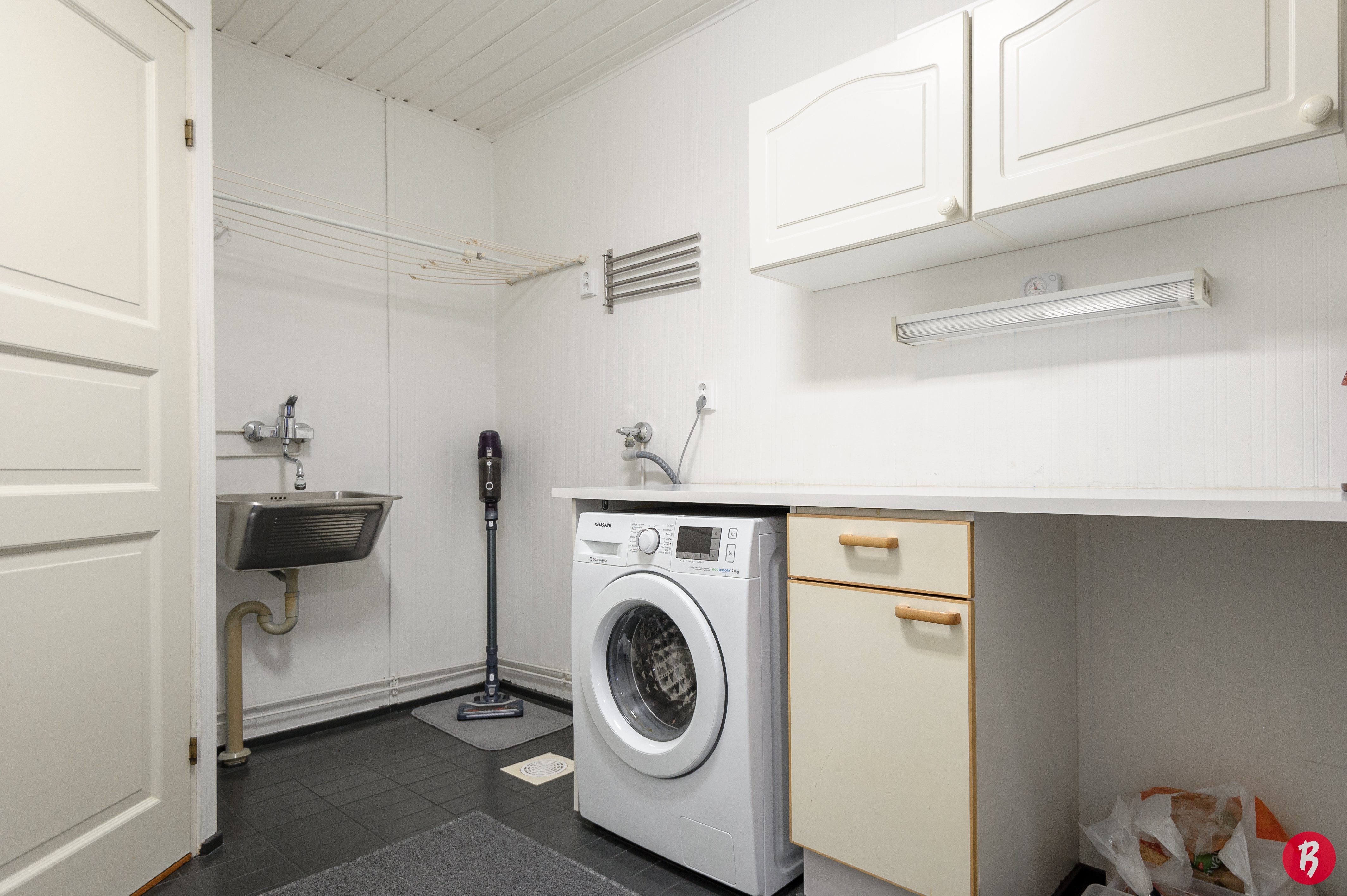 Talon yhteydessä on oma sauna, joka tarjoaa rentouttavia hetkiä kiireisen arjen keskellä. Kaksi wc:tä ja kodinhoitohuone helpottavat perheen arkea.