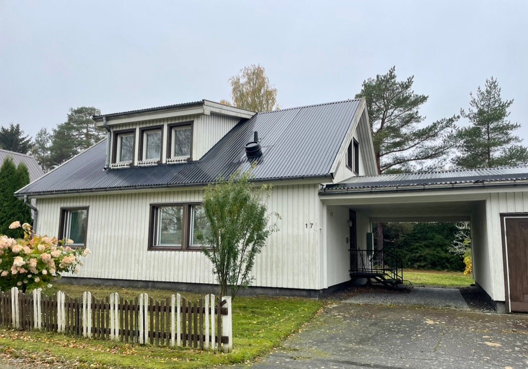 Huset har två våningar, fem rymliga rum, kök, vardagsrum, två sovrum, badrum med bastu, hemvårdsrum, två separata wc:n samt ett stort allrum på övre våningen.