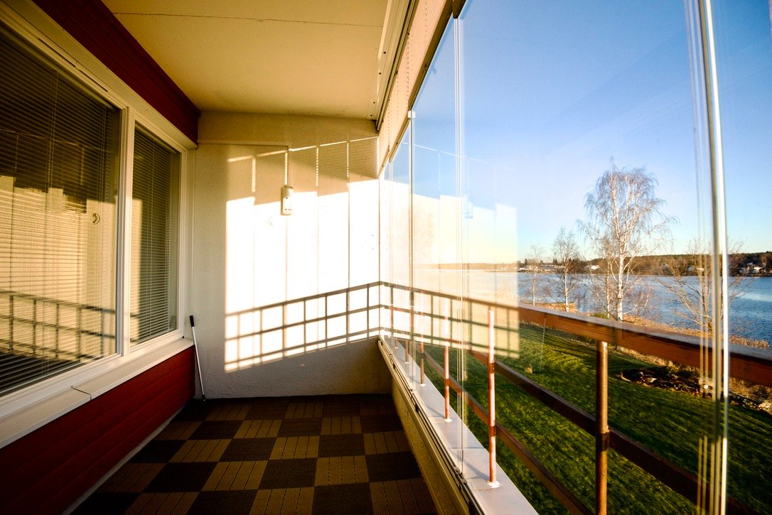 Lägenhetens balkong är inglasad och öppnar sig mot stadsfjärden, vilket är en trevlig plats att njuta av morgonkaffet och soluppgången. Hela lägenheten har renoverats 2018, badrummet har förnyats, nytt kök och alla lägenhetens ytor.