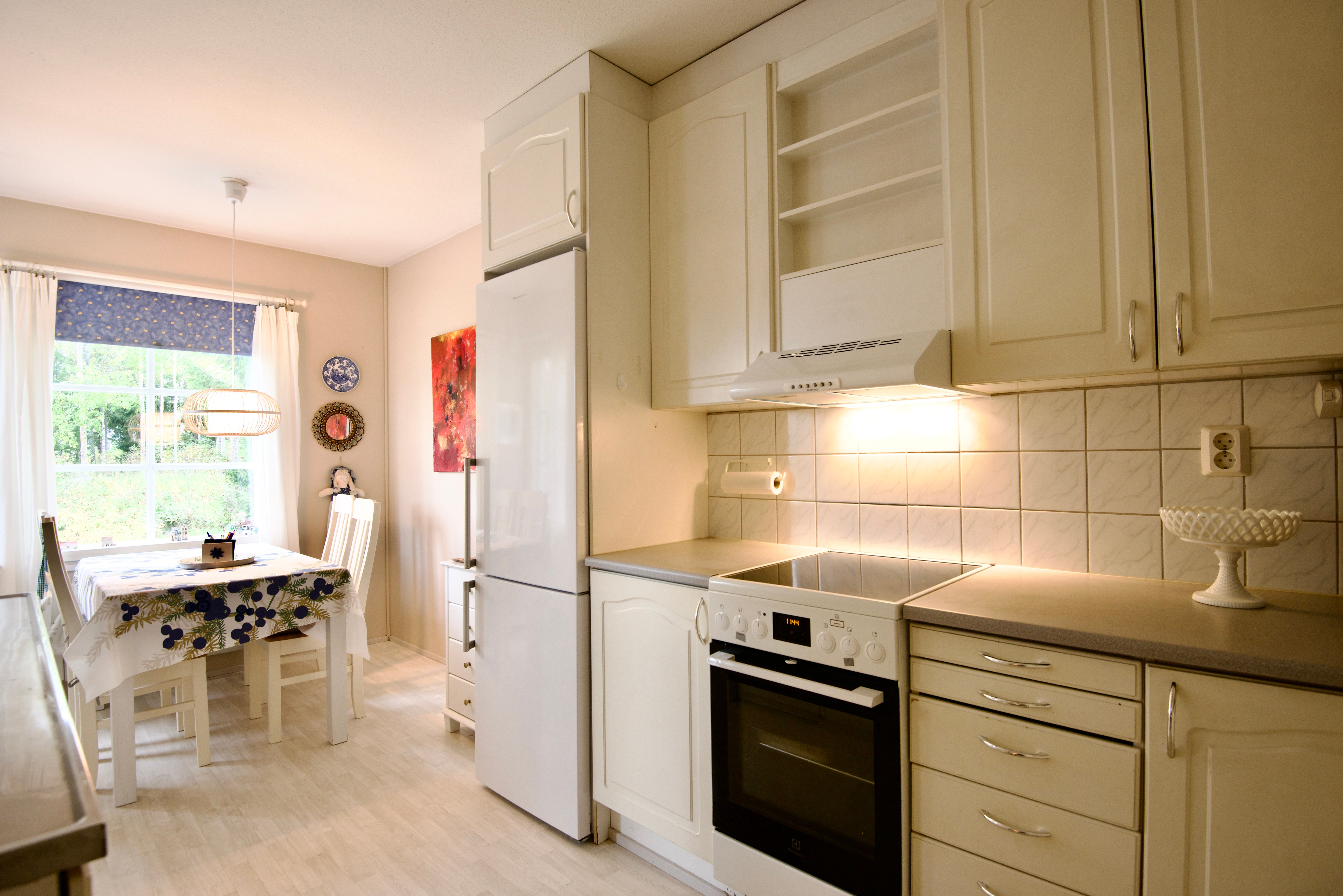 Liesituuletin (Uusittu 2025), liesi (Uusittu 2024), jääkaappipakastin (Uusittu 2023), astianpesukone (Uusittu 2022) ja uuni