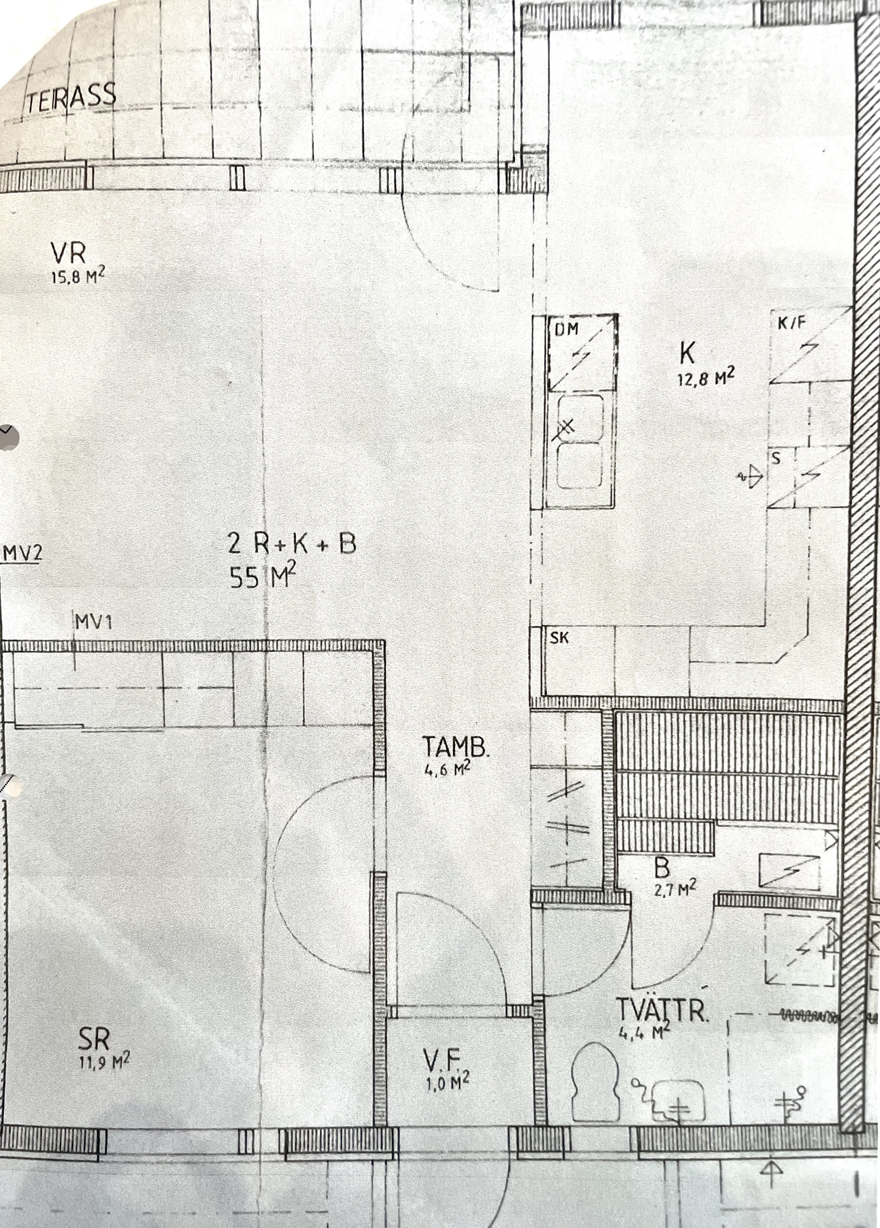 Lägenheten är bra planerad på 55m2. Köket är modernt och välutrustat med nya vitvaror, spis, kylskåp, diskmaskin och fläkt.