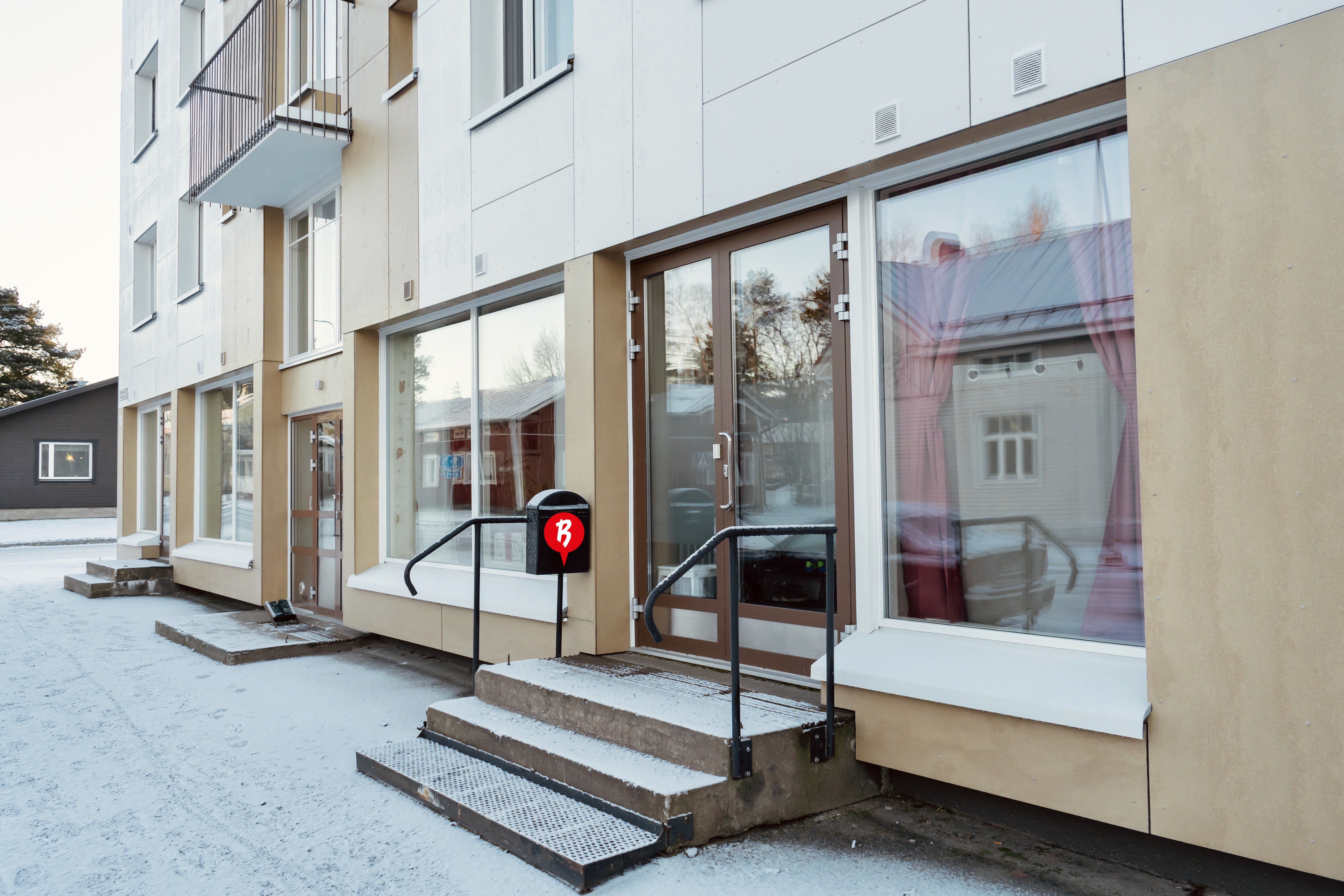 Lägenhet på första plan på centralt läge i Nykarleby. Fasad- och rörsanerat hus! Denna intressanta lägenhet med dess stora fönster är som en kombination av både affärslokal och bostad. Ett sovrum, rymligt badrum och utgång till innergården från köket. Vardagsrummet är stort, kan även användas som affärsutrymme mot gatan. Här kunde du både bo och utöva småskalig verksamhet i samma lokal! Har du idéer? En ändring av användningsändamål till affärsverksamhet kräver bolagets godkännande.