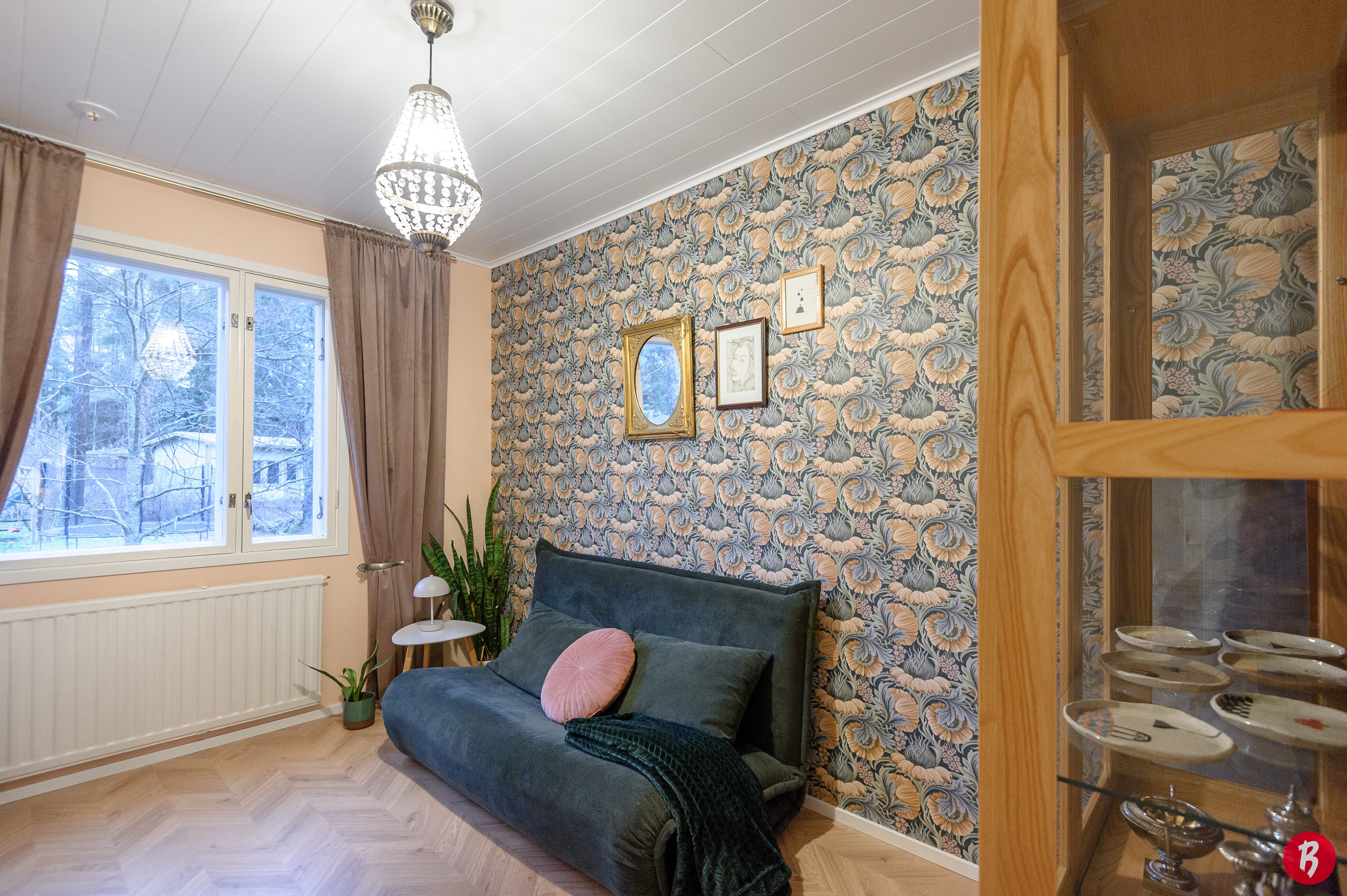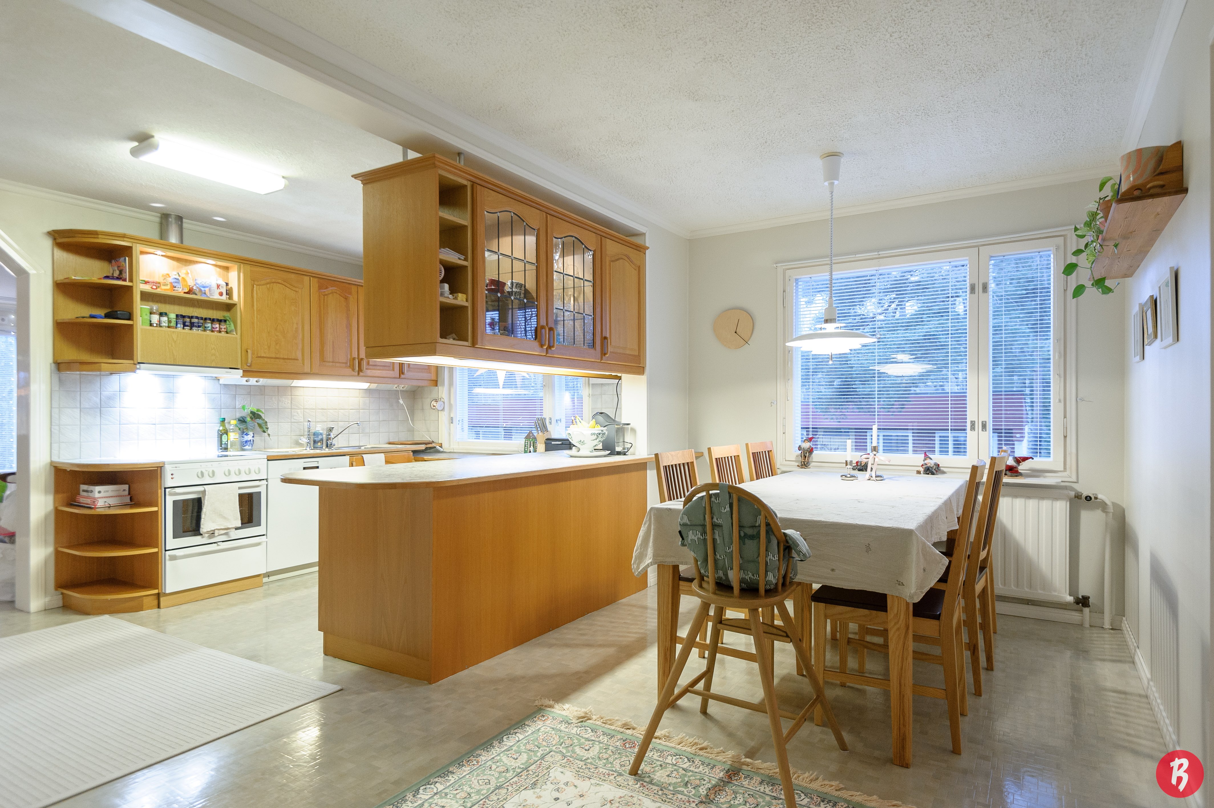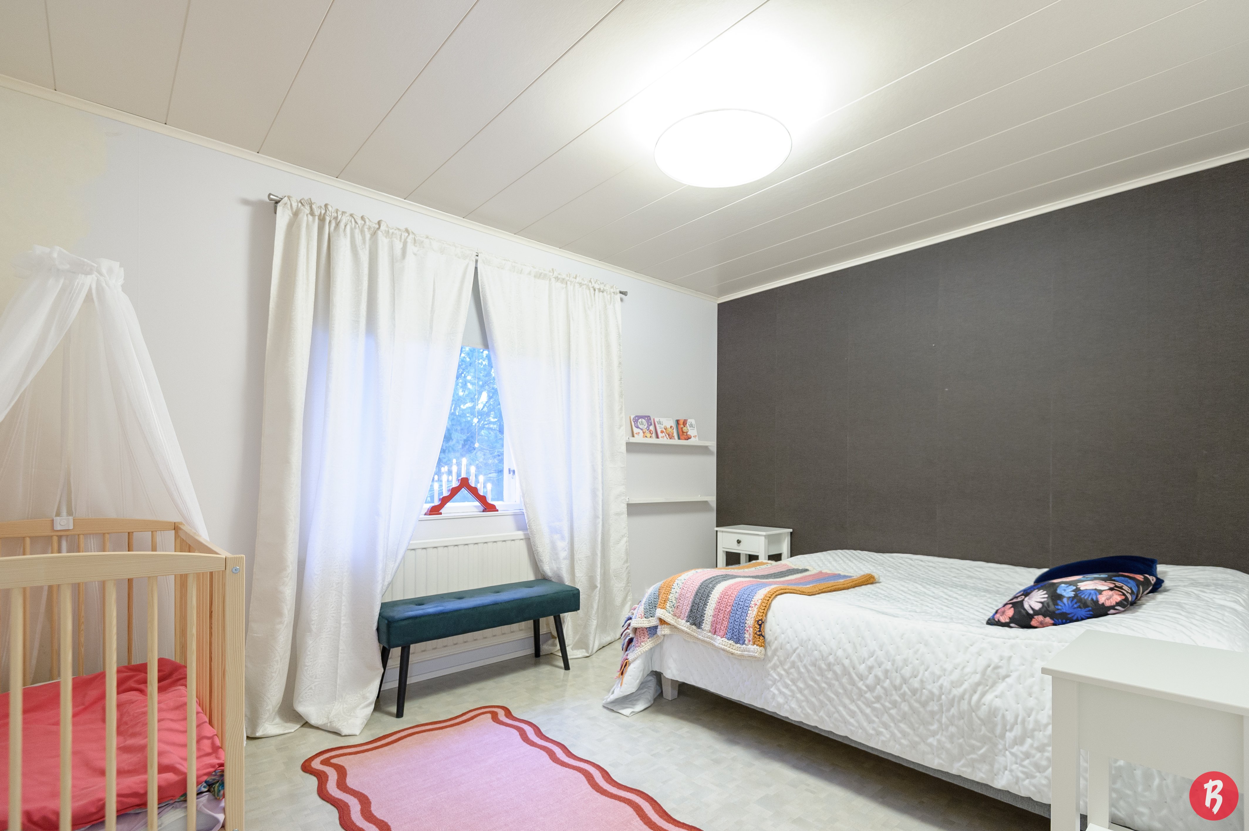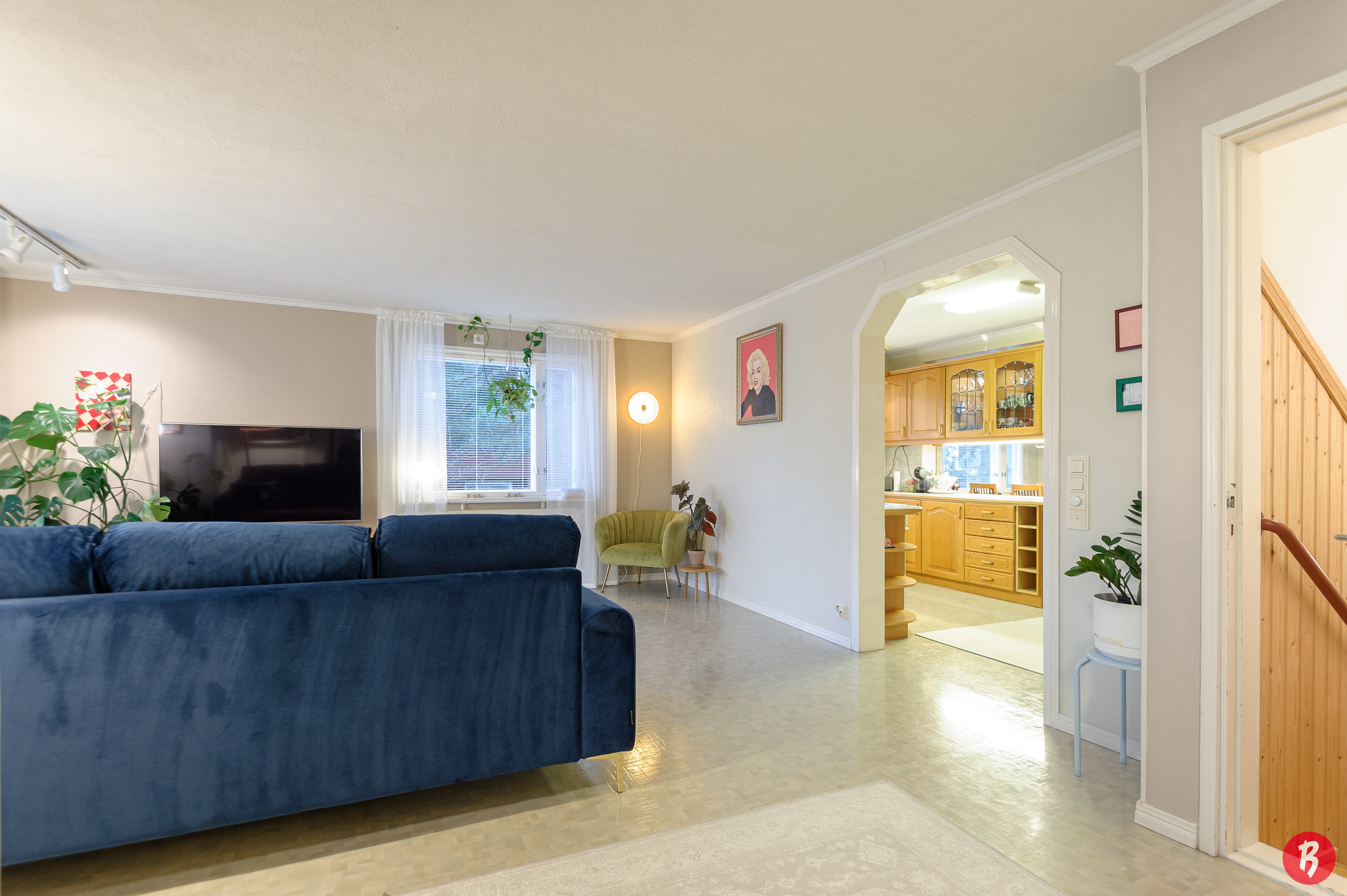 Huset är välplanerat och erbjuder mångsidiga möjligheter. Fyra sovrum, ett rymligt vardagsrum och en matplats gör vardagen både smidig och trivsam. Köket är utrustat med moderna hushållsmaskiner, och bastun erbjuder avkopplande stunder efter en hektisk dag. I källarvåningen finns både spisrum samt gillestuga. Dessutom finns garage och gott om förvaringsutrymmen.