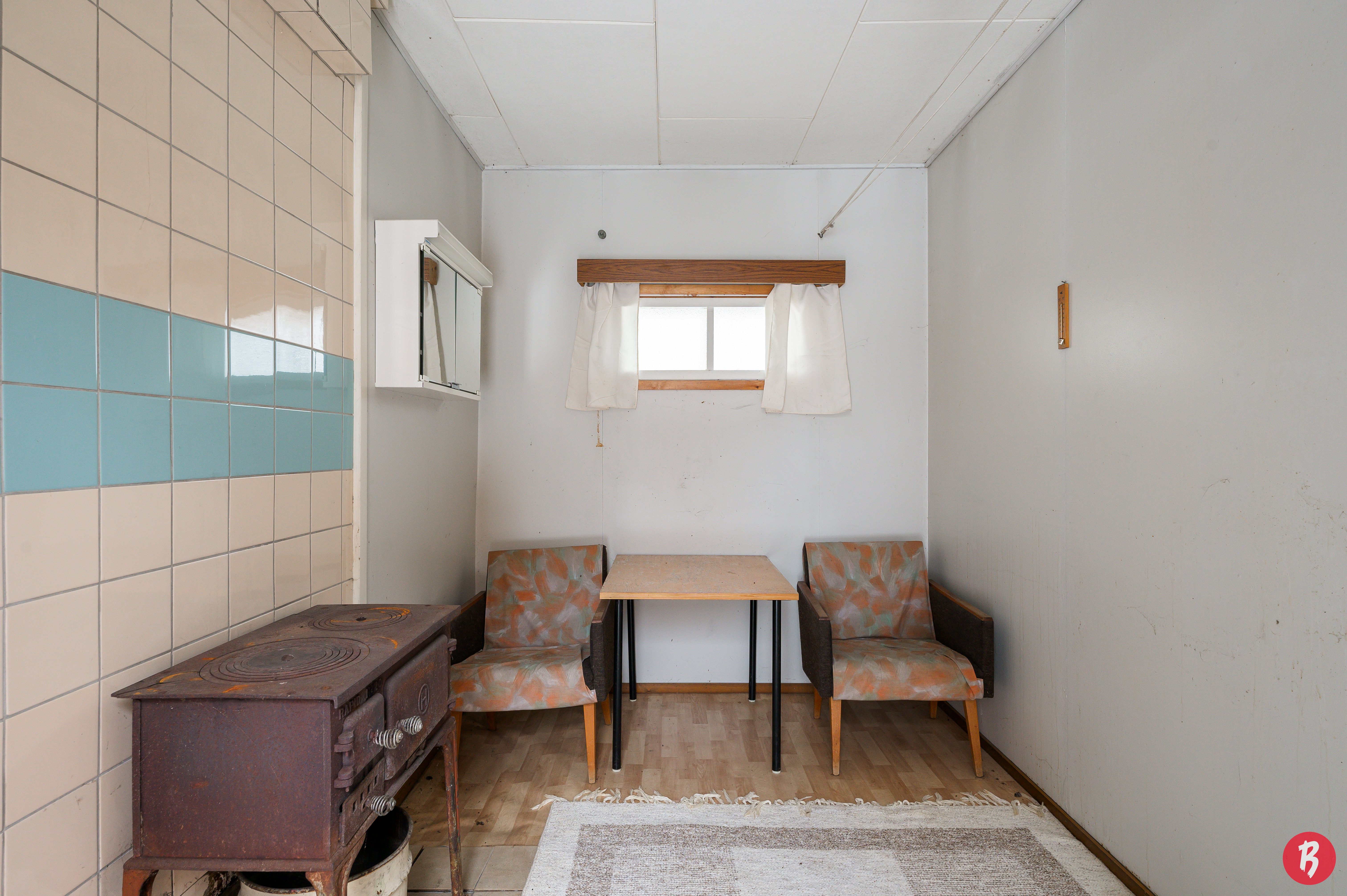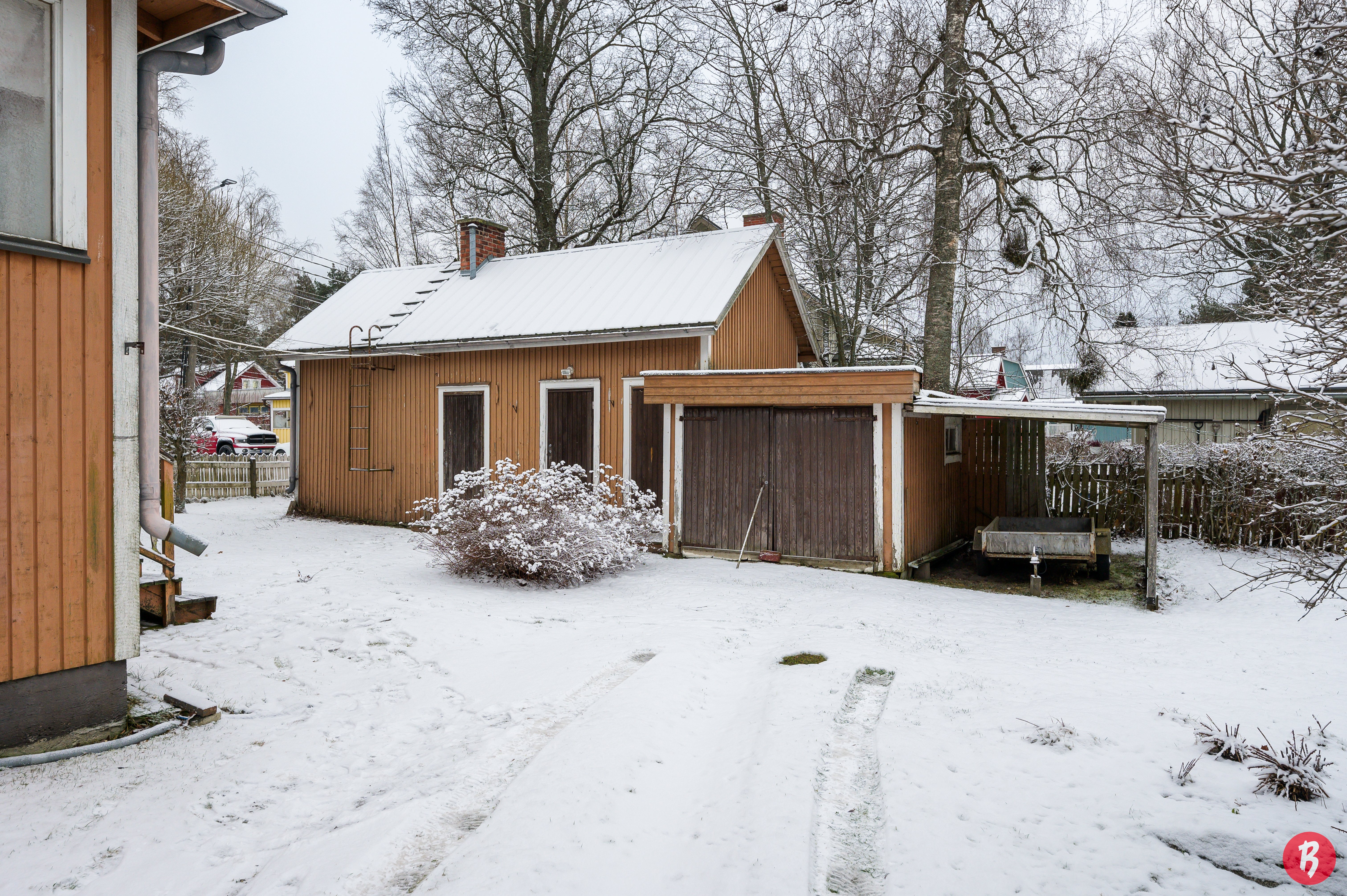 Charmigt trähus väntar på nya invånare i det populära bostadsområdet Västanpå i Jakobstad. Detta timmerhus från 1926 erbjuder 100 kvadratmeter bostadsyta med ett rymligt vardagsrum och kök. Köket är i brukbart skick men behöver renoveras, vilket ger möjlighet att skapa just ditt drömkök.