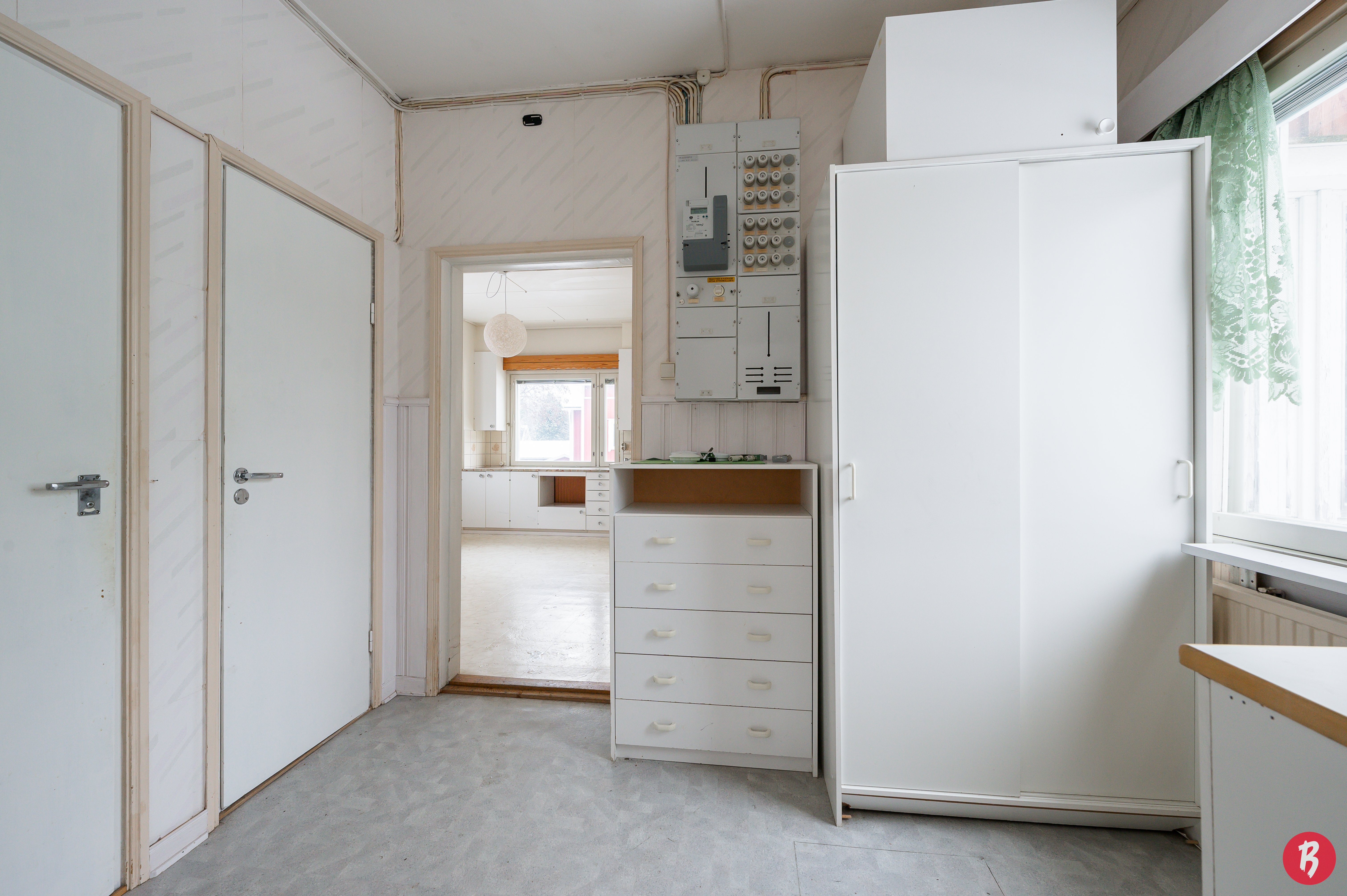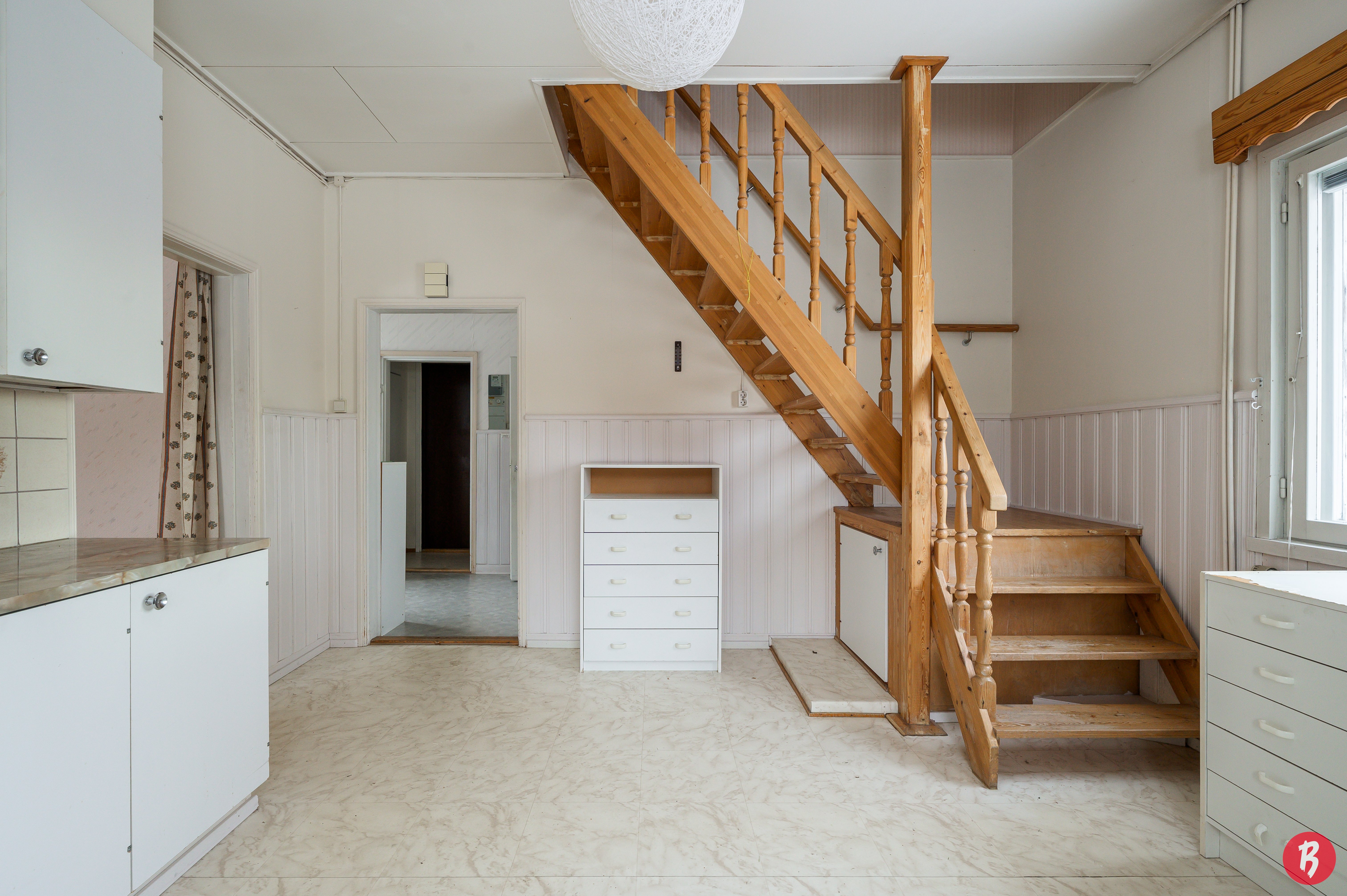 Kodikas puutalo odottaa uusia asukkaitaan Pietarsaaren Läntelän rauhallisella asuinalueella. Tämä 1926 rakennettu hirsitalo tarjoaa 100 neliömetrin asuintilat, joissa on tilava olohuone ja keittiö. Keittiö on käyttökunnossa, mutta kaipaa päivitystä, mikä antaa mahdollisuuden luoda juuri omanlaisen keittiöunelman.