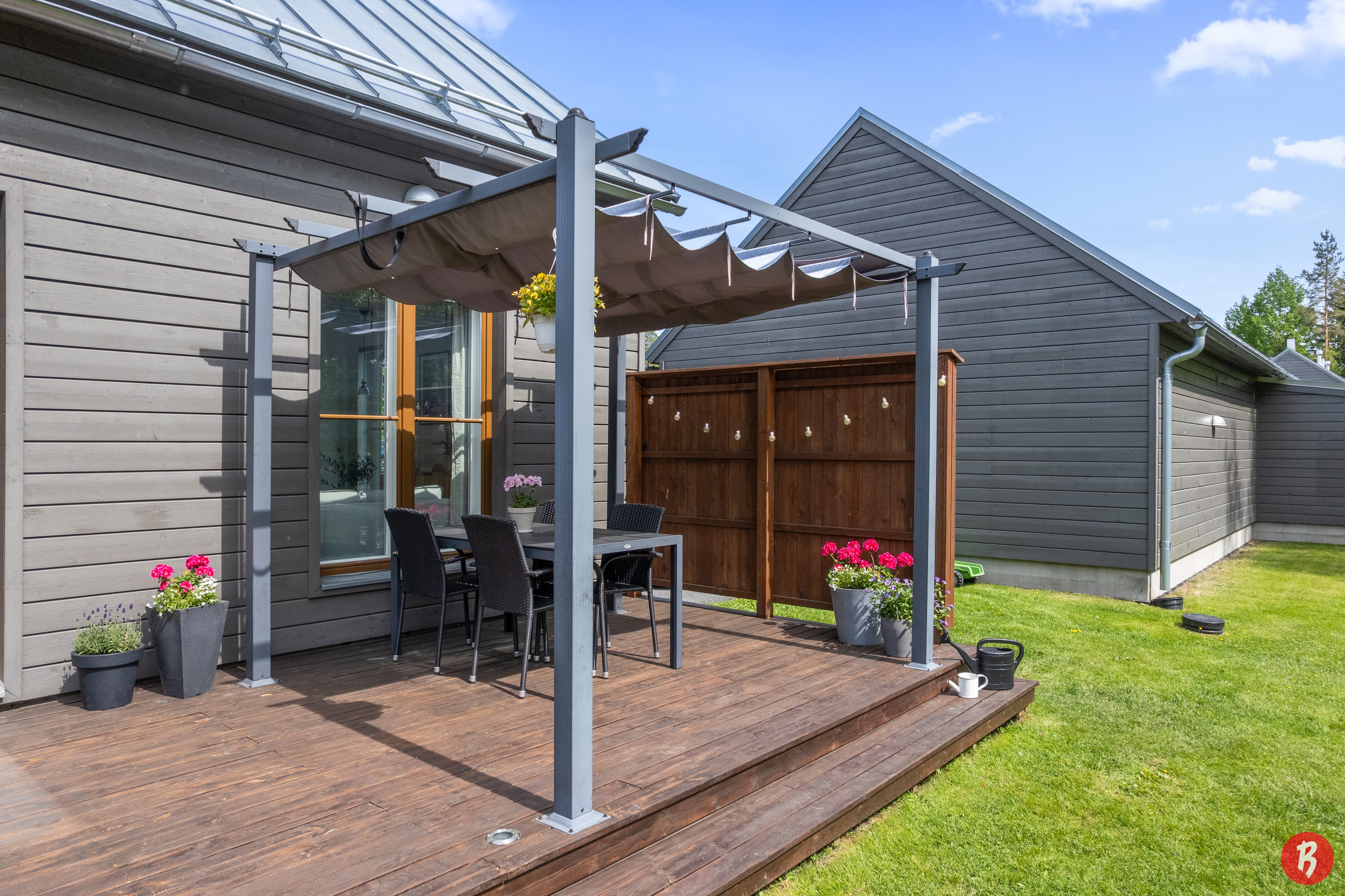 Till fastigheten hör också ett varmt garage med automat dörr, vilket ger bekvämlighet och extra förvaringsutrymme.