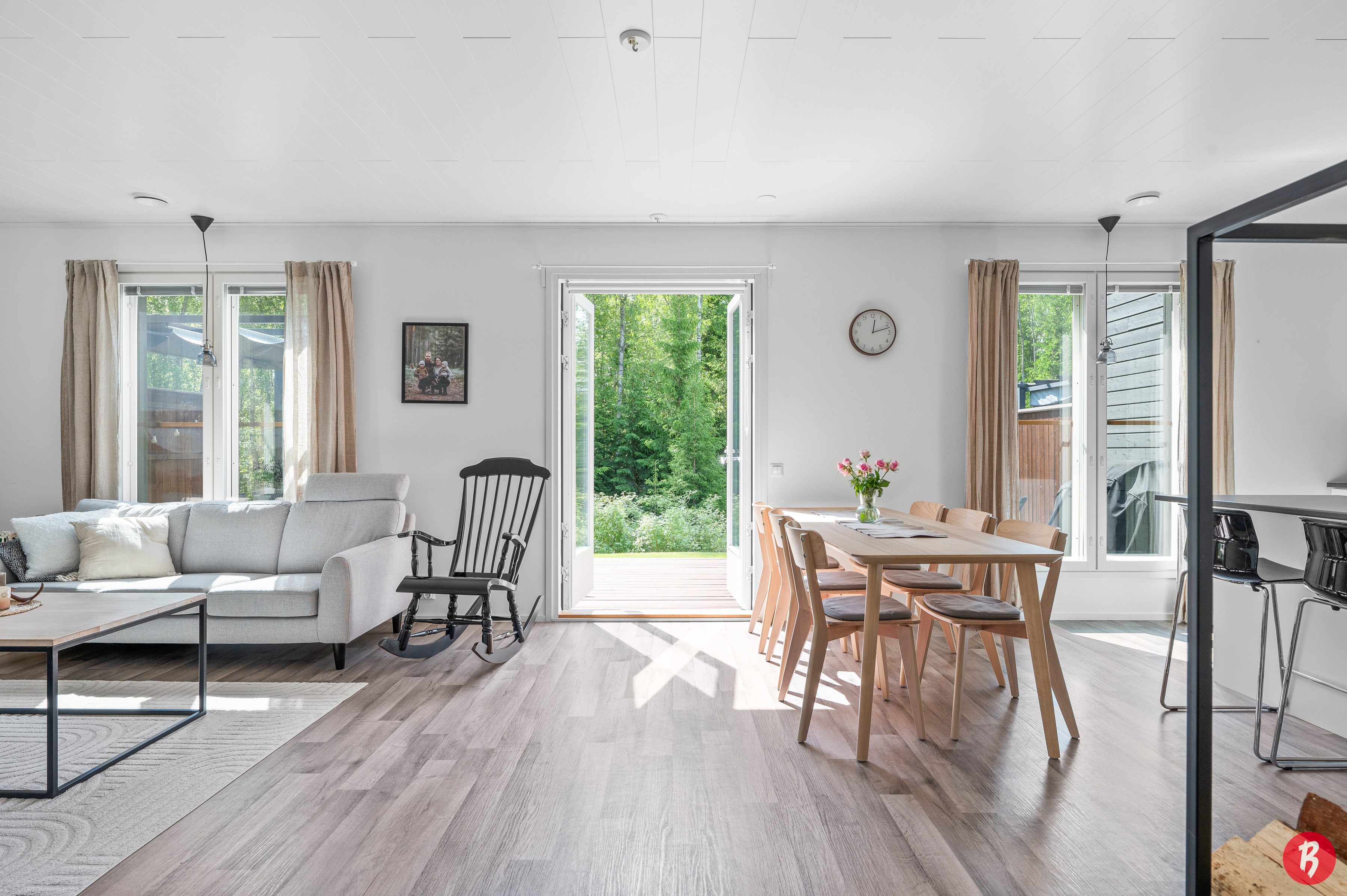 Välkommen till denna ljusa och moderna radhuslägenhet i det lugna bostadsområdet i Esse. Denna bostad, byggd 2014, erbjuder en perfekt kombination av komfort och stil. Med sina 67 kvadratmeter, fördelade på 2 rum och kök, är detta hem idealiskt för alla som söker ett bekvämt boende med hög standard.