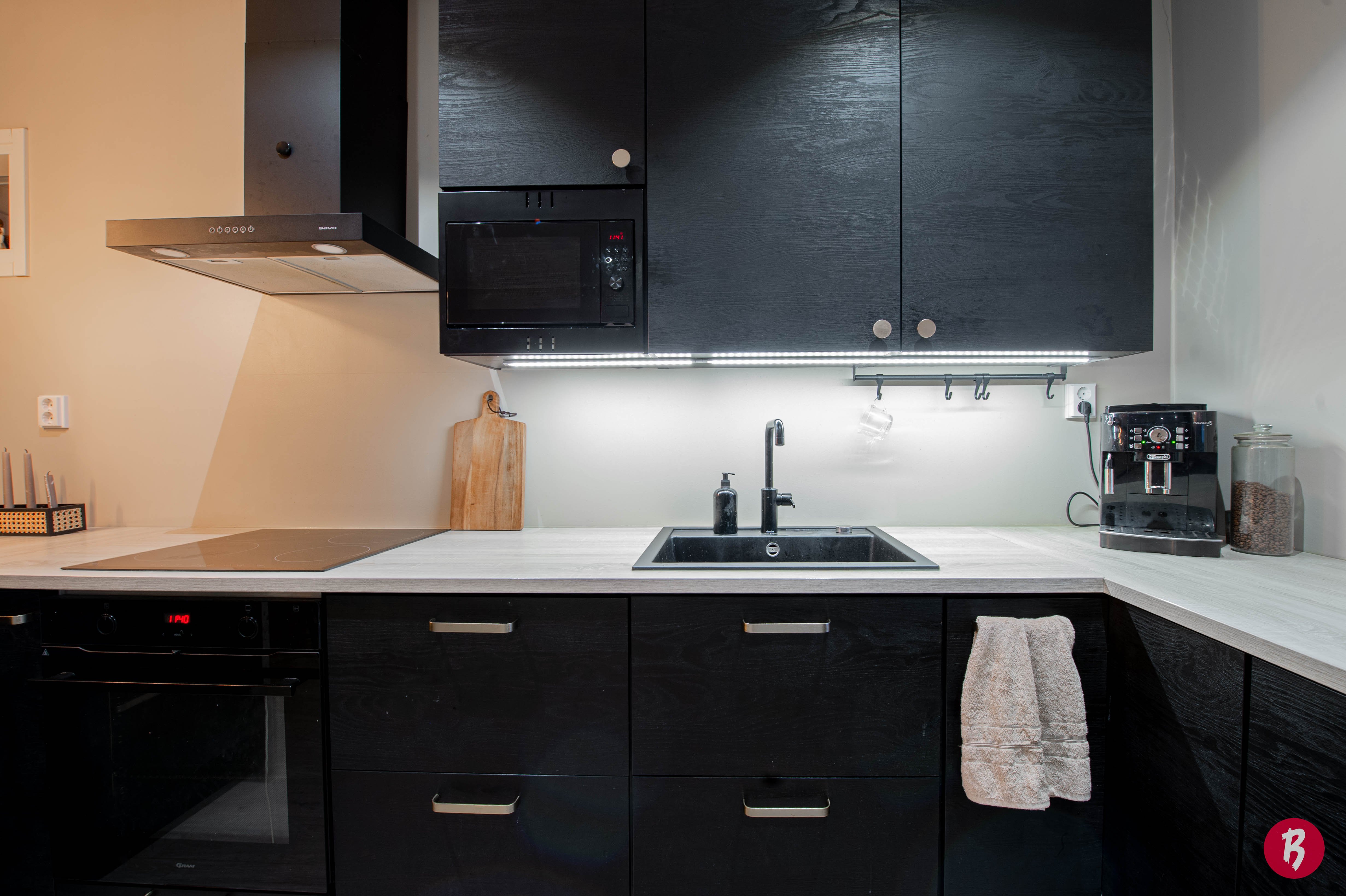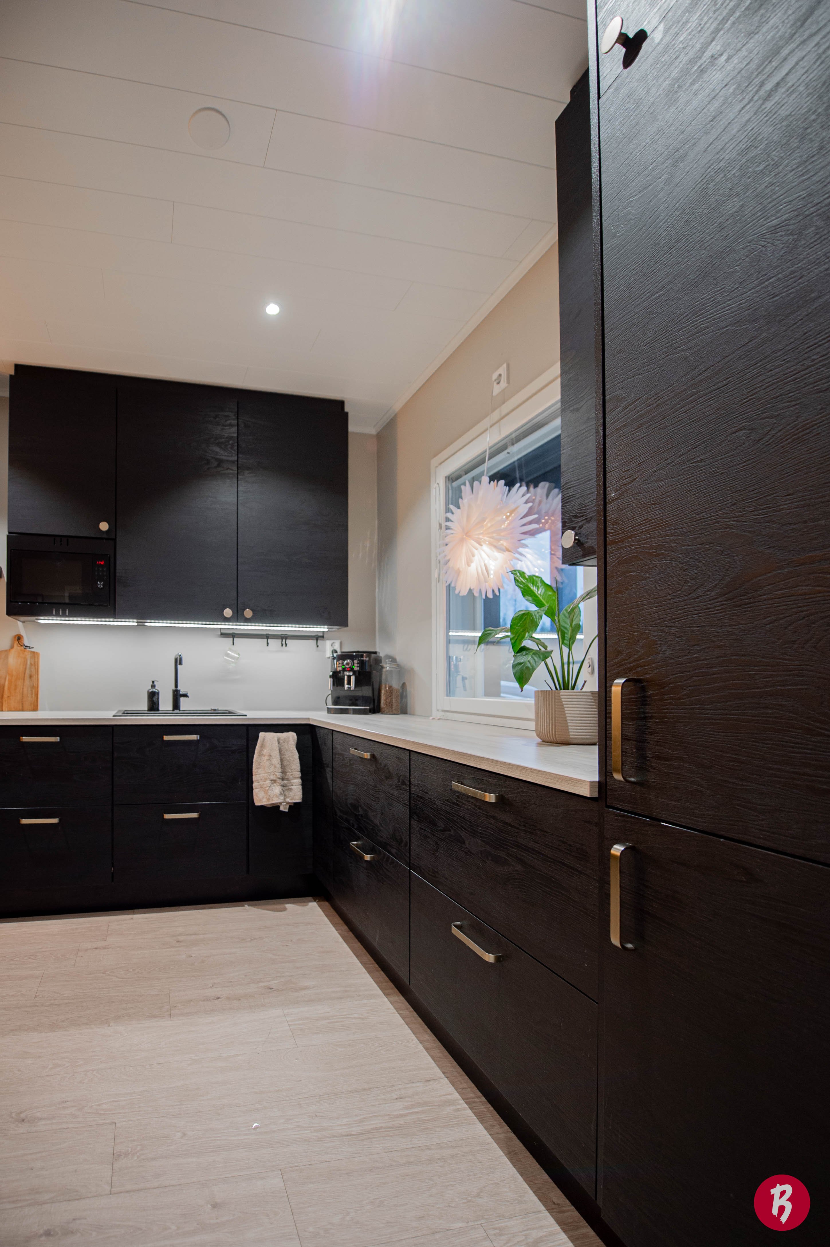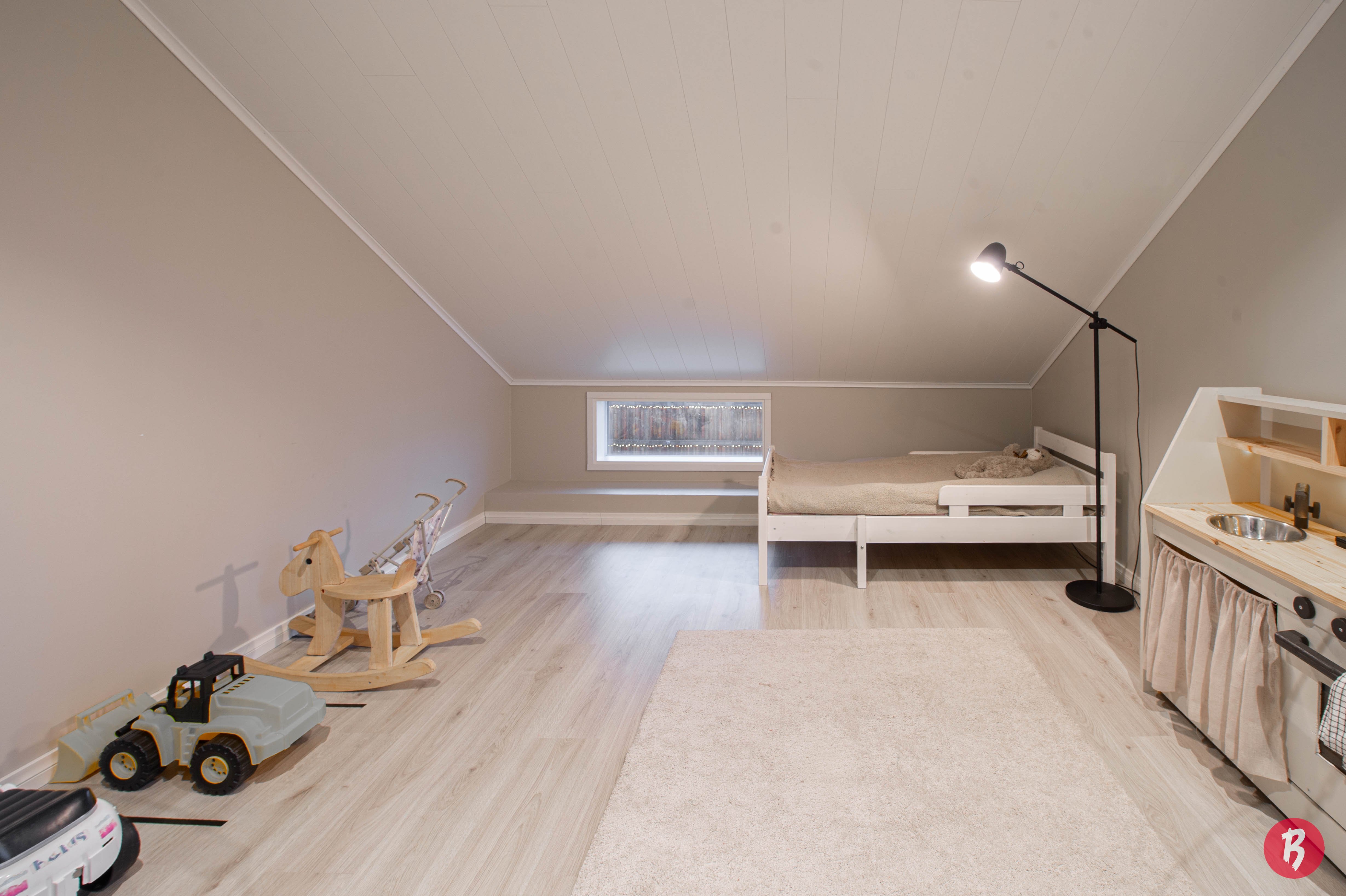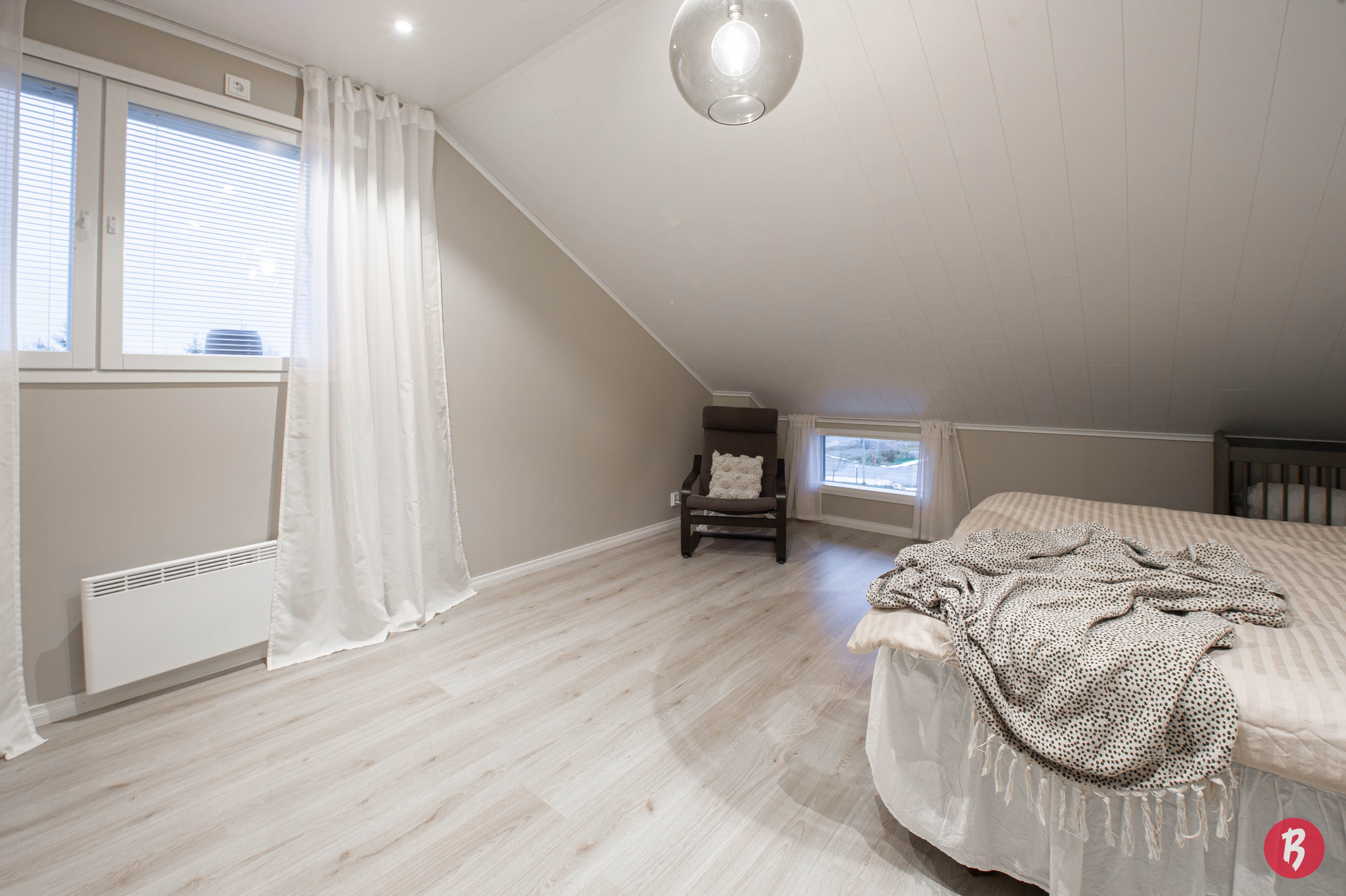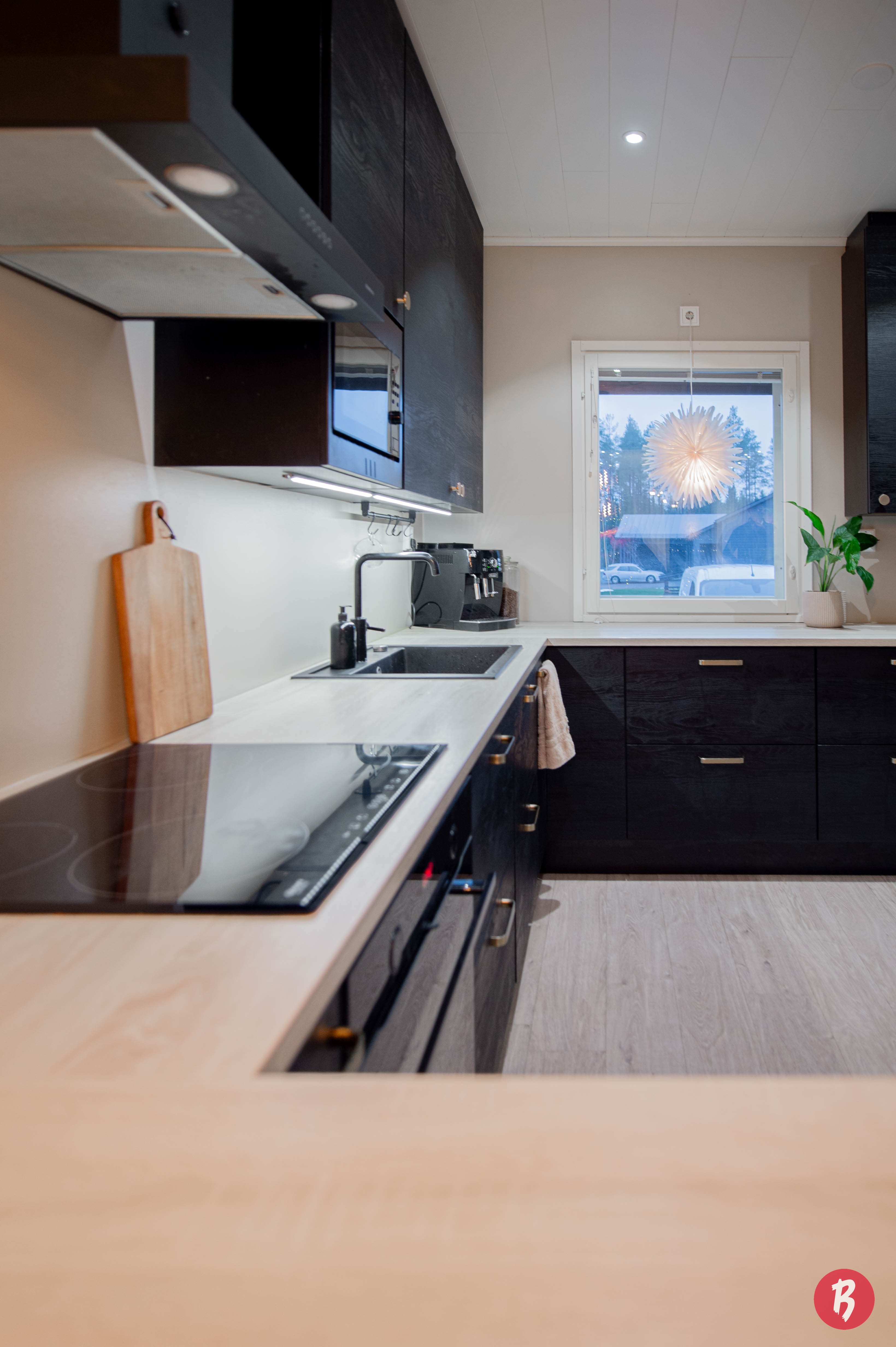Alakerrassa avautuu valoisa olohuone, joka yhdistyy saumattomasti moderniin keittiöön. Keittiö on varustettu laadukkailla kodinkoneilla, kuten induktioliedellä ja astianpesukoneella, mikä tekee arjesta sujuvaa. Neljä makuuhuonetta tarjoavat runsaasti tilaa perheenjäsenille tai vaikkapa kotitoimistolle.