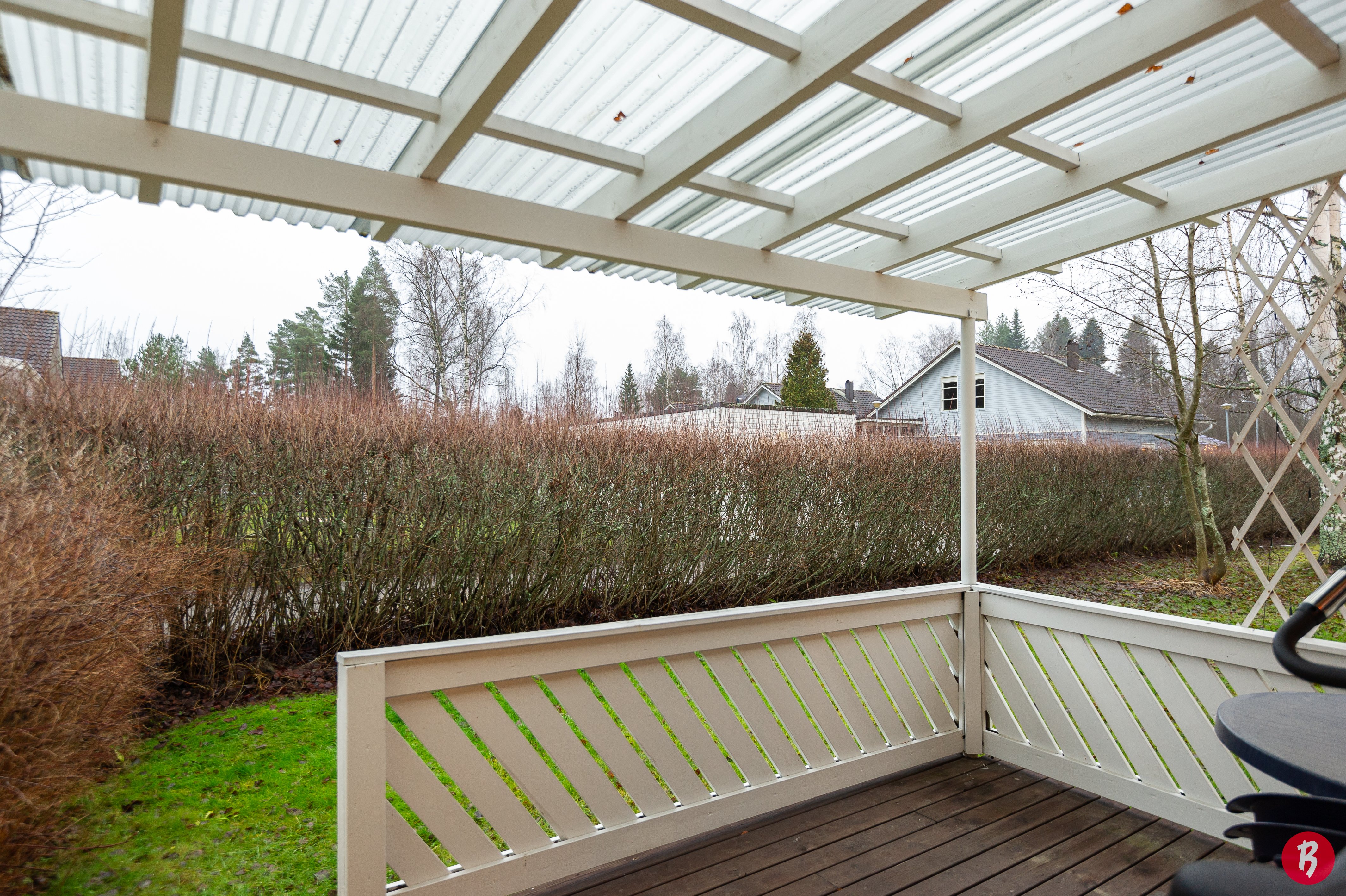 Terrassen, som renoverades 2022, erbjuder en trivsam plats att njuta av utomhuslivet. Eget biltak och förråd ökar bekvämligheten ytterligare. Husbolaget har genomfört flera underhållsåtgärder, såsom fasadmålning och installation av luftvärmepumpar, vilket garanterar ett bekymmersfritt boende.