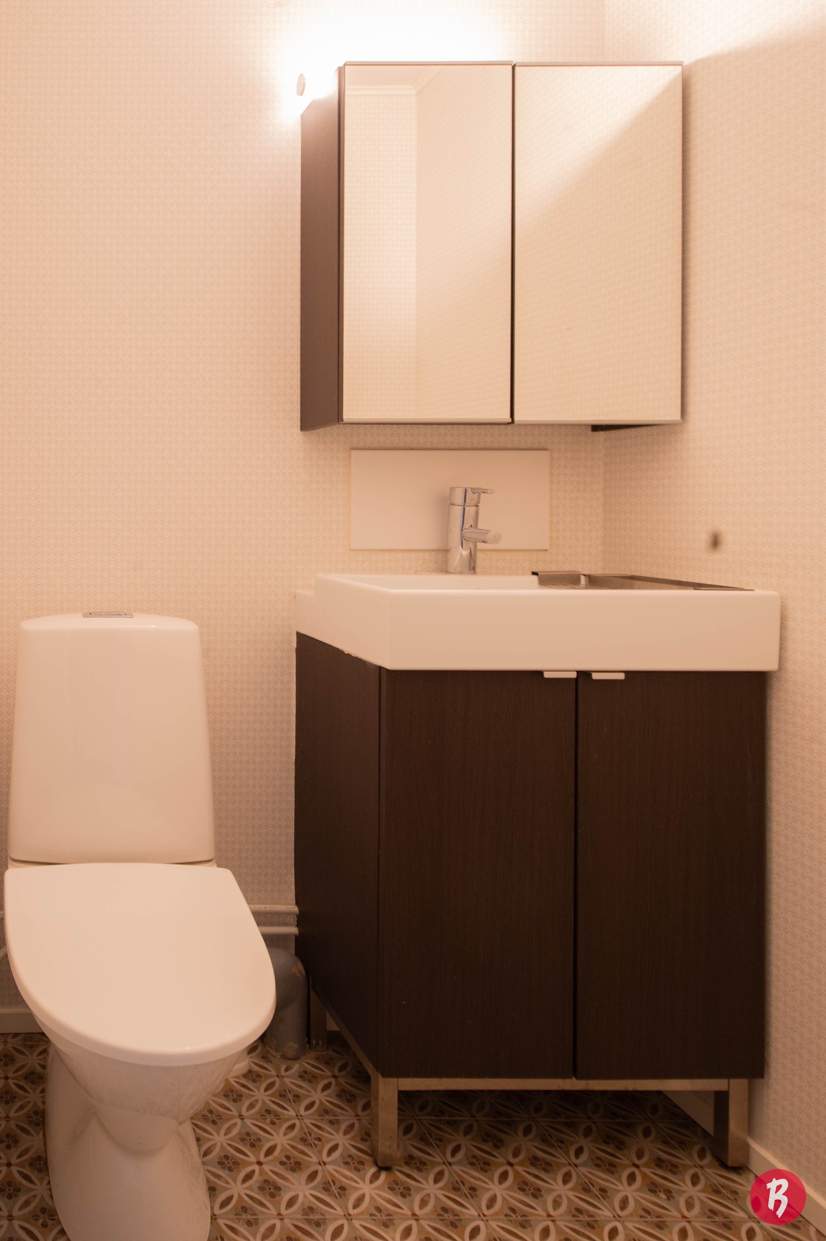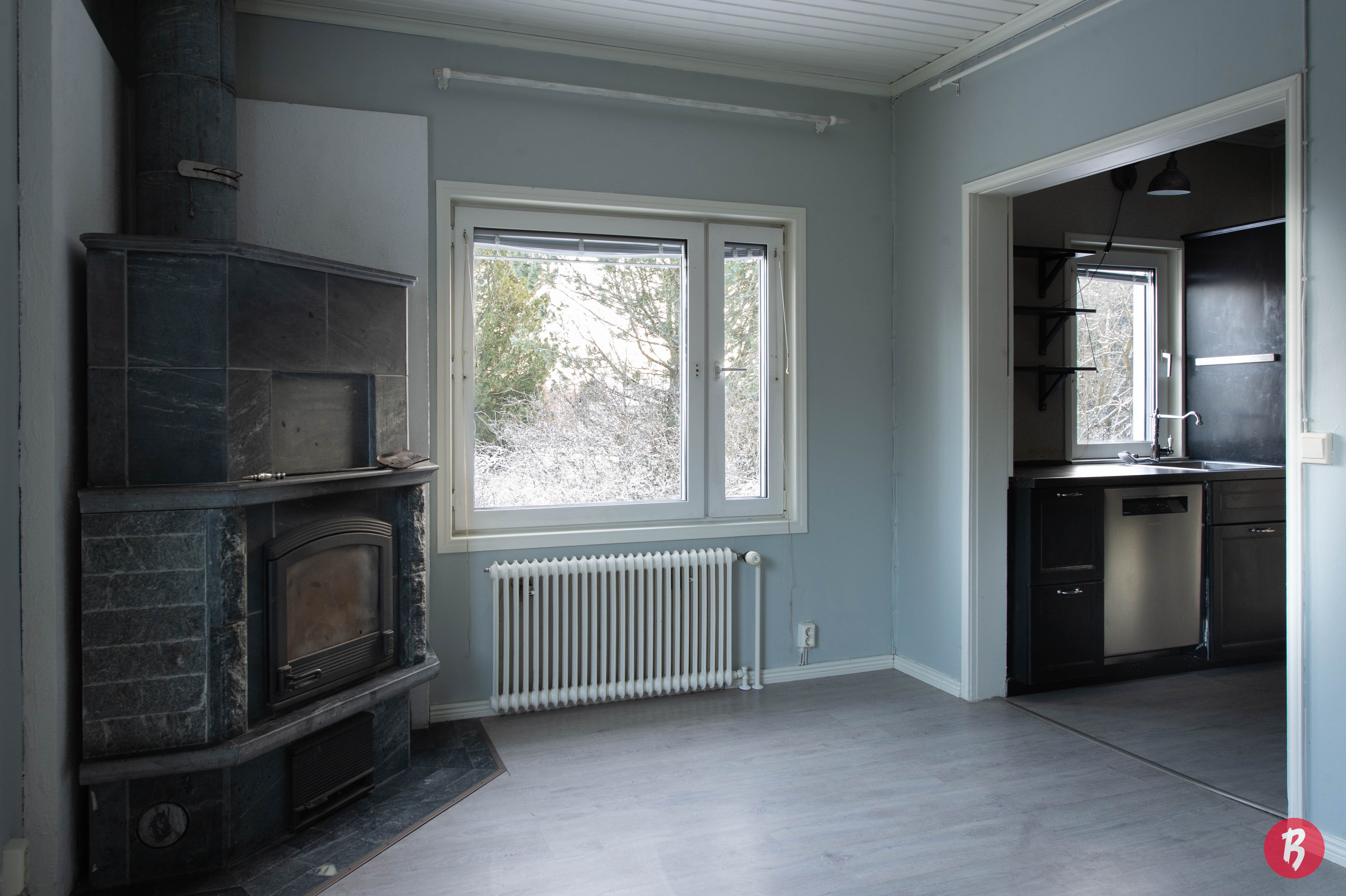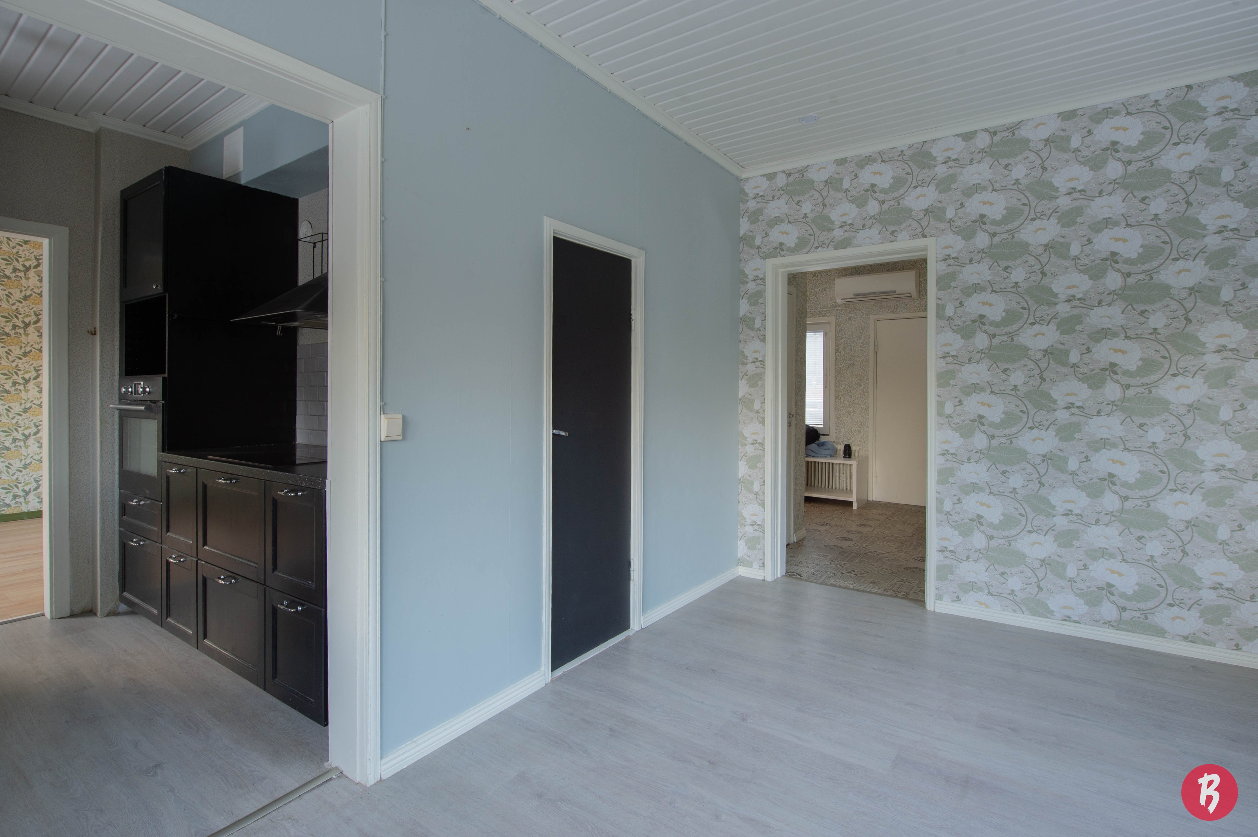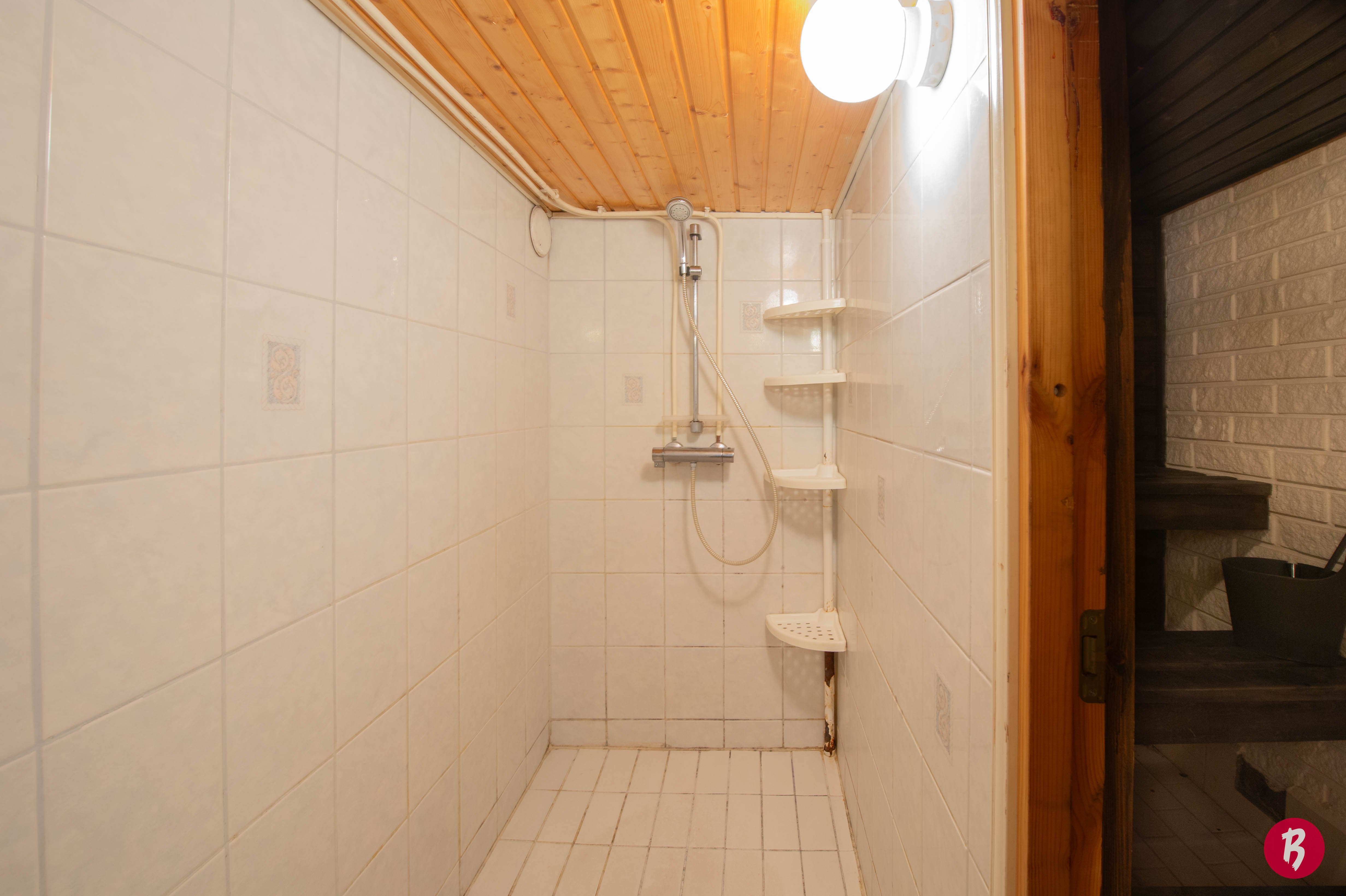 Hjärtat i hemmet är det rymliga vardagsrummet med vackert parkettgolv och tapetserade väggar. Köket är utrustat med moderna hushållsapparater, som kyl-frys och keramikspis. Badrummet har kaklade golv och väggar och erbjuder även anslutning för tvättmaskin. Huset har två separata toaletter med bekväm golvvärme.