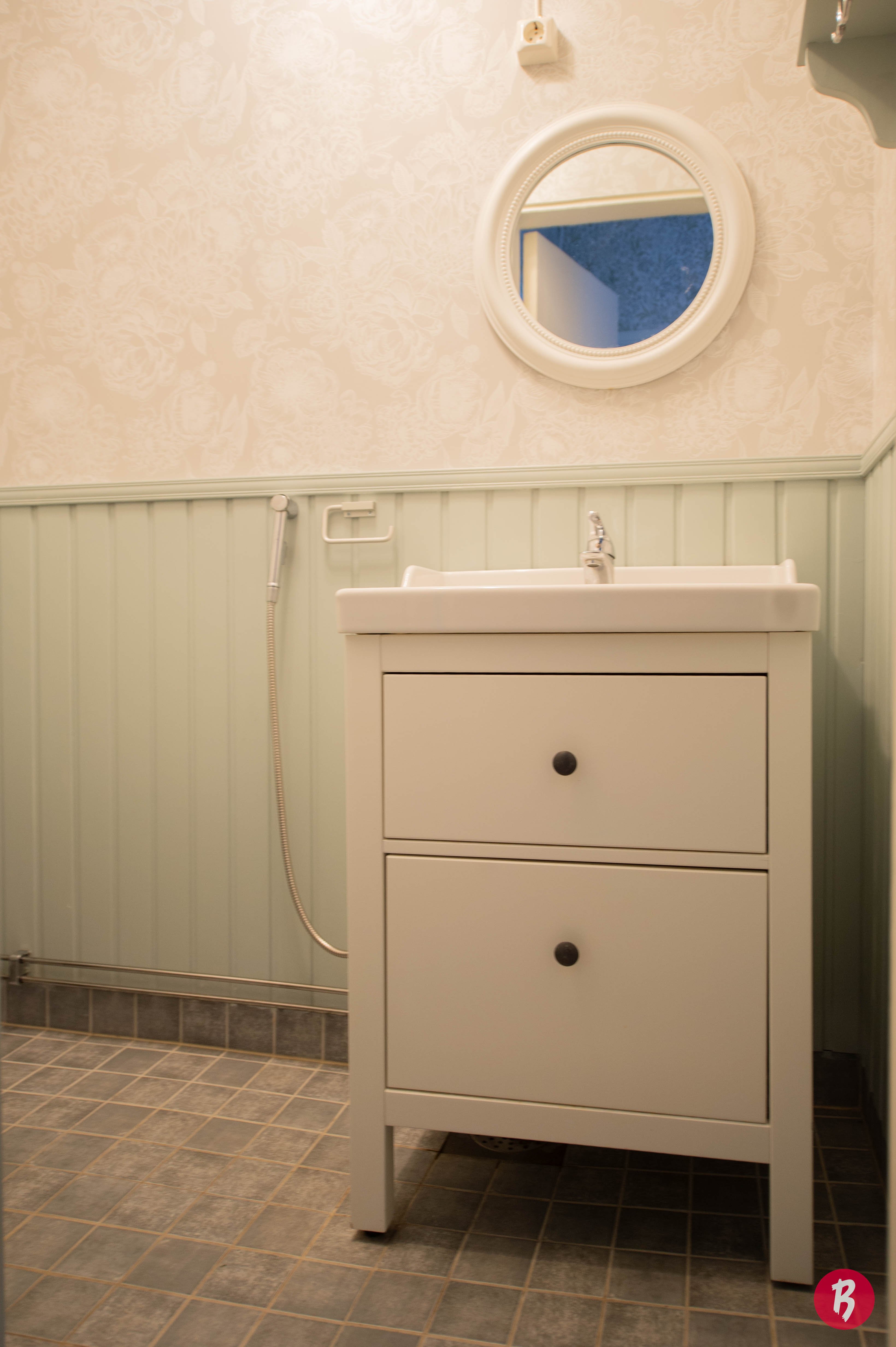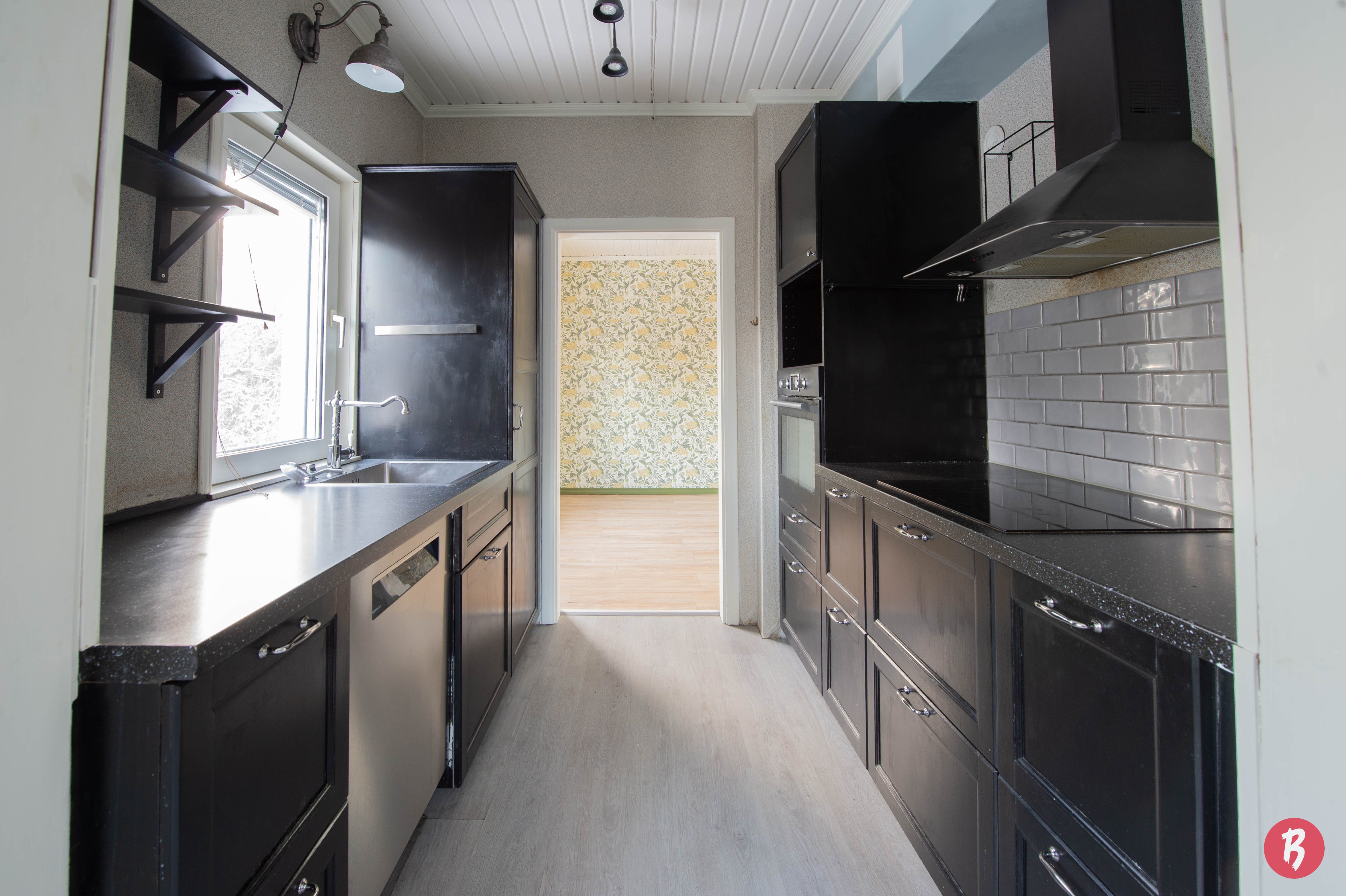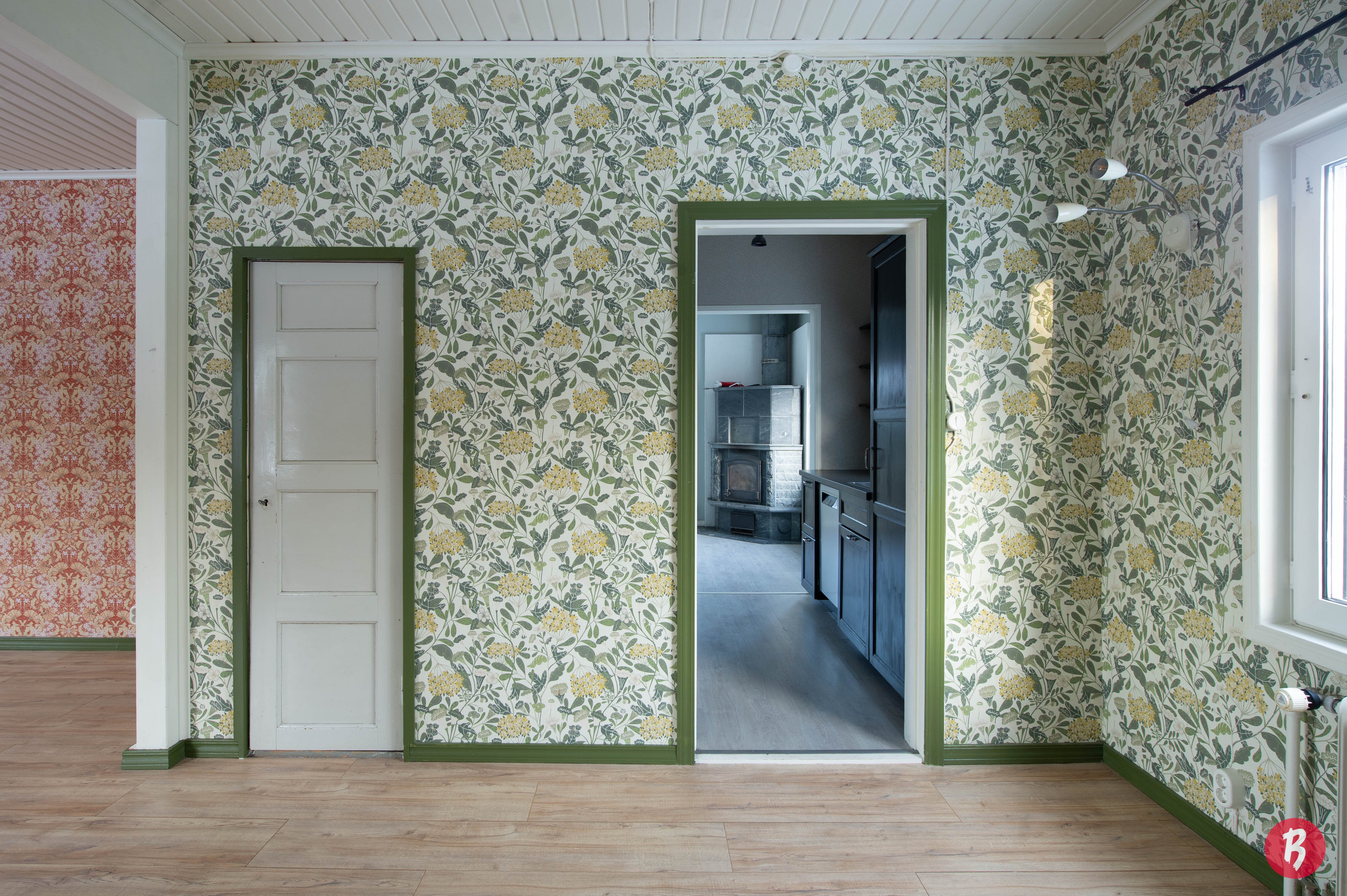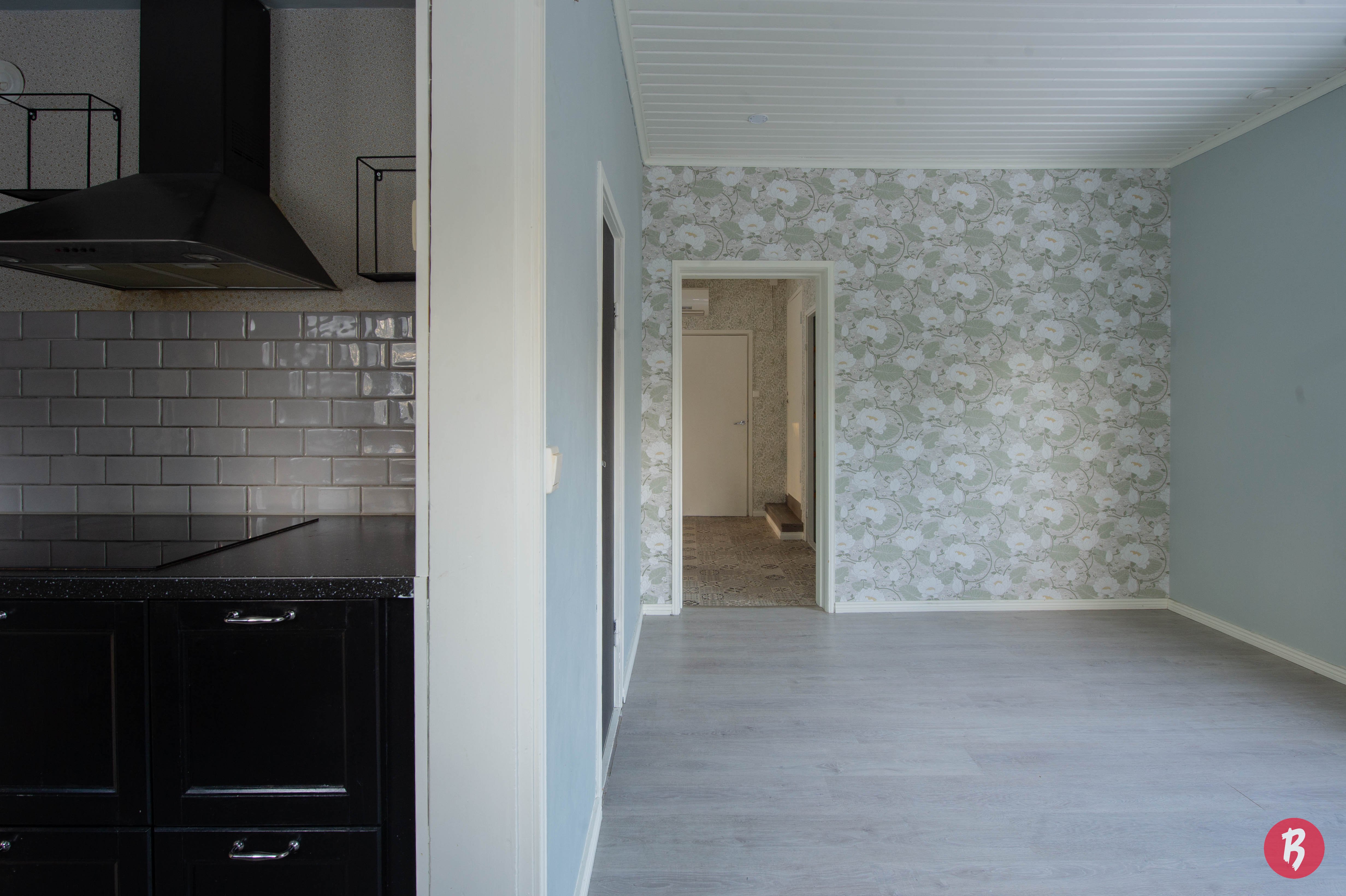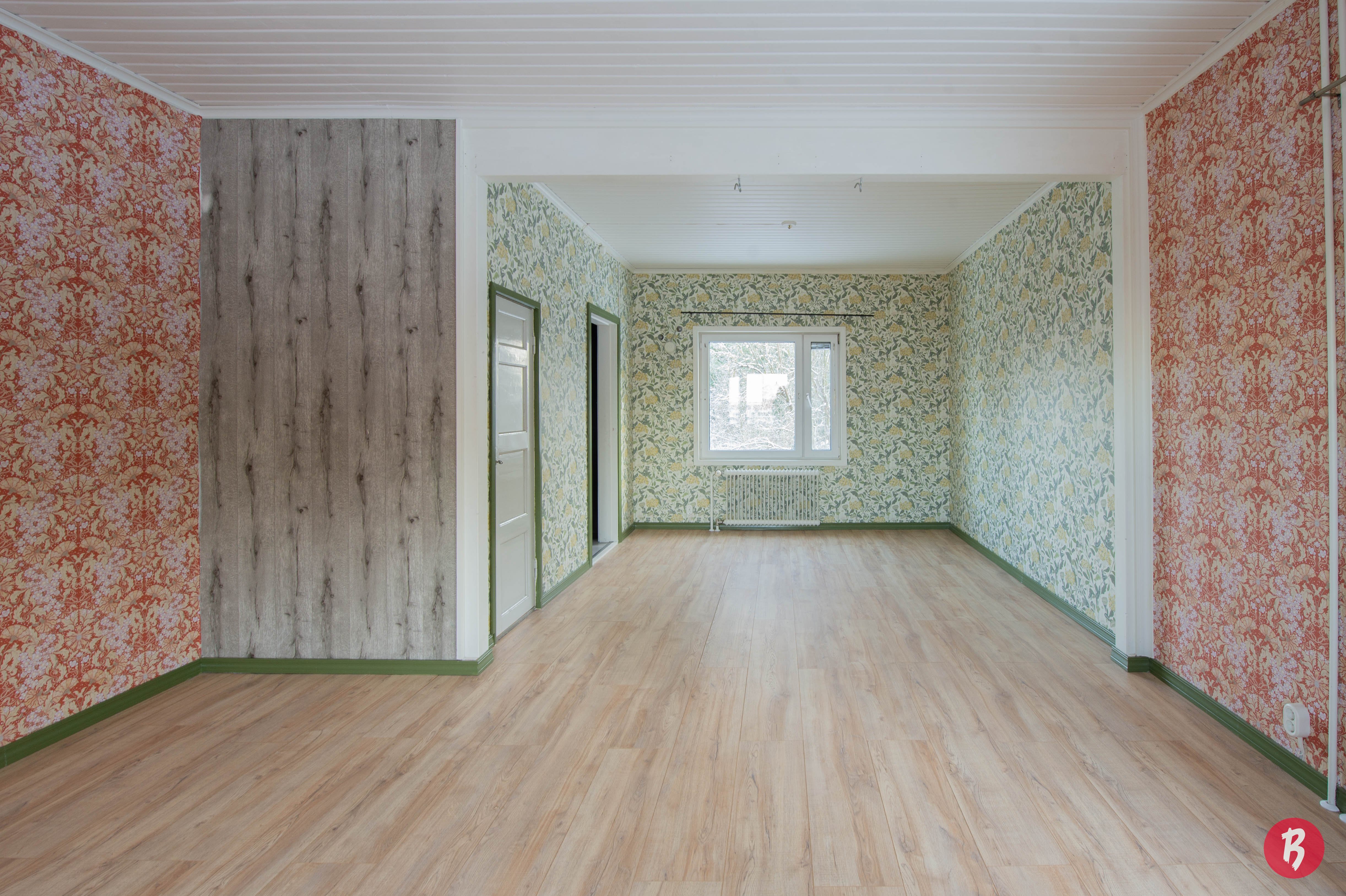 Hjärtat i hemmet är det rymliga vardagsrummet med vackert parkettgolv och tapetserade väggar. Köket är utrustat med moderna hushållsapparater, som kyl-frys och keramikspis. Badrummet har kaklade golv och väggar och erbjuder även anslutning för tvättmaskin. Huset har två separata toaletter med bekväm golvvärme.