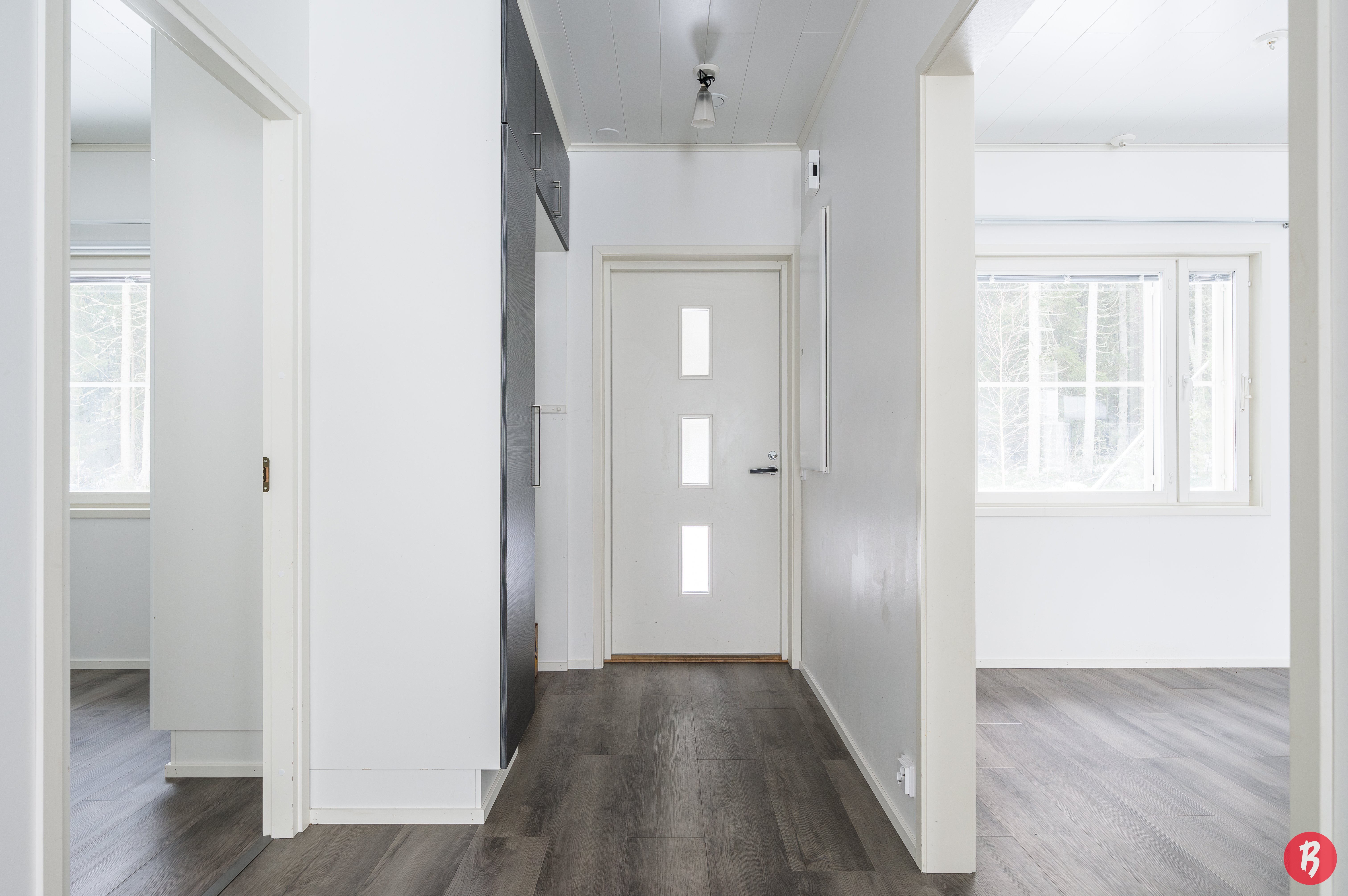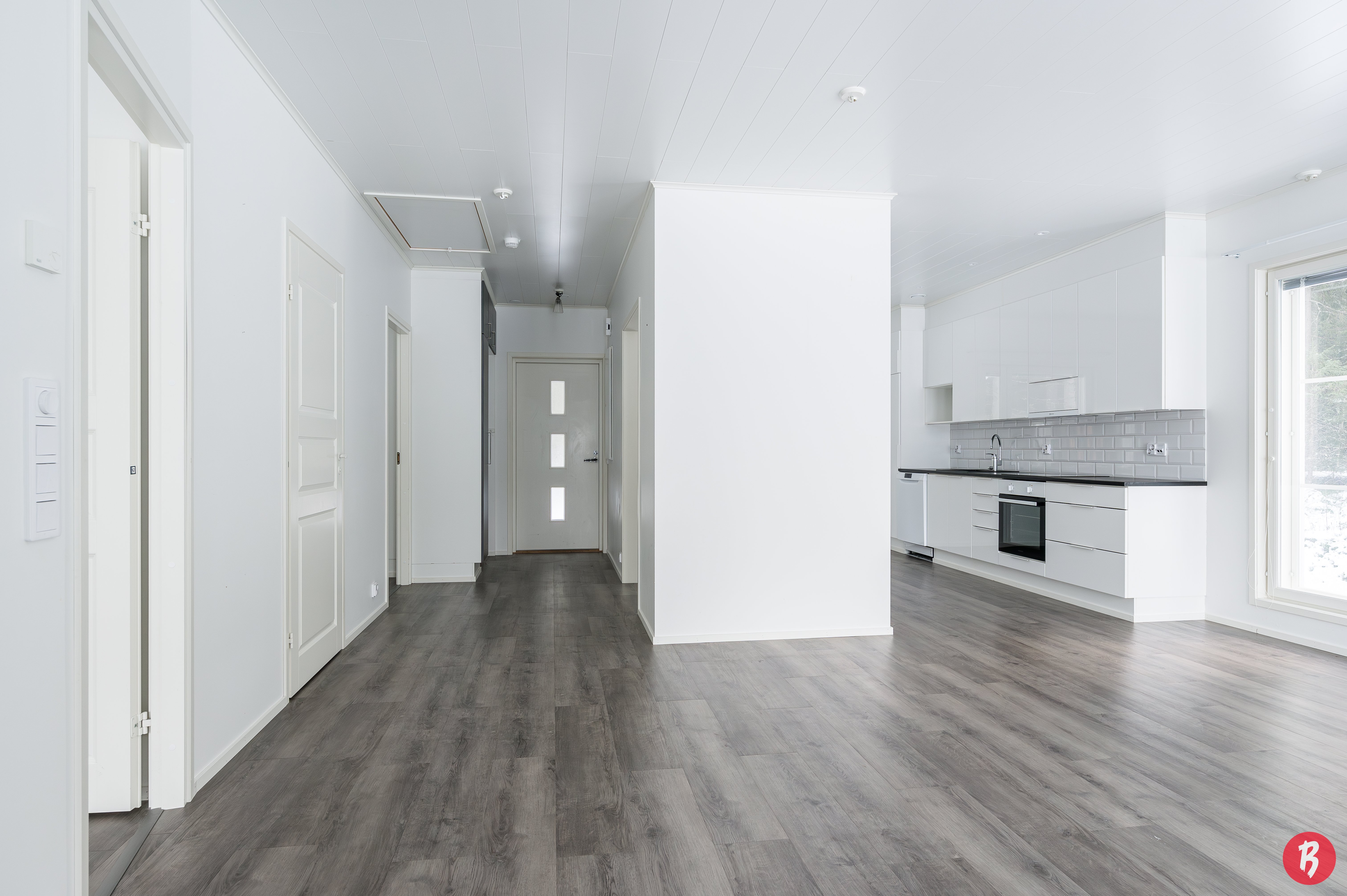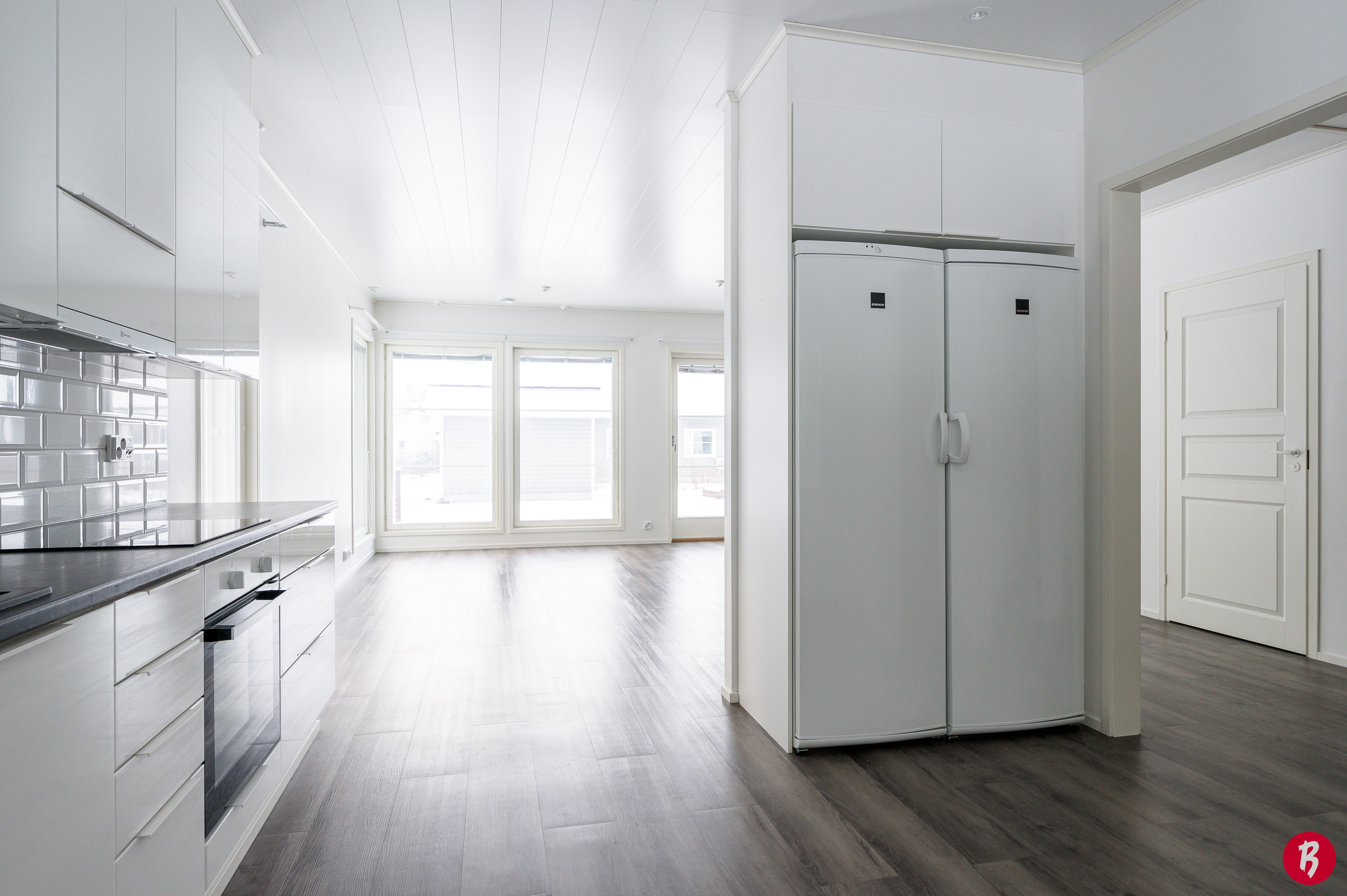 En fräsch och rymlig parhuslägenhet på Solliden i Nykarleby! Läget är toppen, nära stan men trots det vid sidan om. Lägenheten befinner sig längst in på tomten, omgiven av skog och har således naturskönt och relativt insynsskyddat läge. För barnfamiljer finns dessutom det nya dagiset upp för backen. Trerummaren har en öppen och ljus planlösning, ifall storleken inte räcker till finns möjligheten att inreda vinden till boende (förvaringsvind i nuläget). Bostadsbolaget har vinterunderhåll och robotgräsklippare, vilket bidrar till bekvämt boende. Till lägenheten hör biltak, förråd och en egen bilplats. Hör av er för visning!