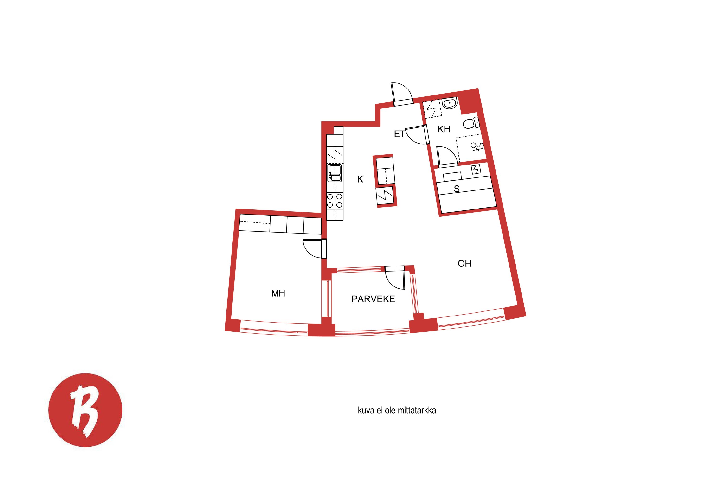 Huoneiston viherhuone/parveke ei sisälly yhtiöjärjestykseen merkittyyn pinta-alaan.