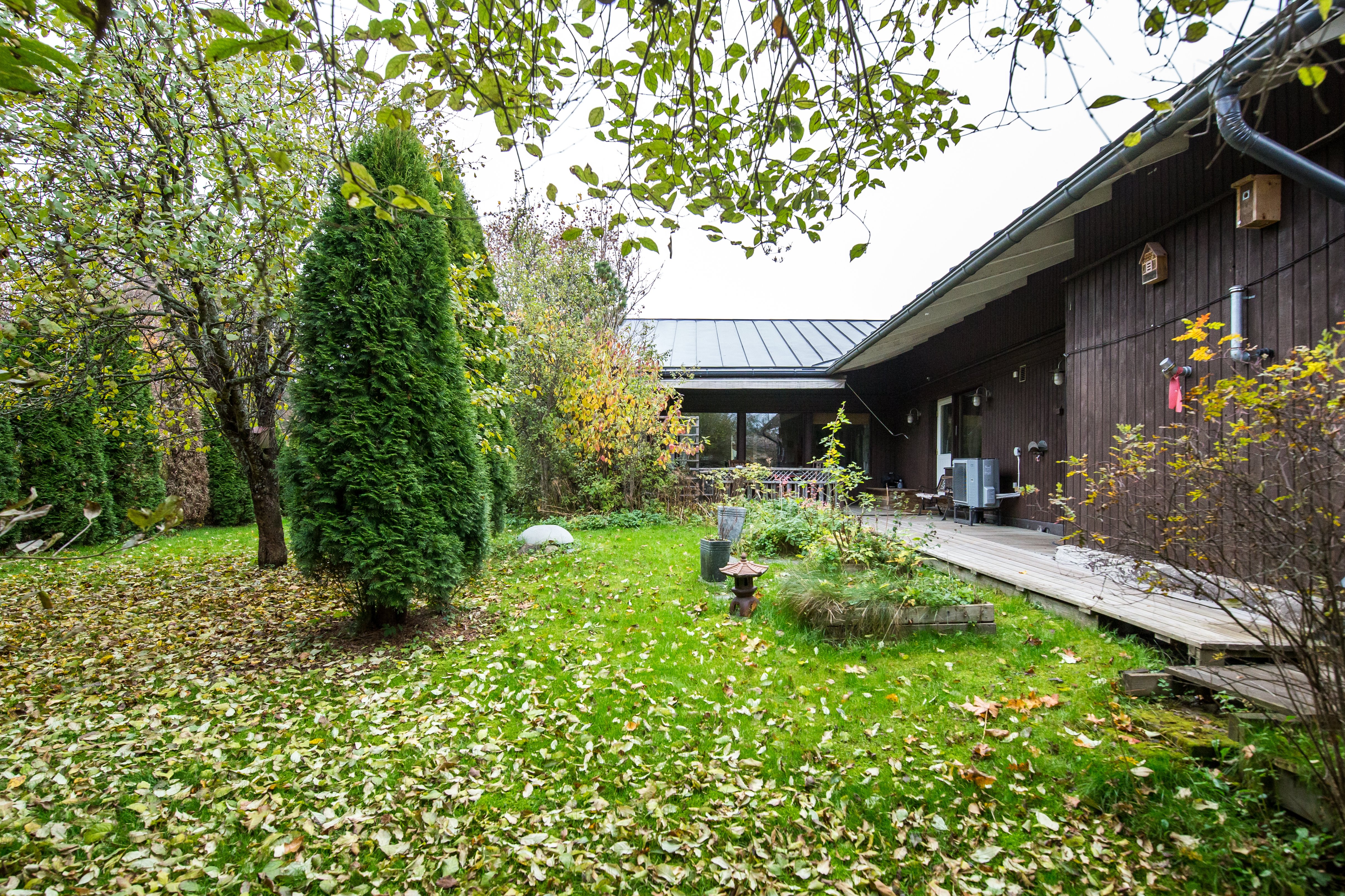 Pihapiiri on suojaisa ja tarjoaa tilaa niin lasten leikkeihin, pihapeleihin kuin puutarhaharrastukseenkin.