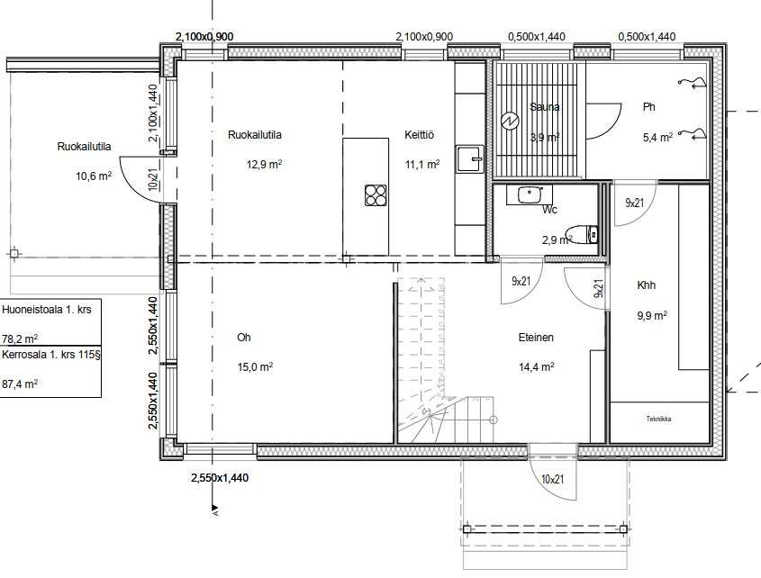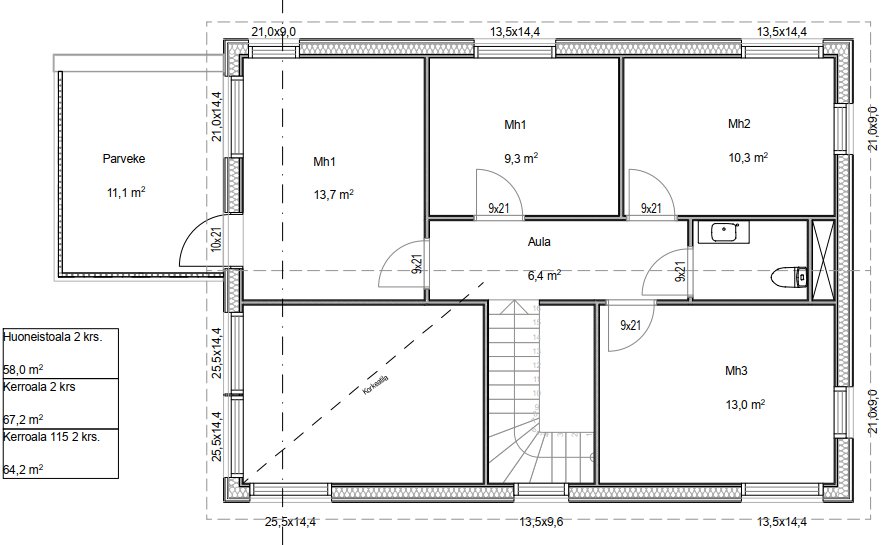 Ei tarkistusmitattu. Pinta-ala voi siis olla edellä mainittua pienempi tai suurempi.