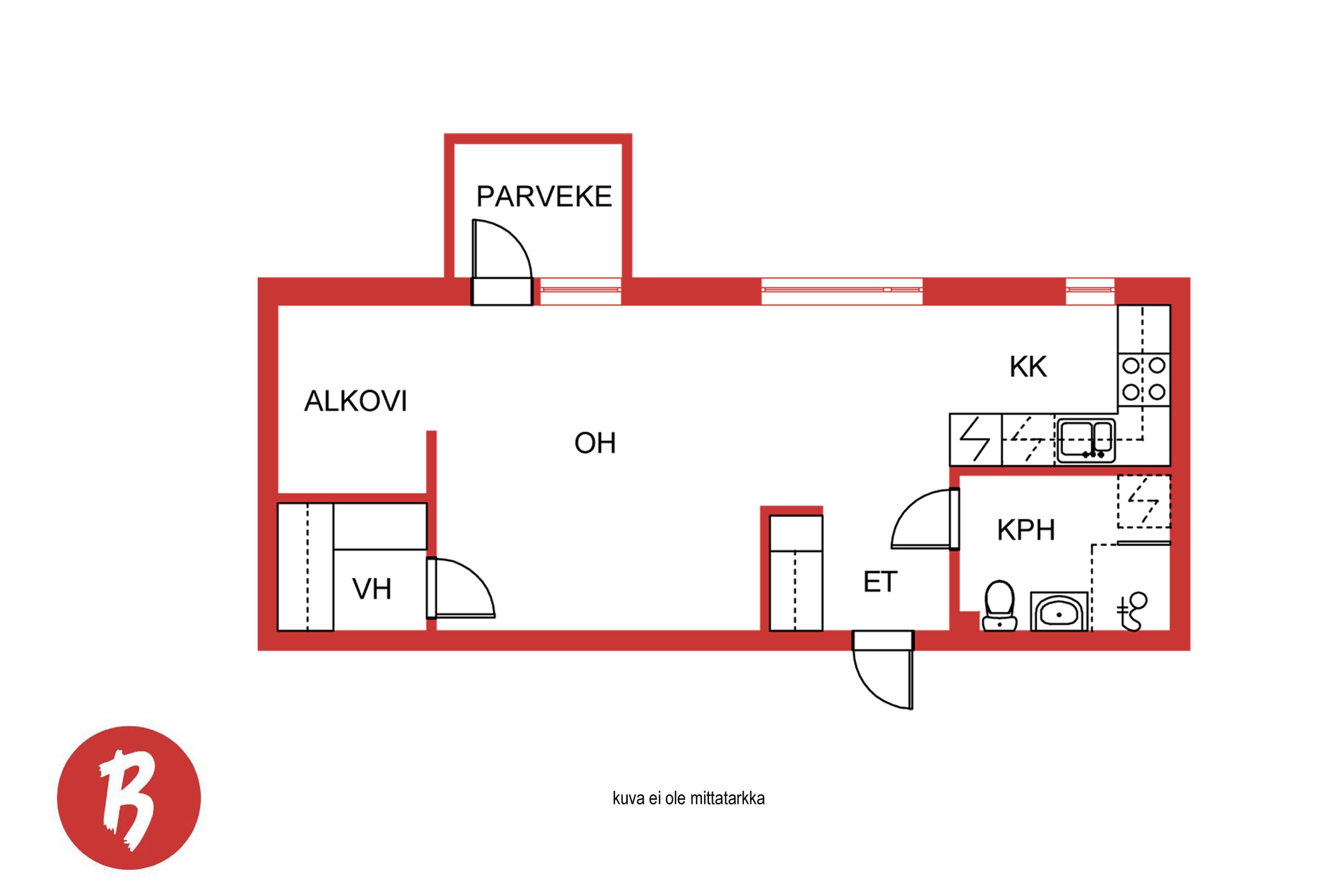 Ei tarkistusmitattu. Pinta-ala voi siis olla edellä mainittua pienempi tai suurempi.