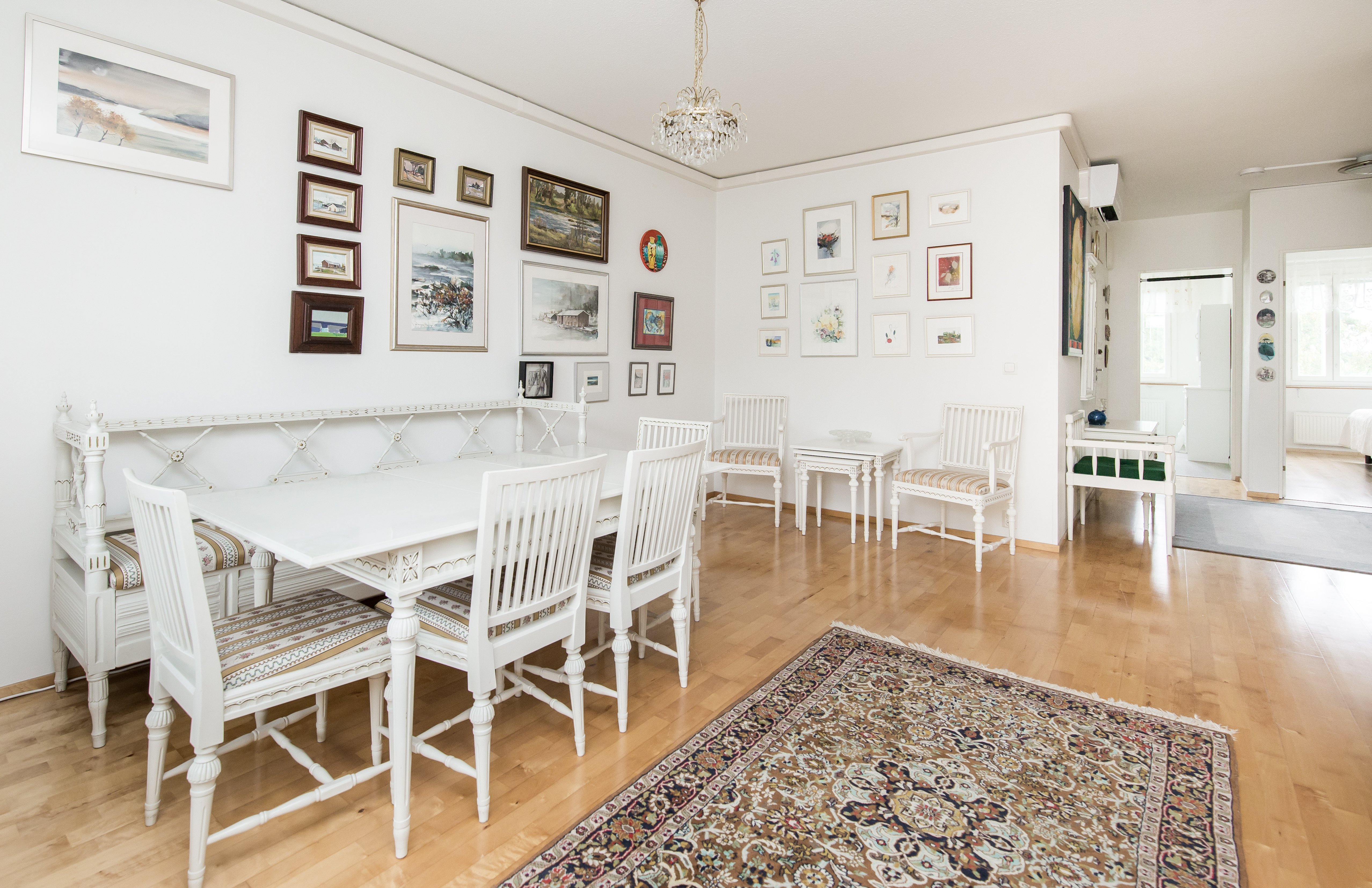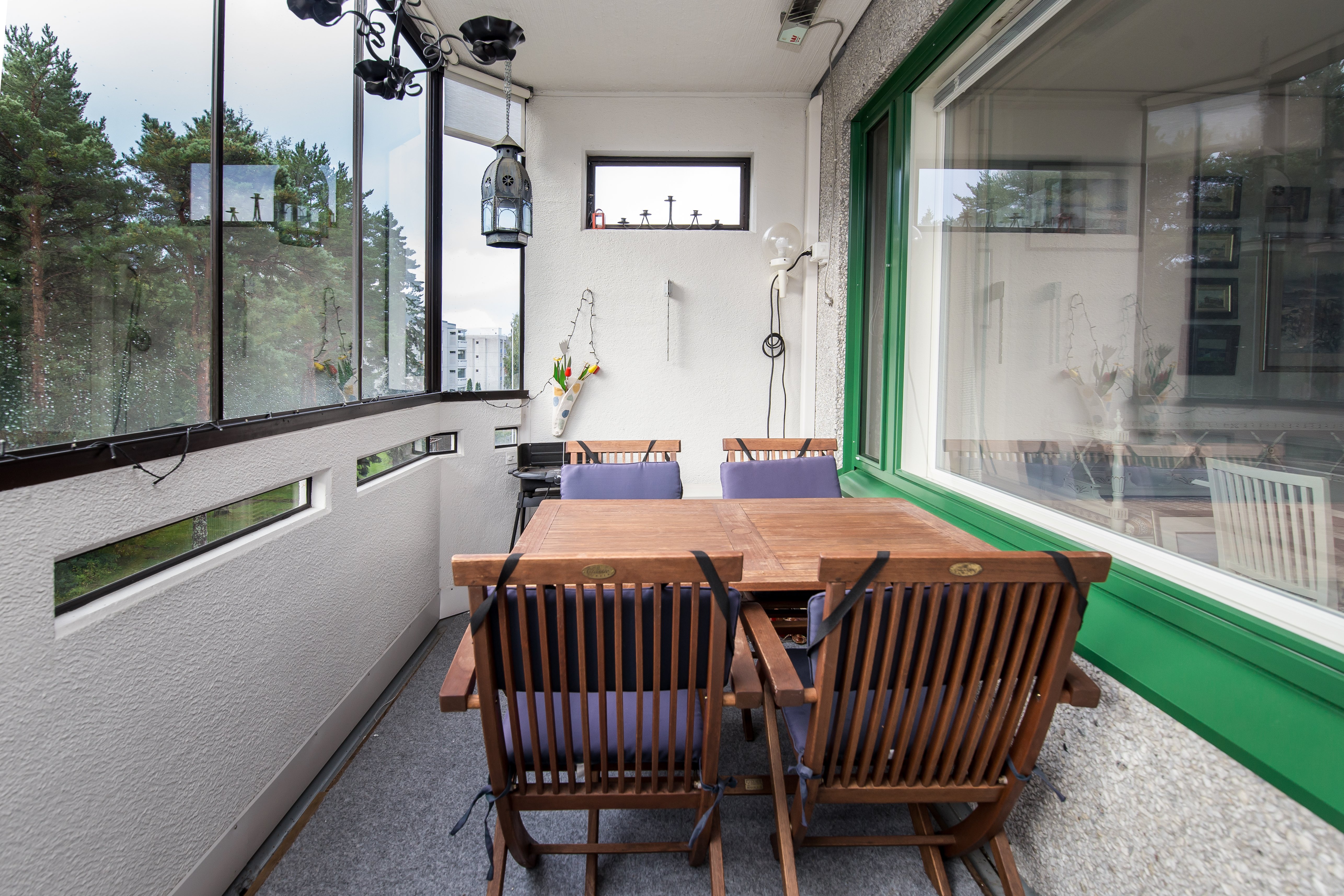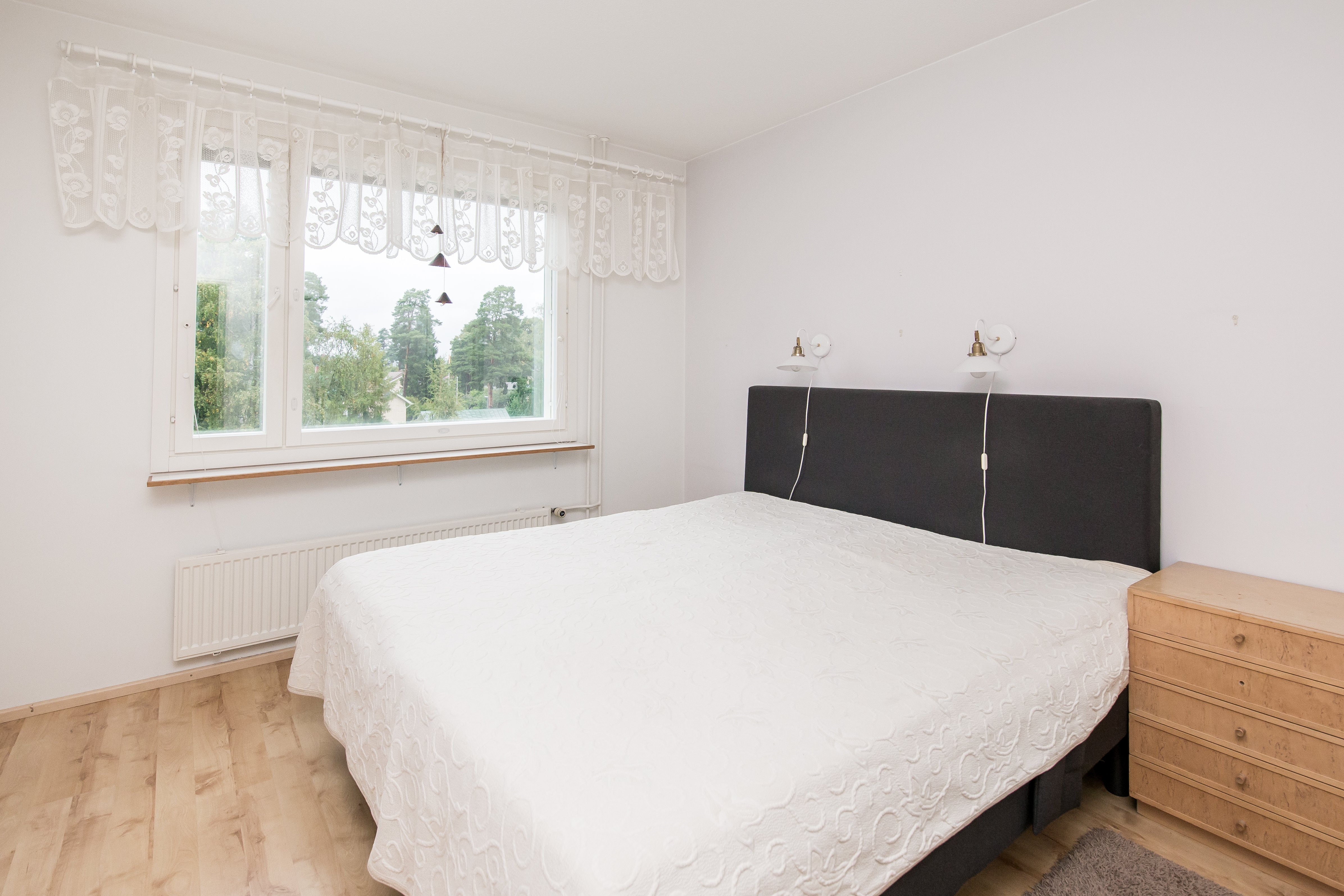 Denna lägenhet som sträcker sig genom hela huset, har en bra och funktionell planlösning och gott om förvaringsutrymmen. Köket är tillräckligt stort, även för ett rymligt matbord och det finns gott om avlastningsytor. Från vardagsrummet kommer man ut till en en egen mysig och solig söderbalkong, där man kan t.ex. grilla och umgås med familj och vänner. Tvättutrymmet är i bra skick. Och där finns även en egen bastu. Bostaden har även en luftvärmepump som ger svalka under de varmaste sommardagarna.