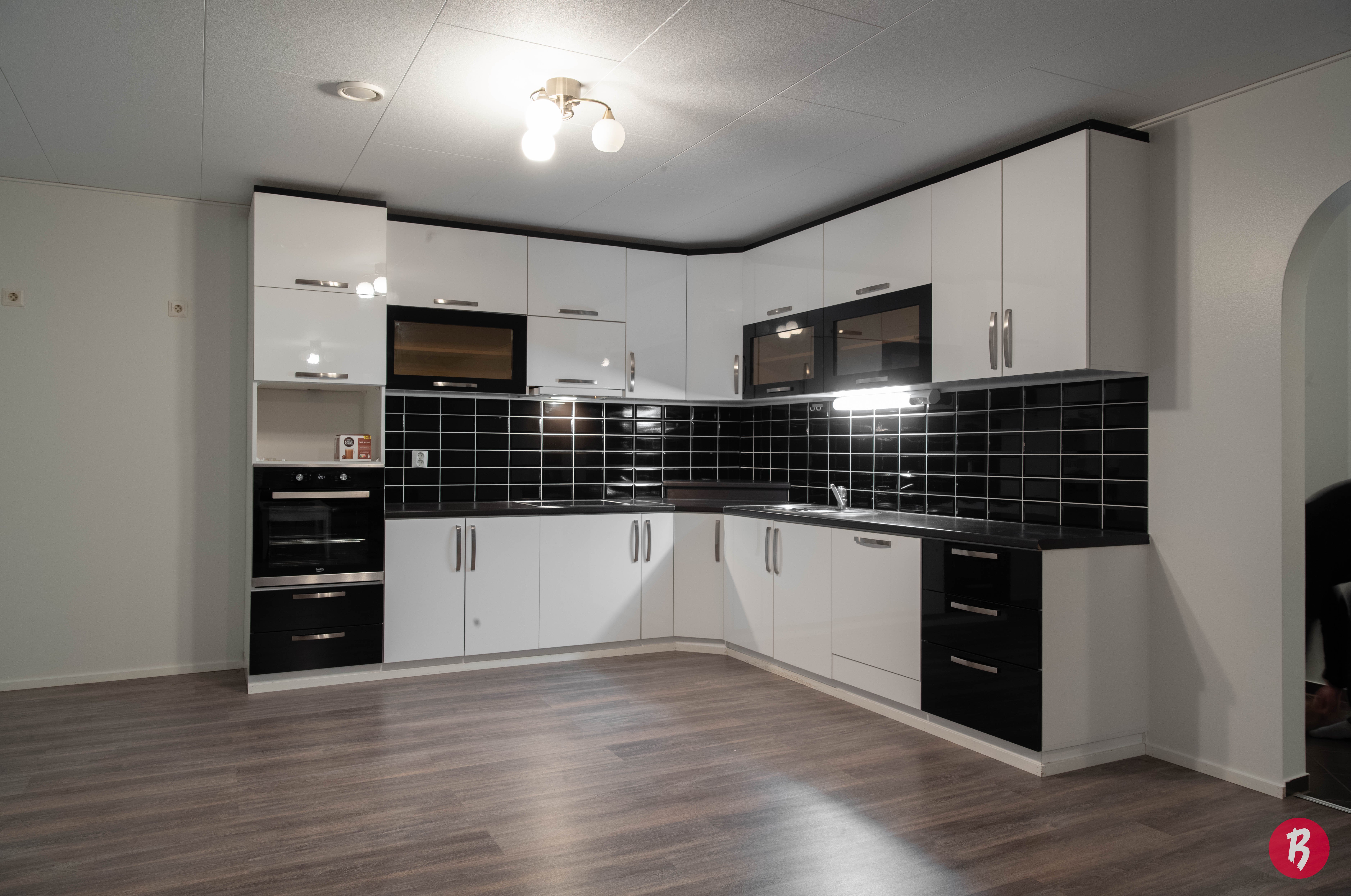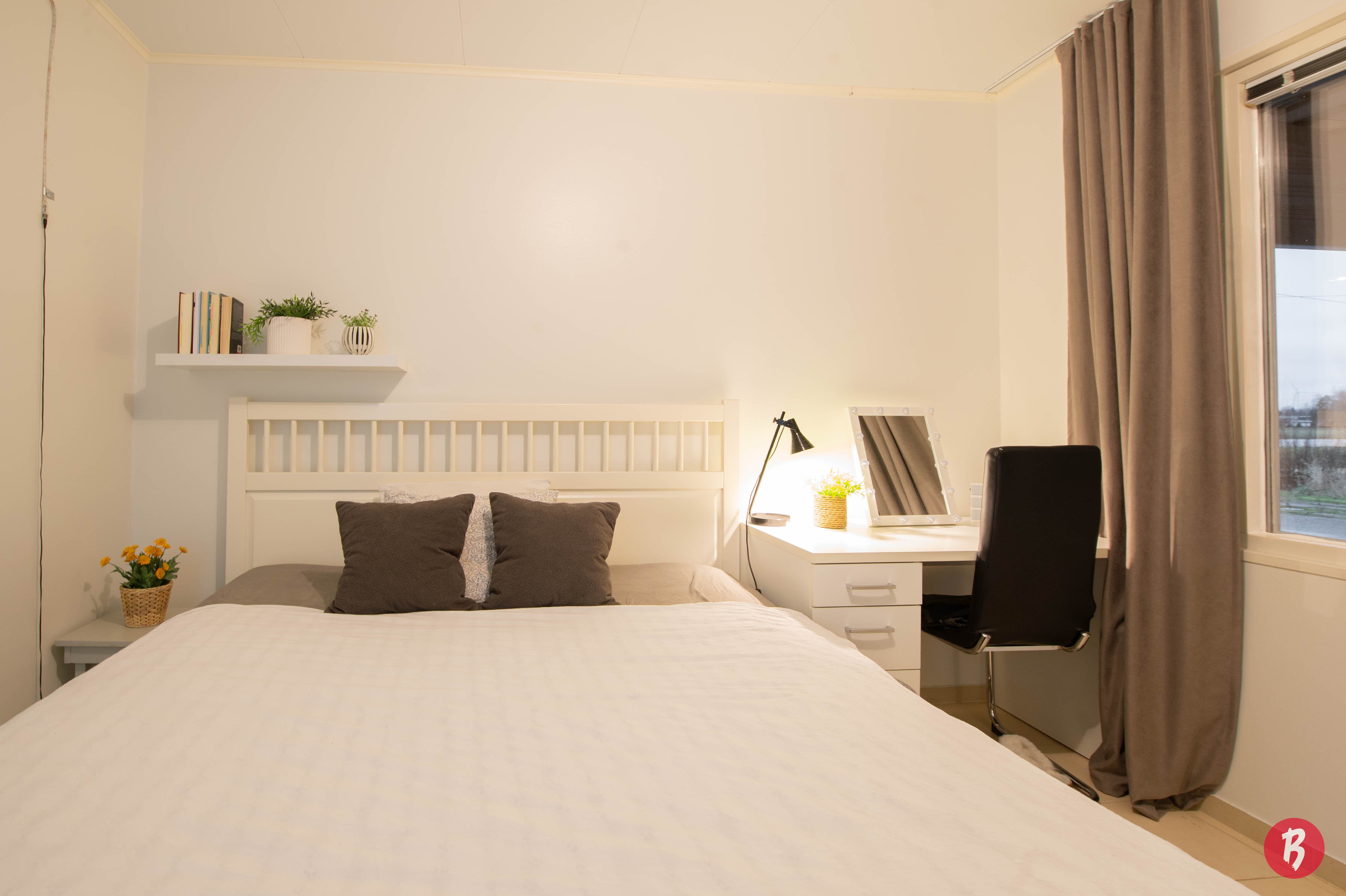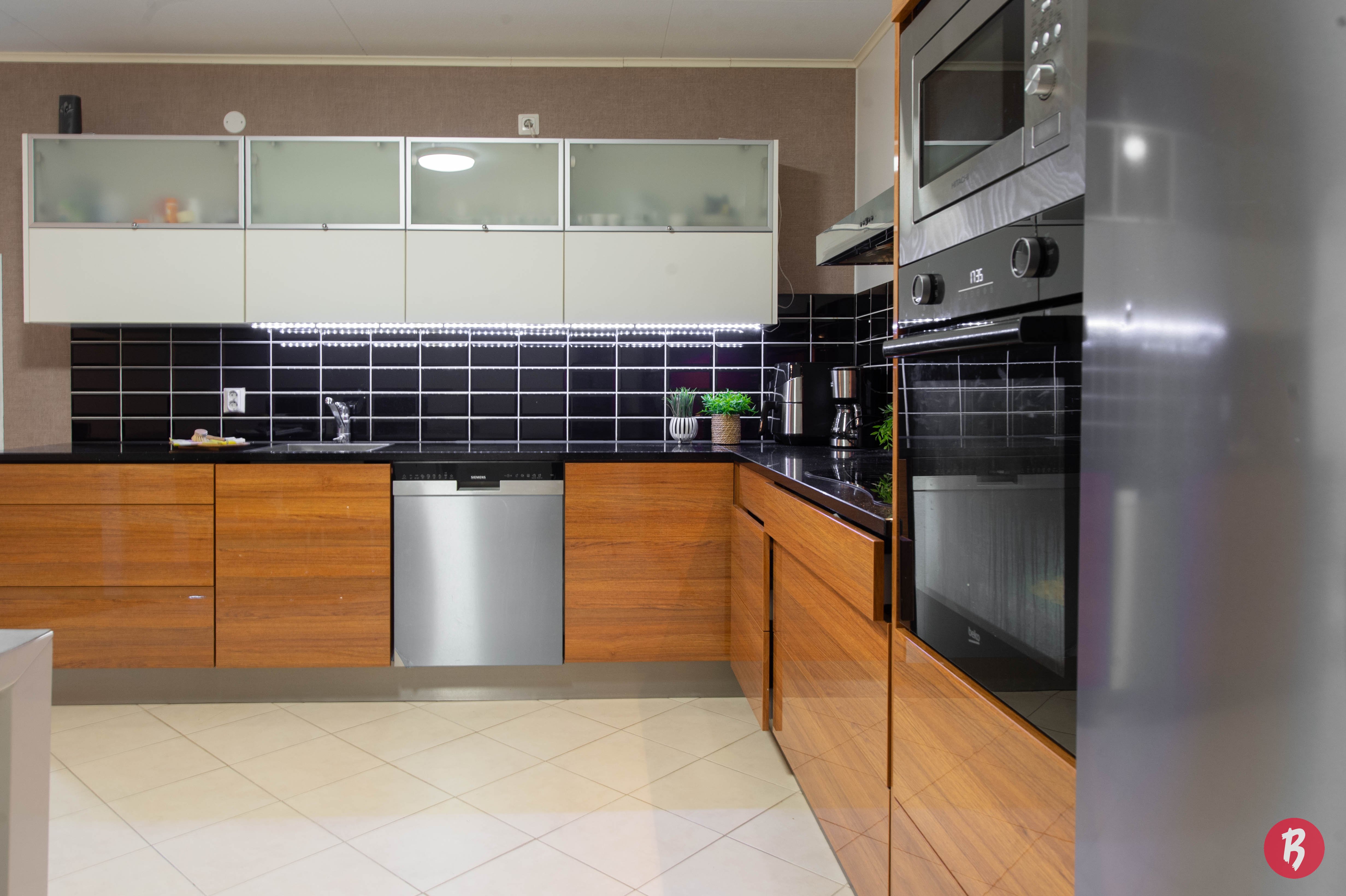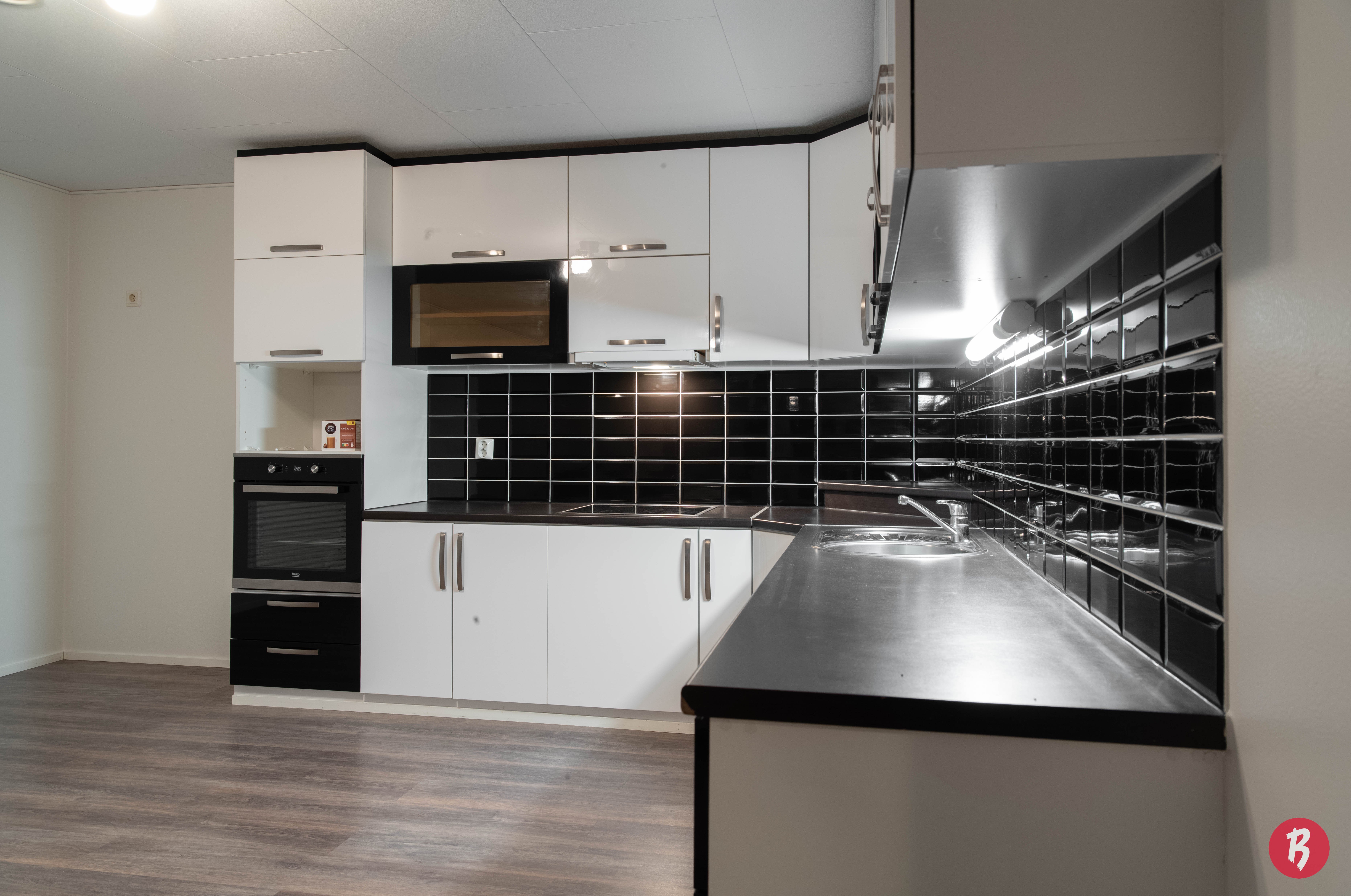 Keittiö on varusteltu nykyaikaisilla laitteilla, kuten keraamisella liedellä ja jääkaappi-pakastimella, ja sauna tarjoaa rentouttavat löylyt päivän päätteeksi. Kylpyhuoneet ovat käytännöllisiä ja tyylikkäitä, ja säilytystilaa löytyy runsaasti kaapistoista.