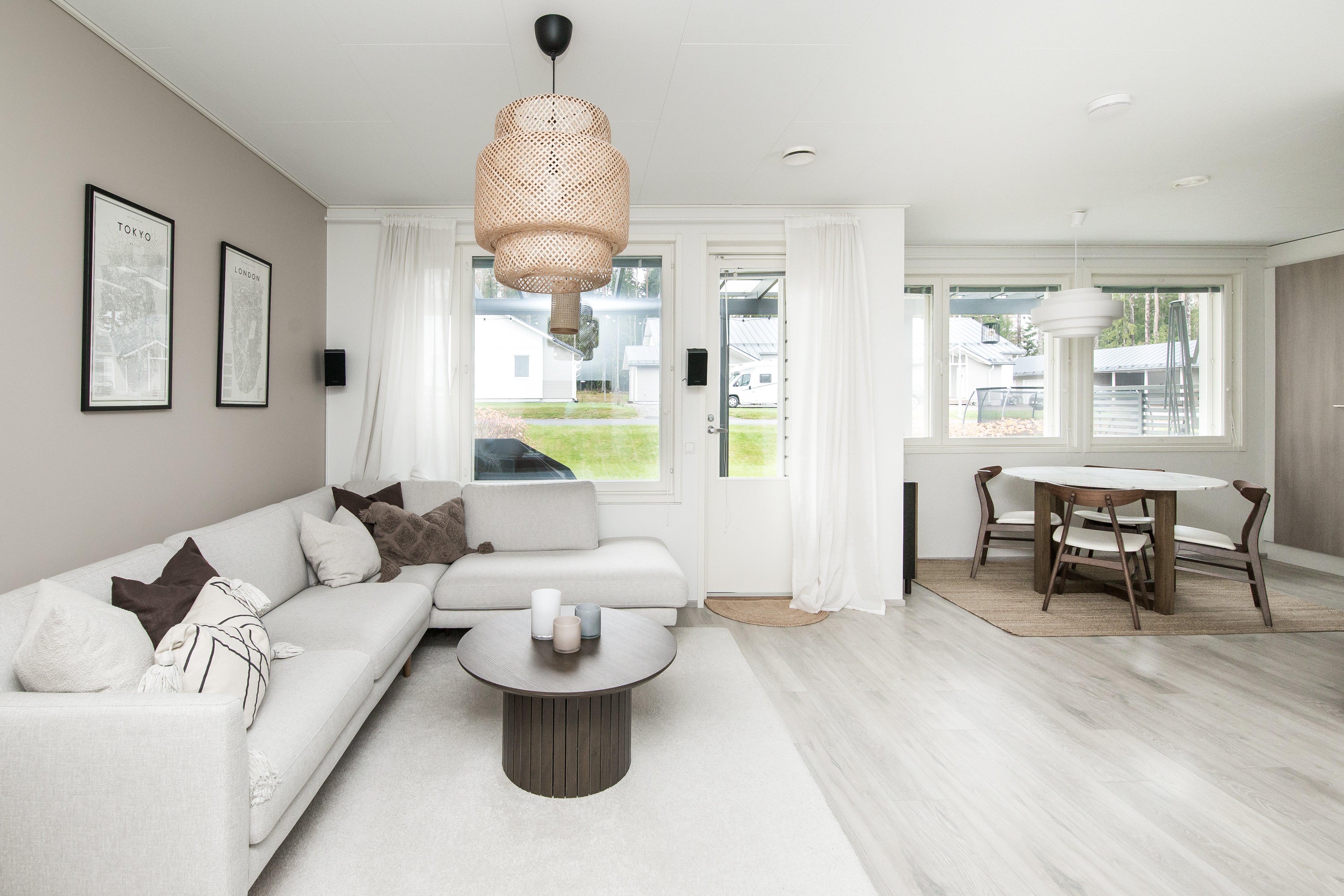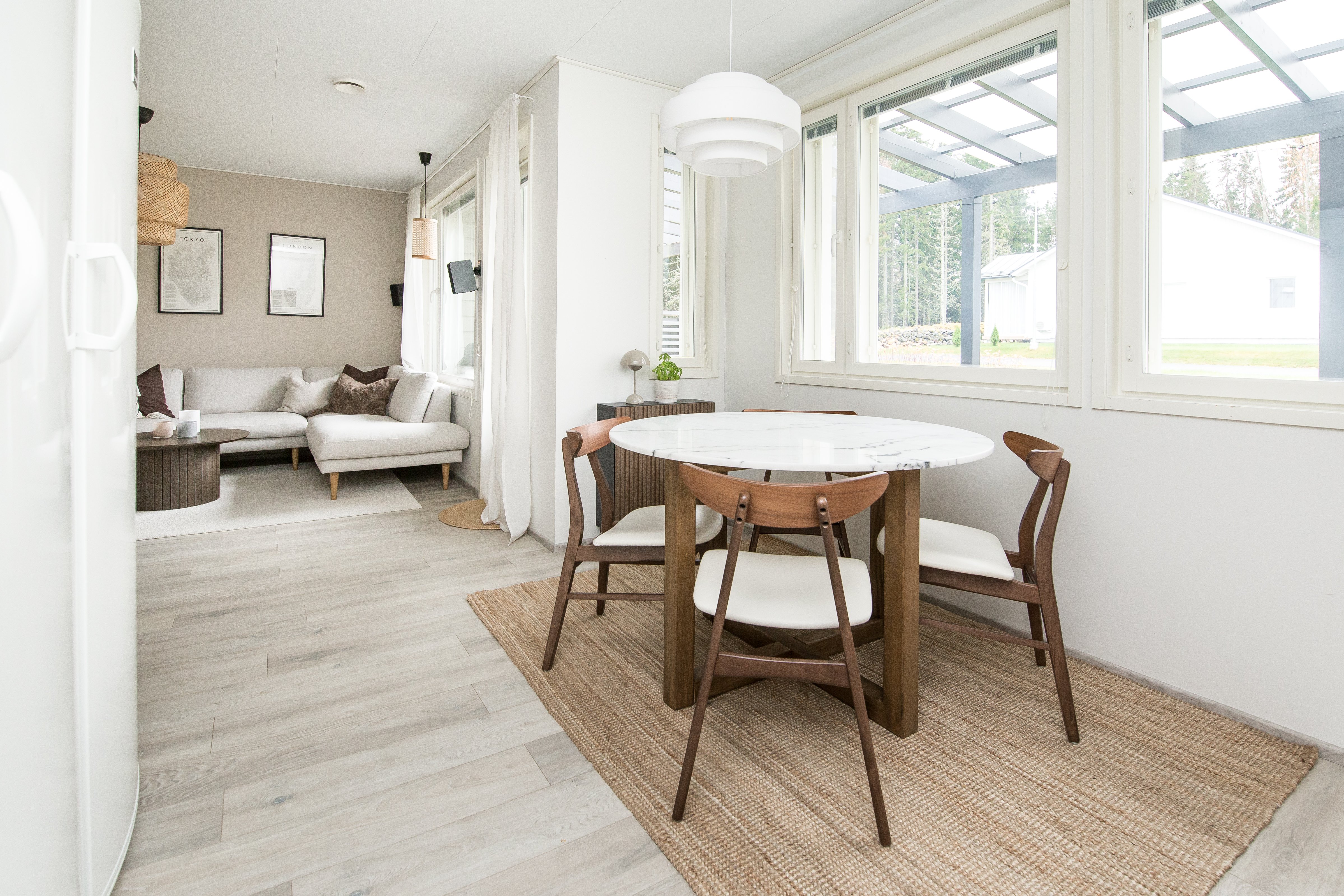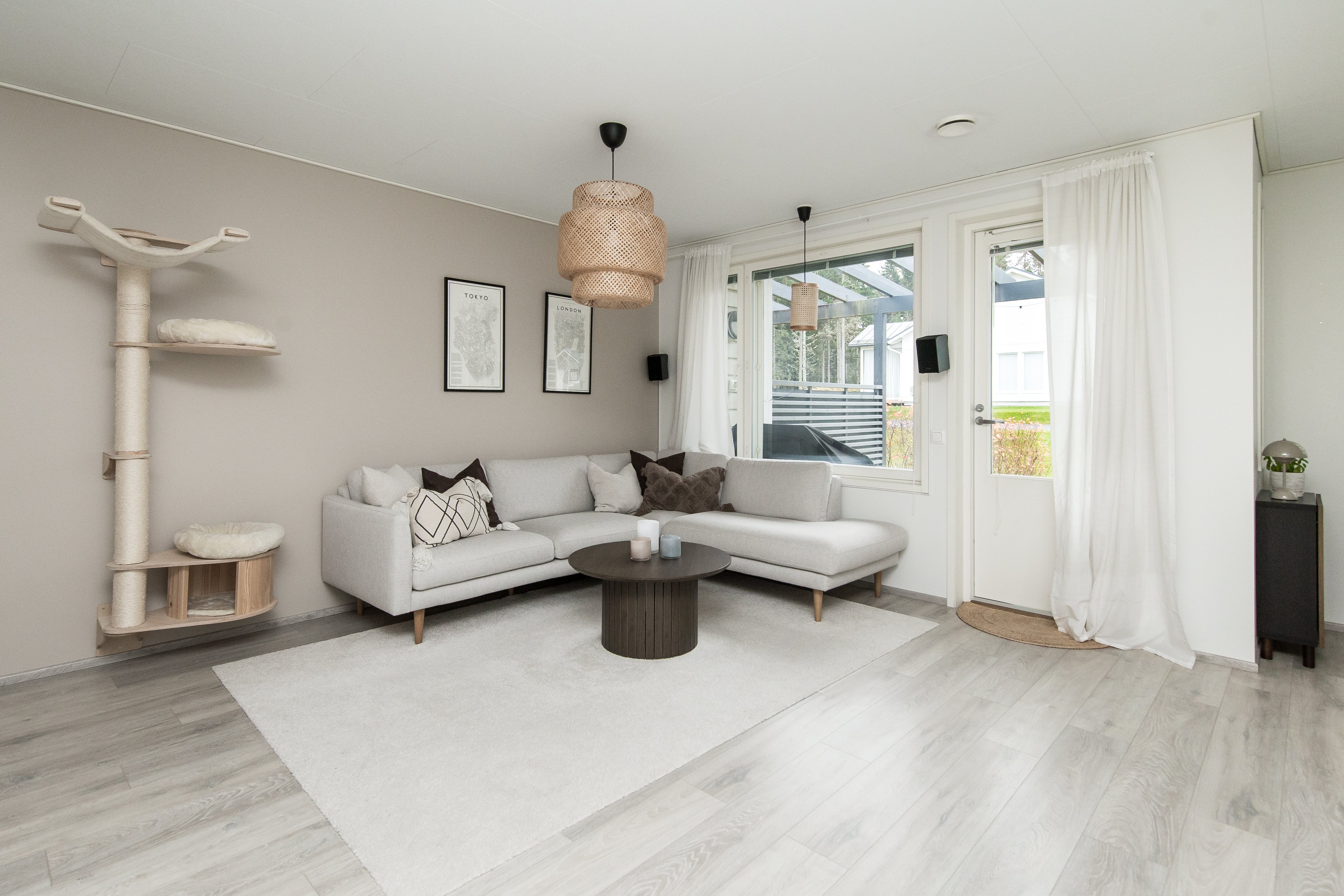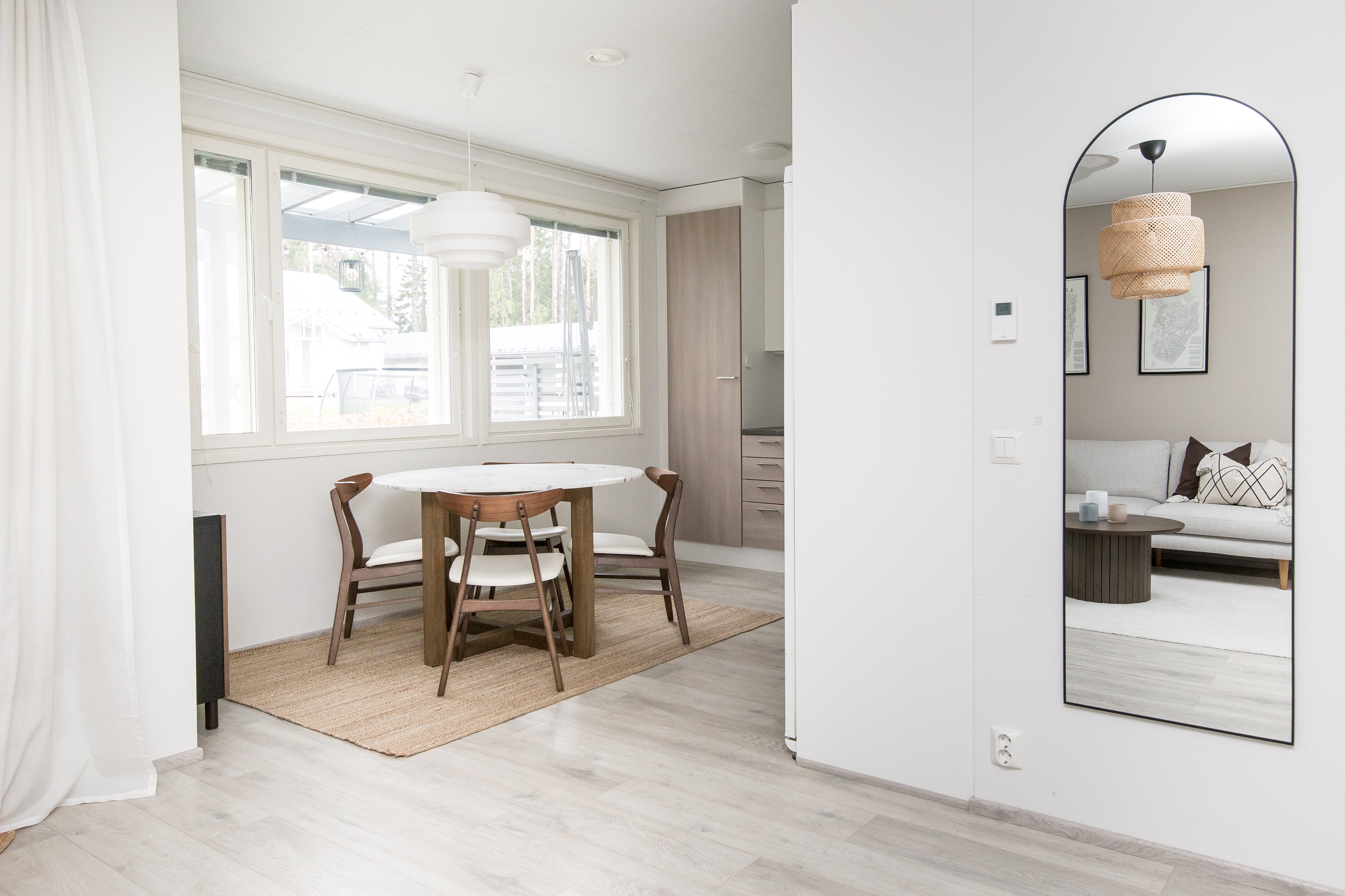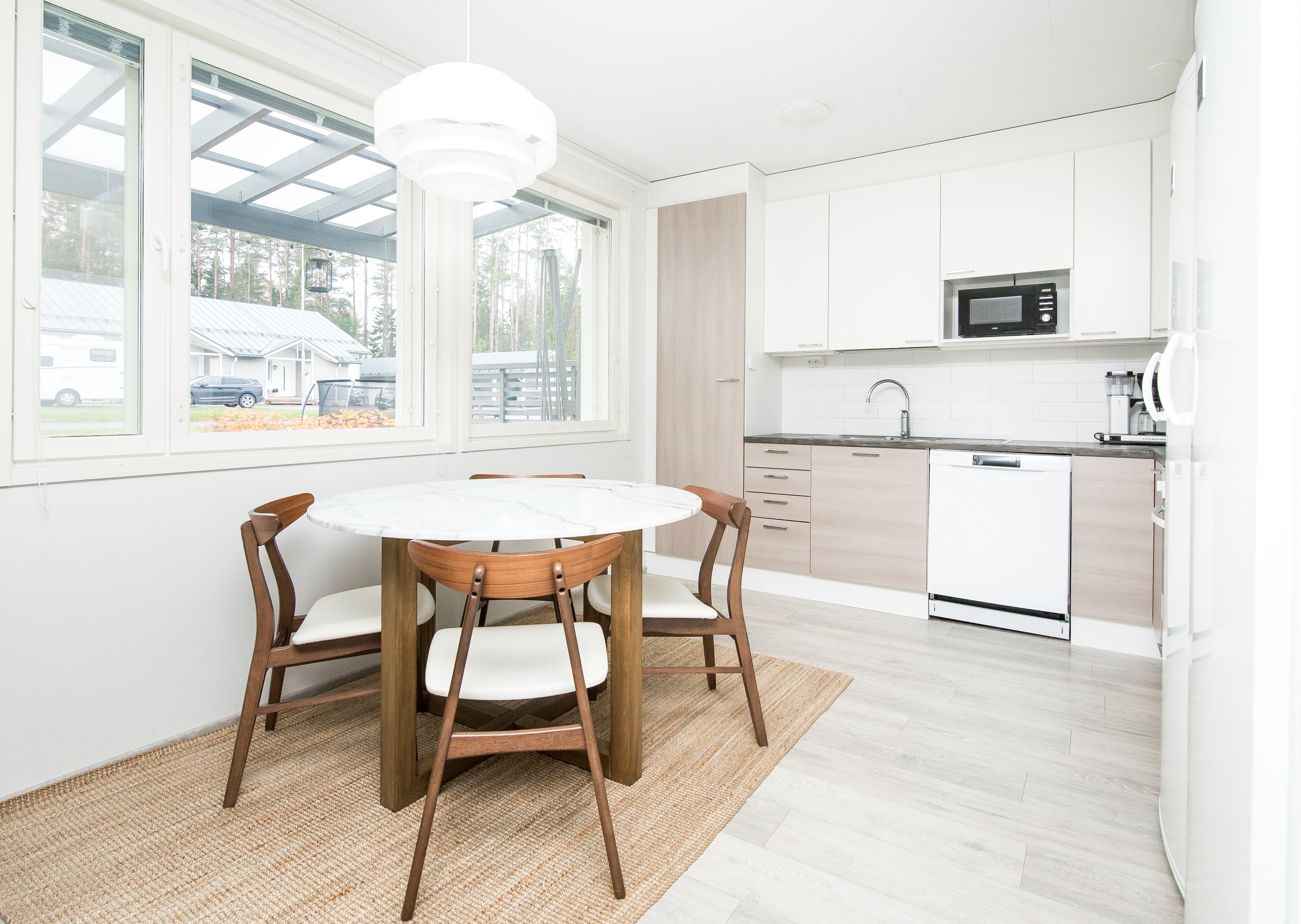 Asunnossa on kaksi makuuhuonetta, avara olohuone ja hyvin varusteltu keittiö, josta löytyy kaikki tarvittava vaativampaakin kokkailuun. Kylpyhuoneessa on lattialämmitys ja sauna tarjoaa rentouttavat löylyt kiireisen päivän päätteeksi. Oma terassi tarjoaa mukavan paikan nauttia ulkoilmasta ja kauniista ympäristöstä. Asunnon skandinaaviset materiaalivalinnat luovat modernin ja raikkaan ilmeen.