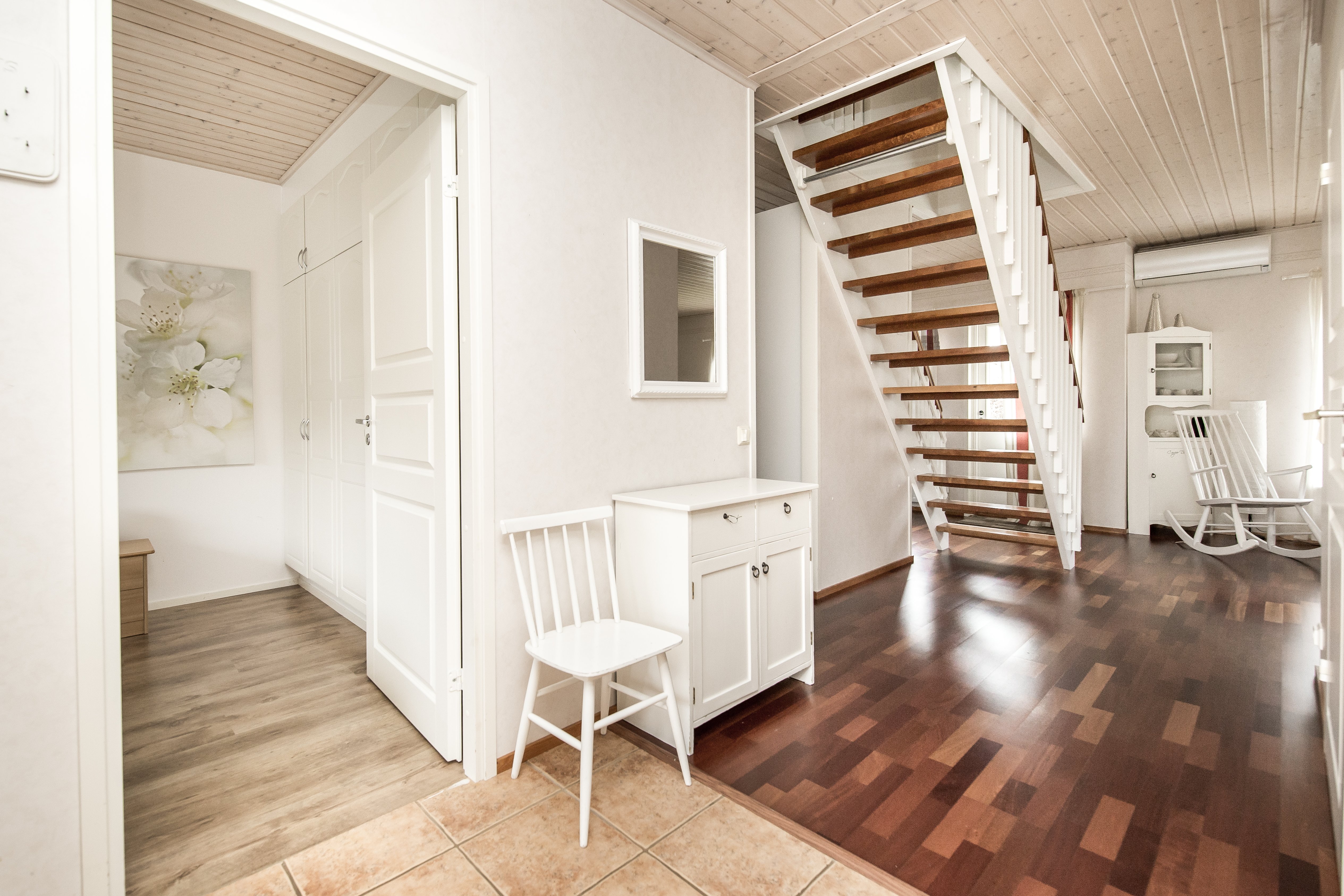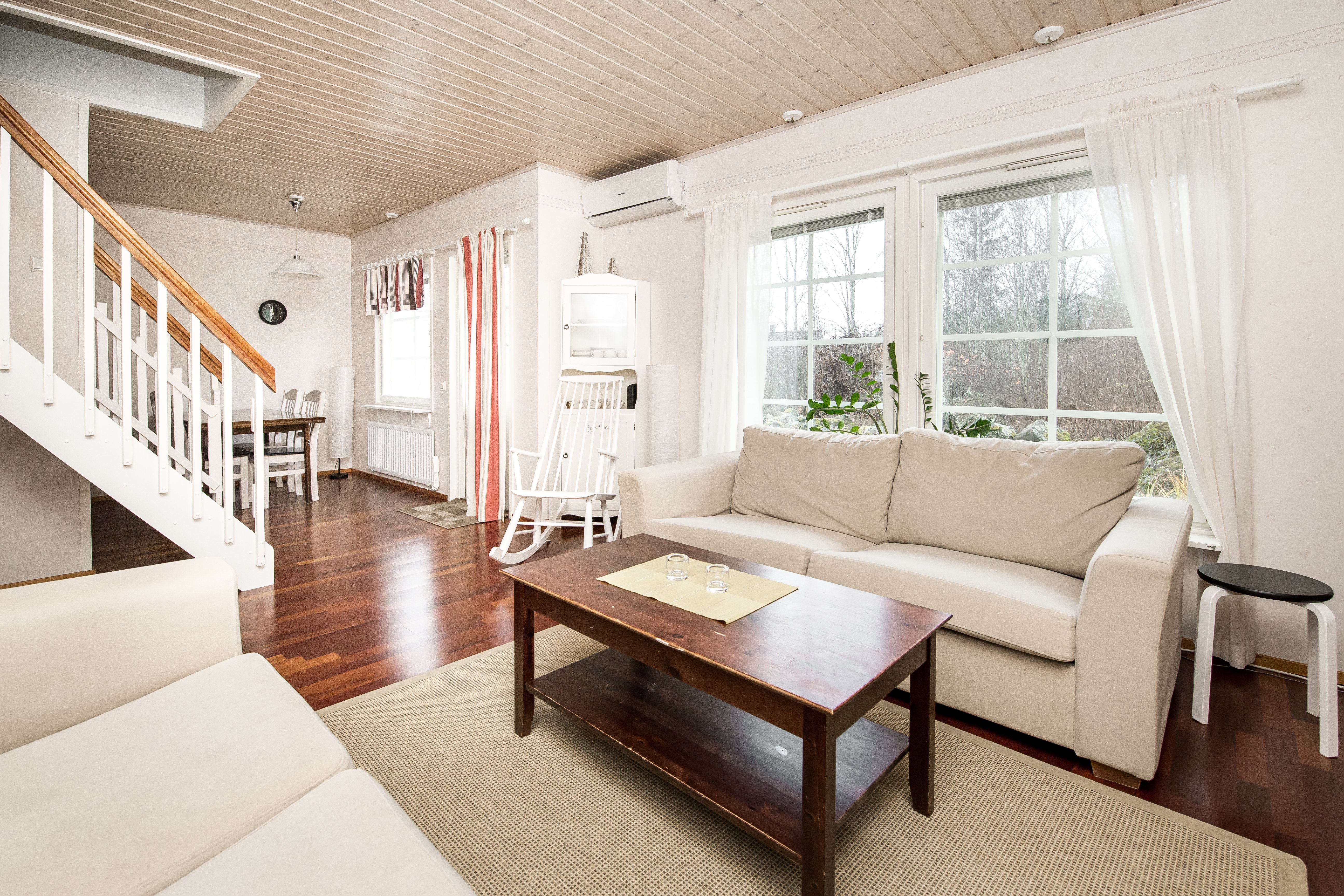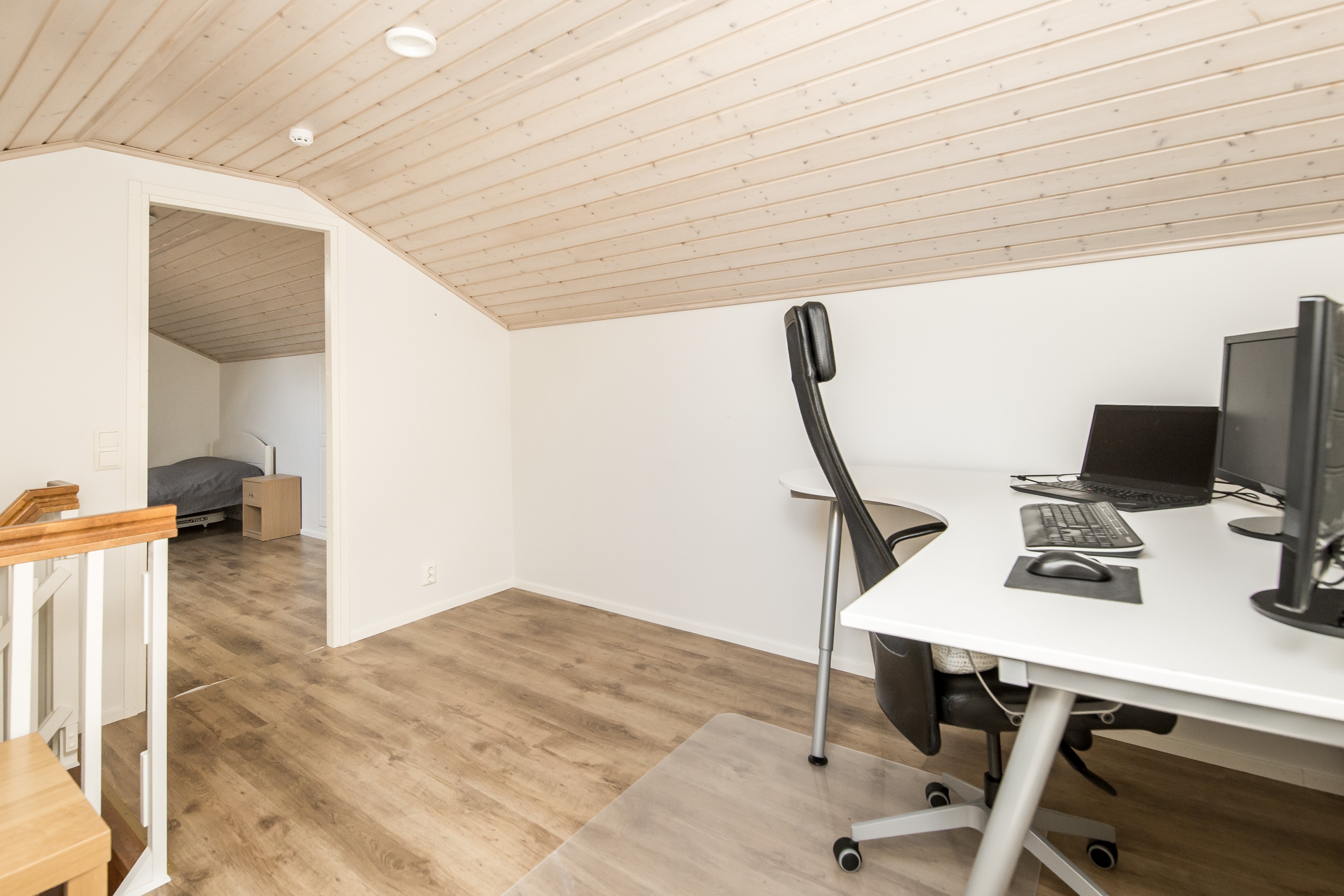 Denna bostad har en bra och funktionell planlösning. Köket är utrustat med moderna bekvämligheter, och det finns gott om arbetsyta även för den mest krävande hemmakocken. Köket ansluter sömlöst till vardagsrummet. Från vardagsrummet finns utgång till en västterrass. Bostadens bastu erbjuder möjlighet att koppla av efter en hektisk dag. I bostaden finns också en luftvärmepump som kyler under sommarvärmen och ger komfort och energieffektivitet året runt.