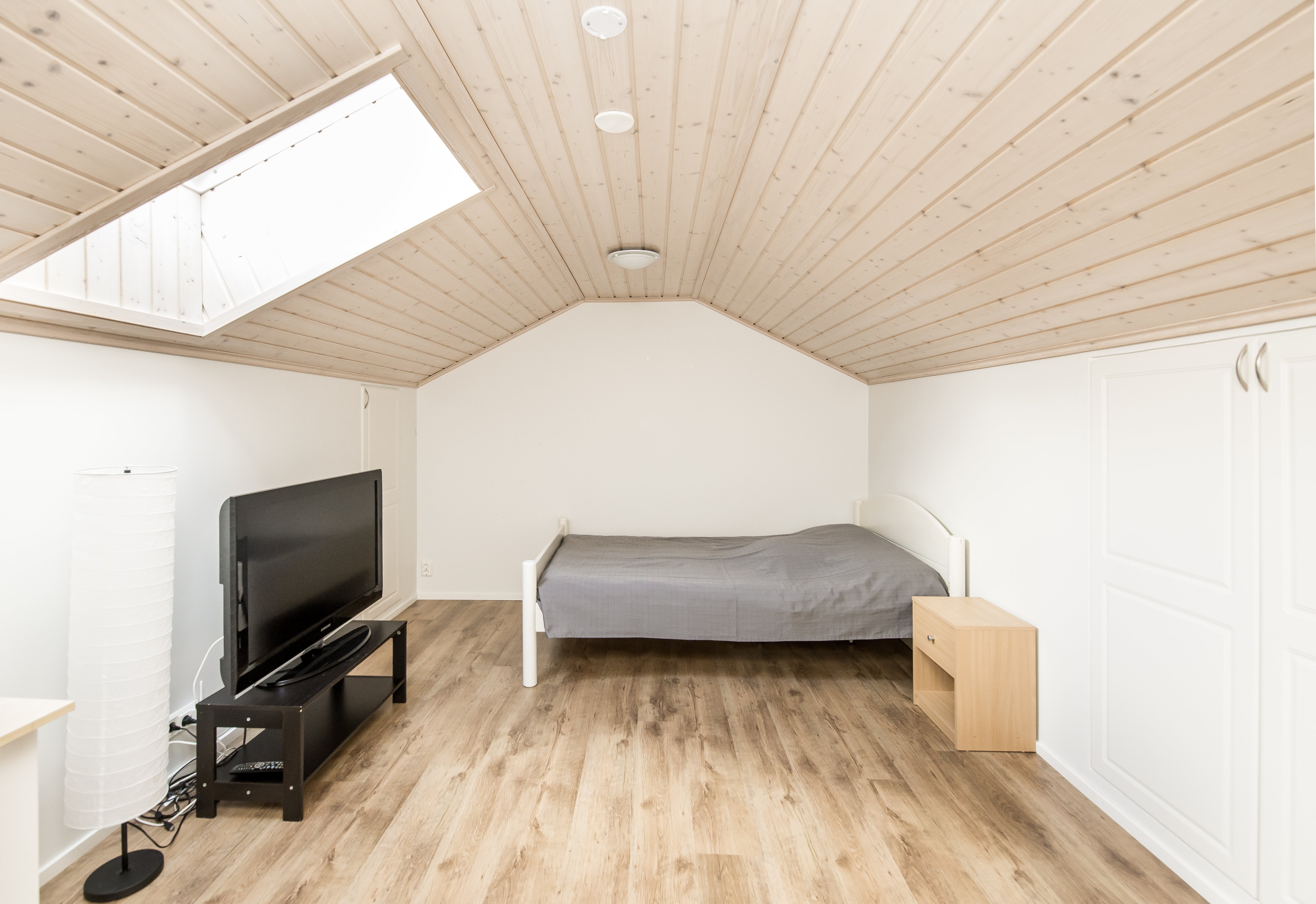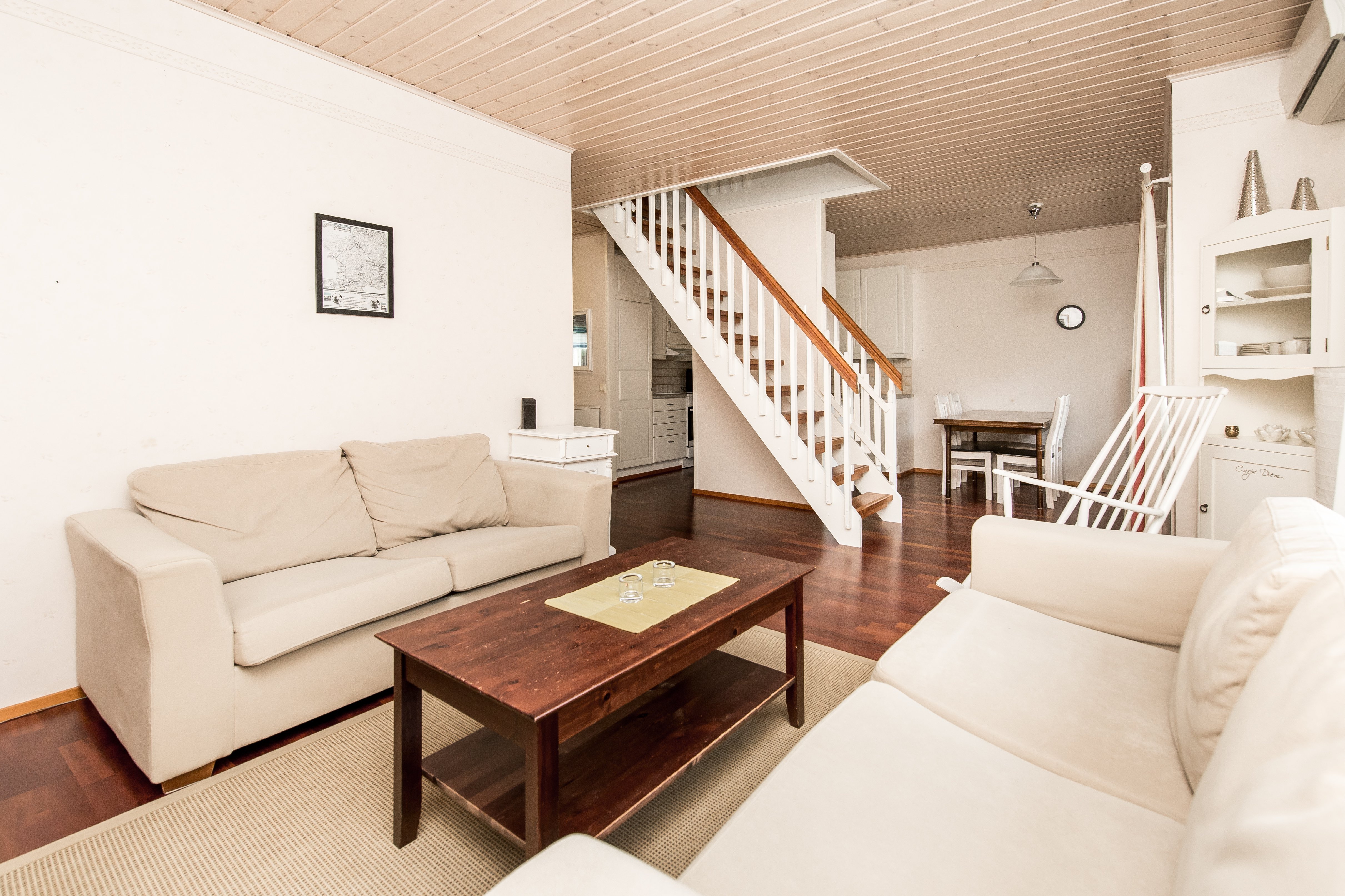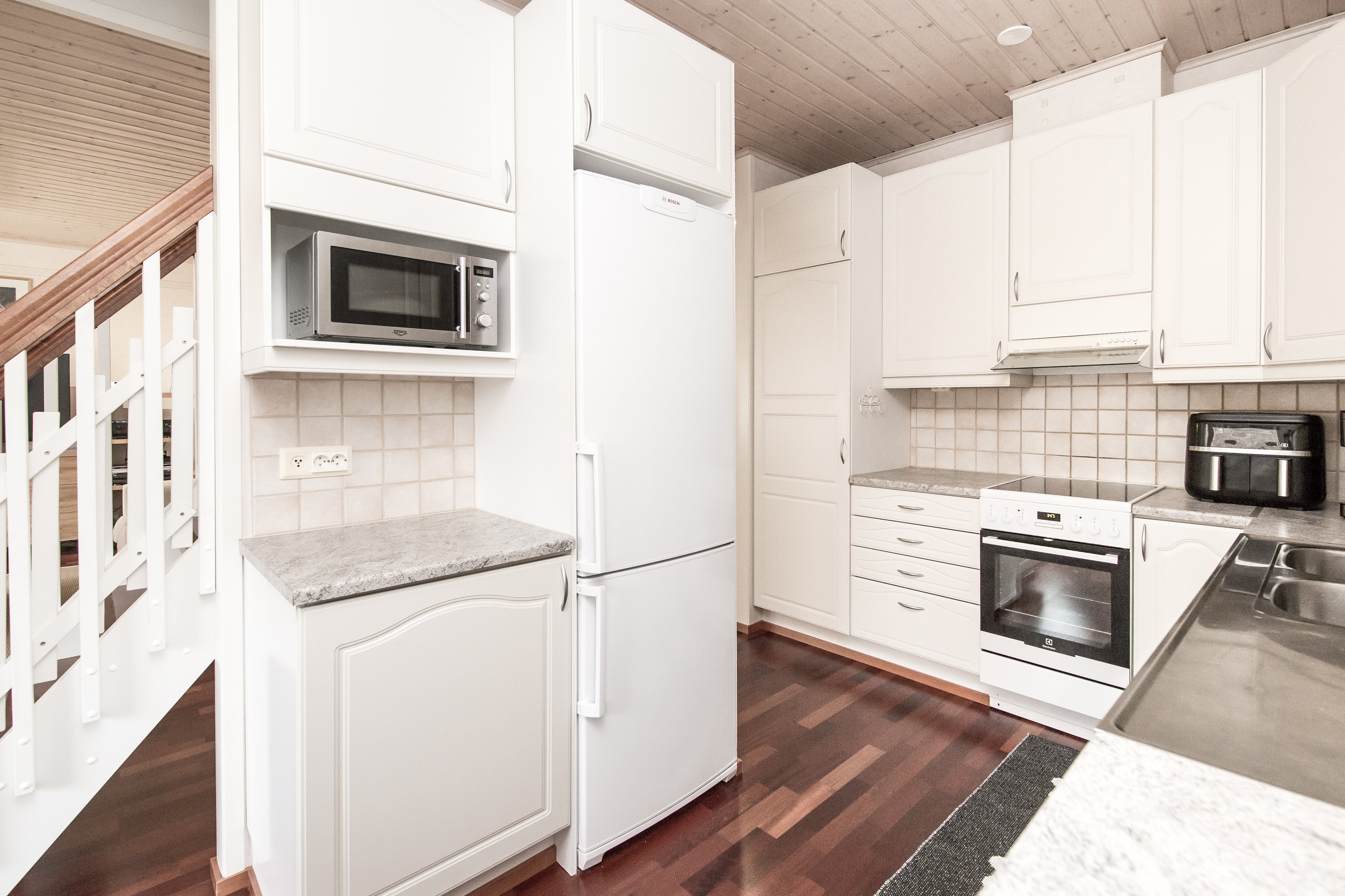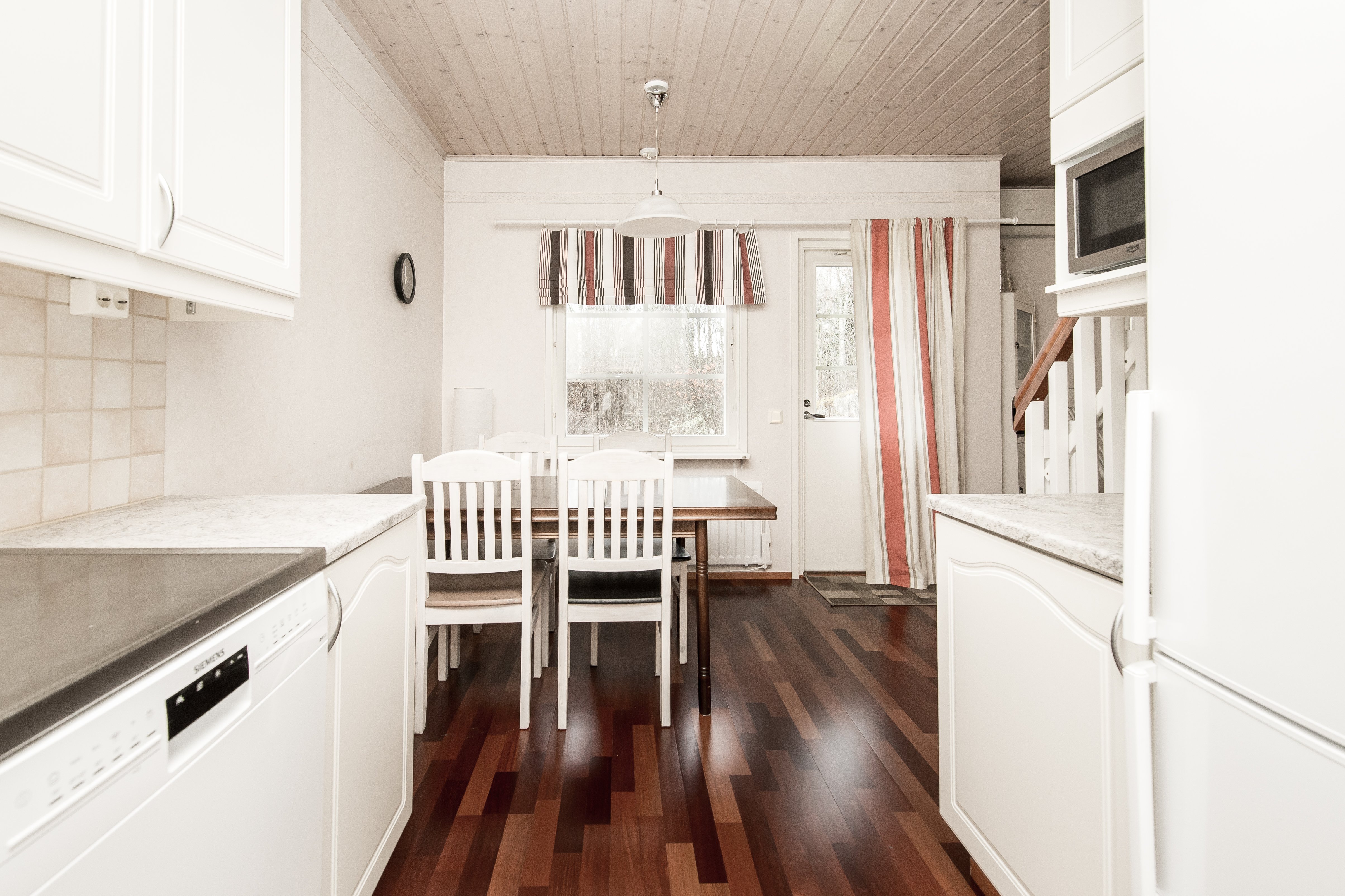 Denna bostad har en bra och funktionell planlösning. Köket är utrustat med moderna bekvämligheter, och det finns gott om arbetsyta även för den mest krävande hemmakocken. Köket ansluter sömlöst till vardagsrummet. Från vardagsrummet finns utgång till en västterrass. Bostadens bastu erbjuder möjlighet att koppla av efter en hektisk dag. I bostaden finns också en luftvärmepump som kyler under sommarvärmen och ger komfort och energieffektivitet året runt.