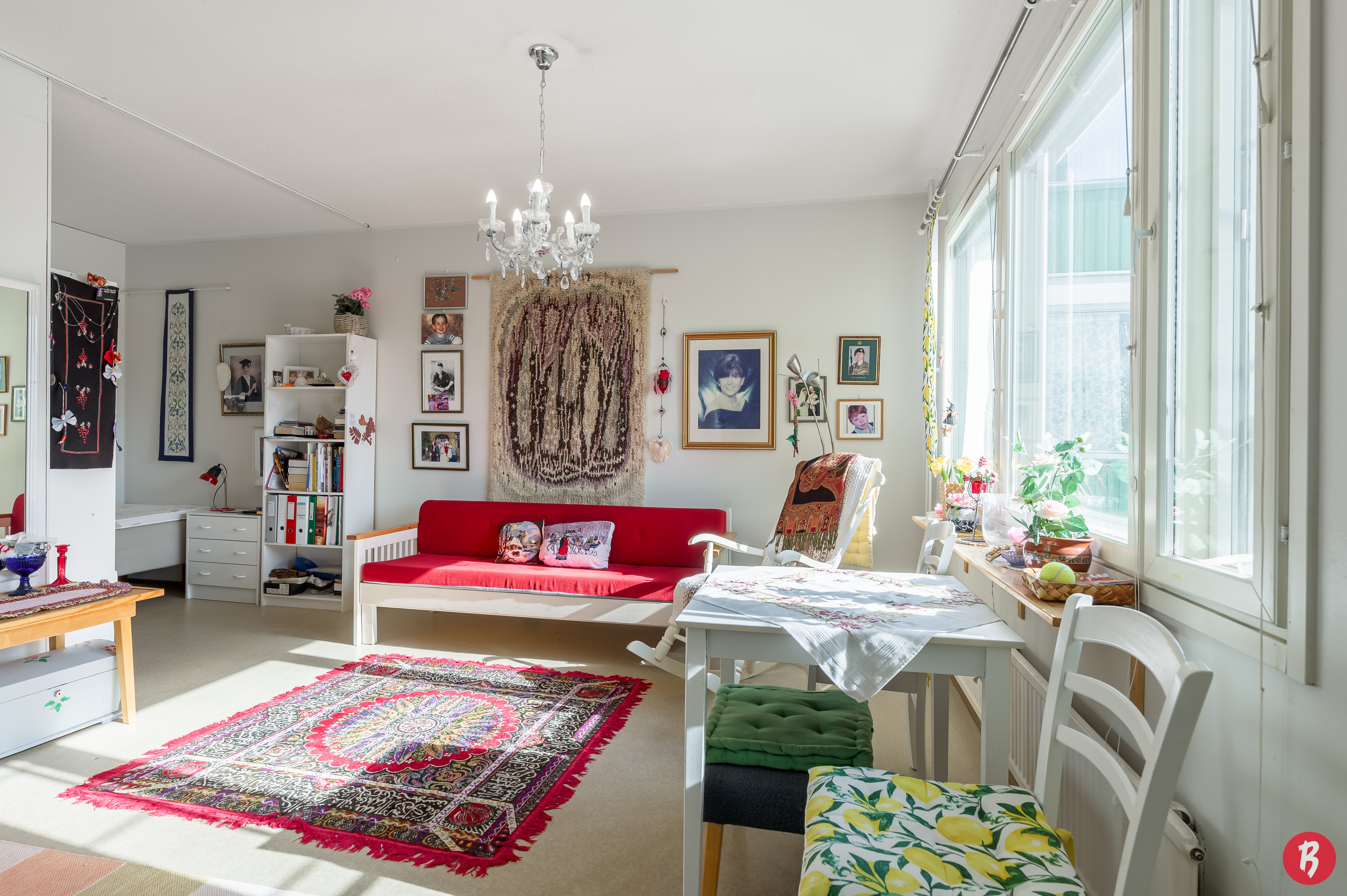 Ei tarkistusmitattu. Pinta-alat saattavat tämän ikäisissä kohteissa (yhtiö rekisteröity ennen 01.01.1992) poiketa olennaisestikin asuinrakennusten nykyisten mittaustapojen ja standardien (SFS 5139) mukaan laskettavasta asuintilojen pinta-alasta. Pinta-ala voi siis olla edellä mainittua pienempi tai suurempi.