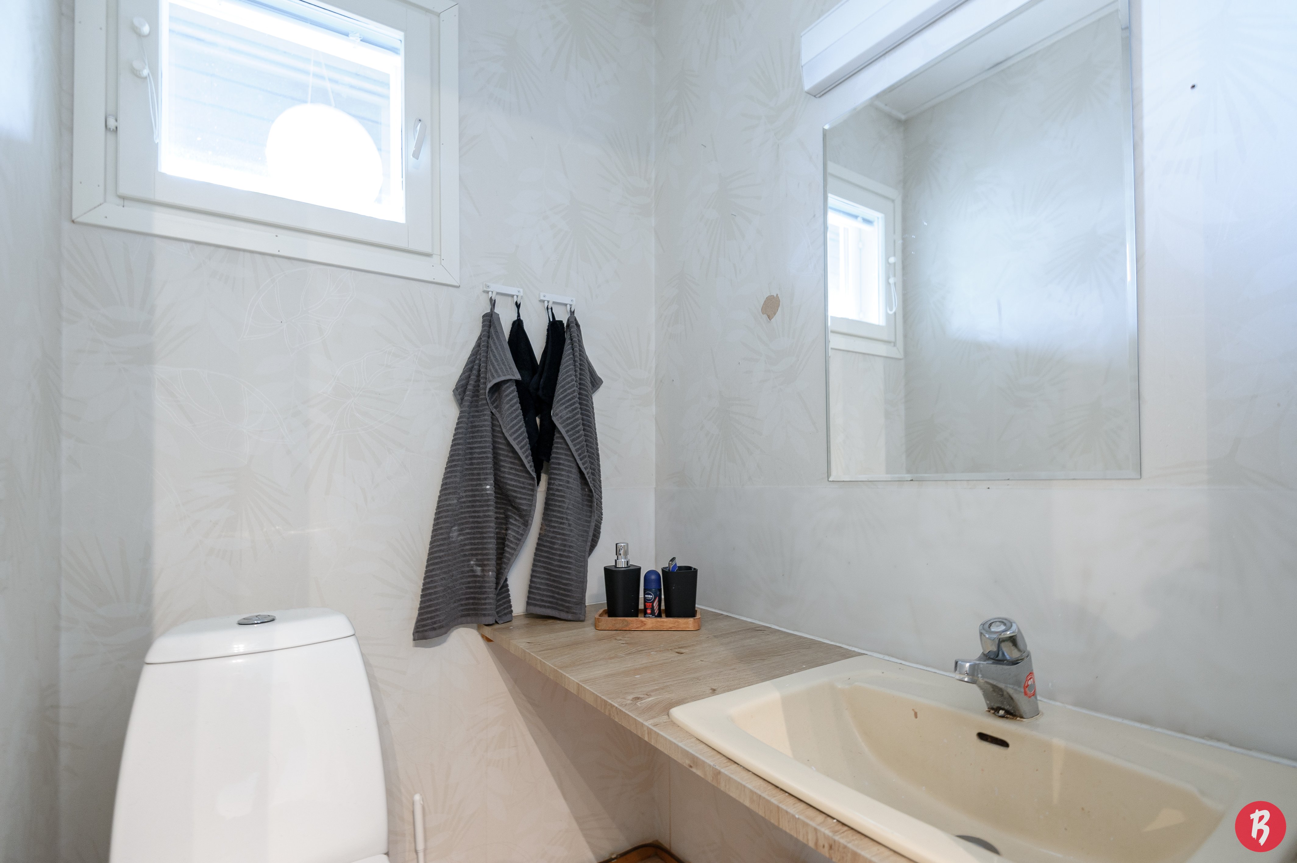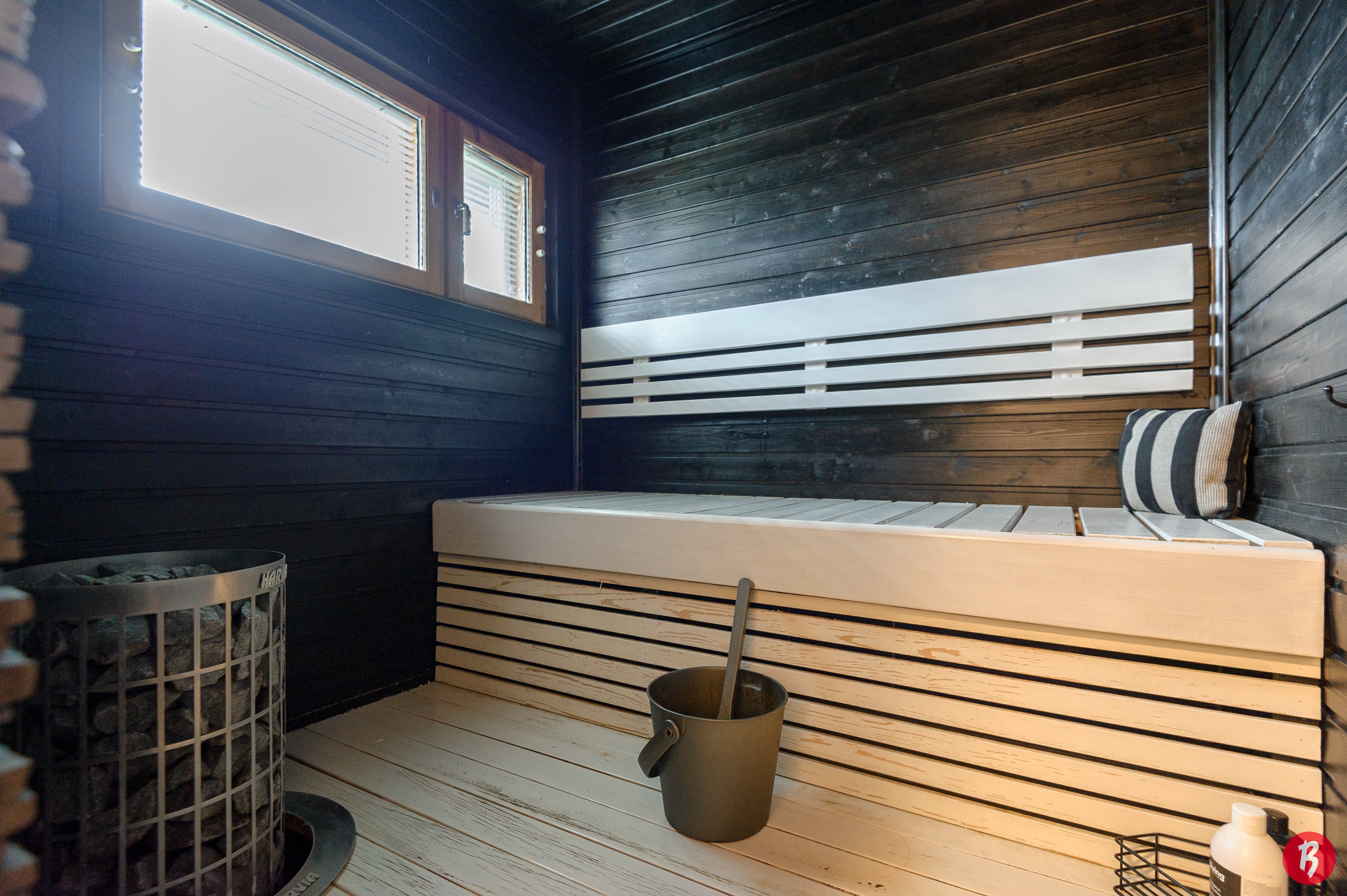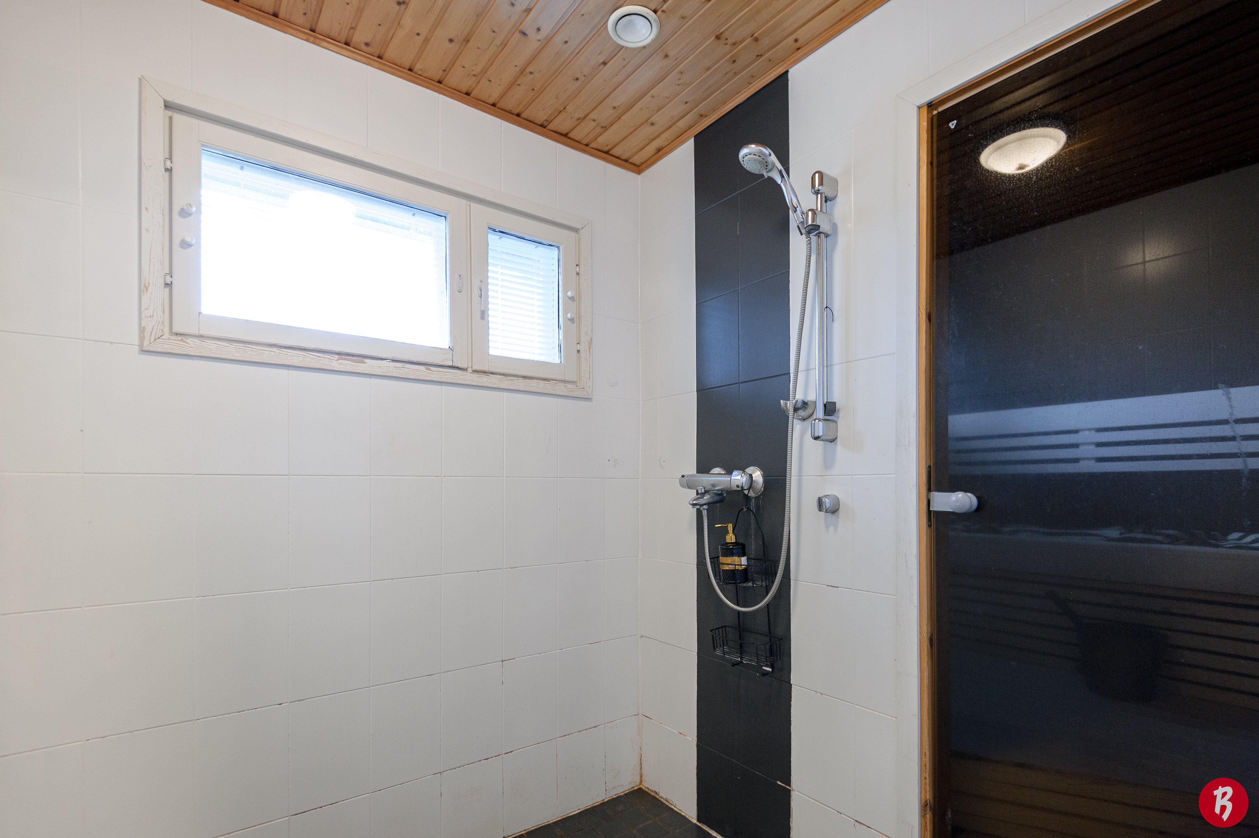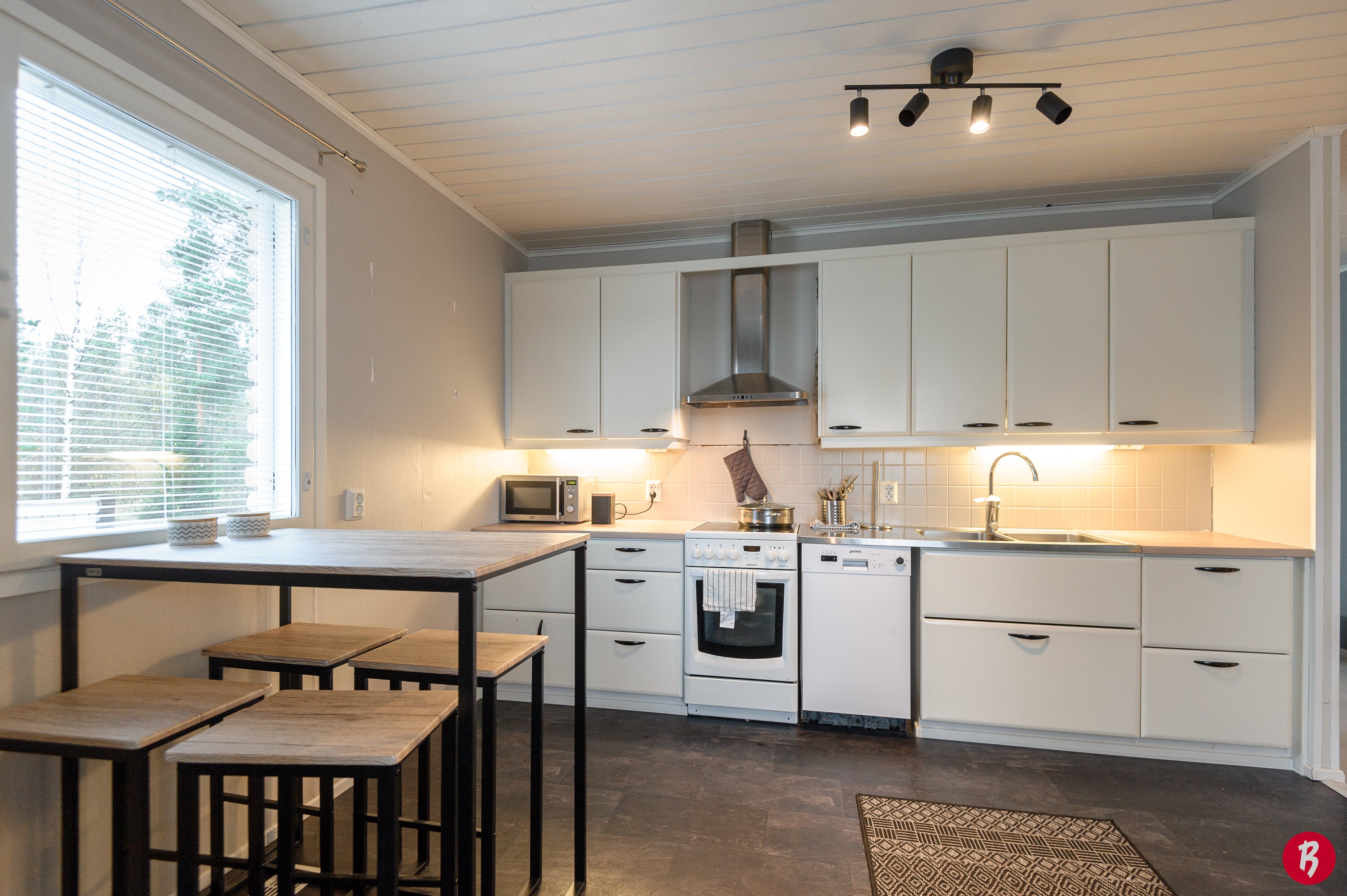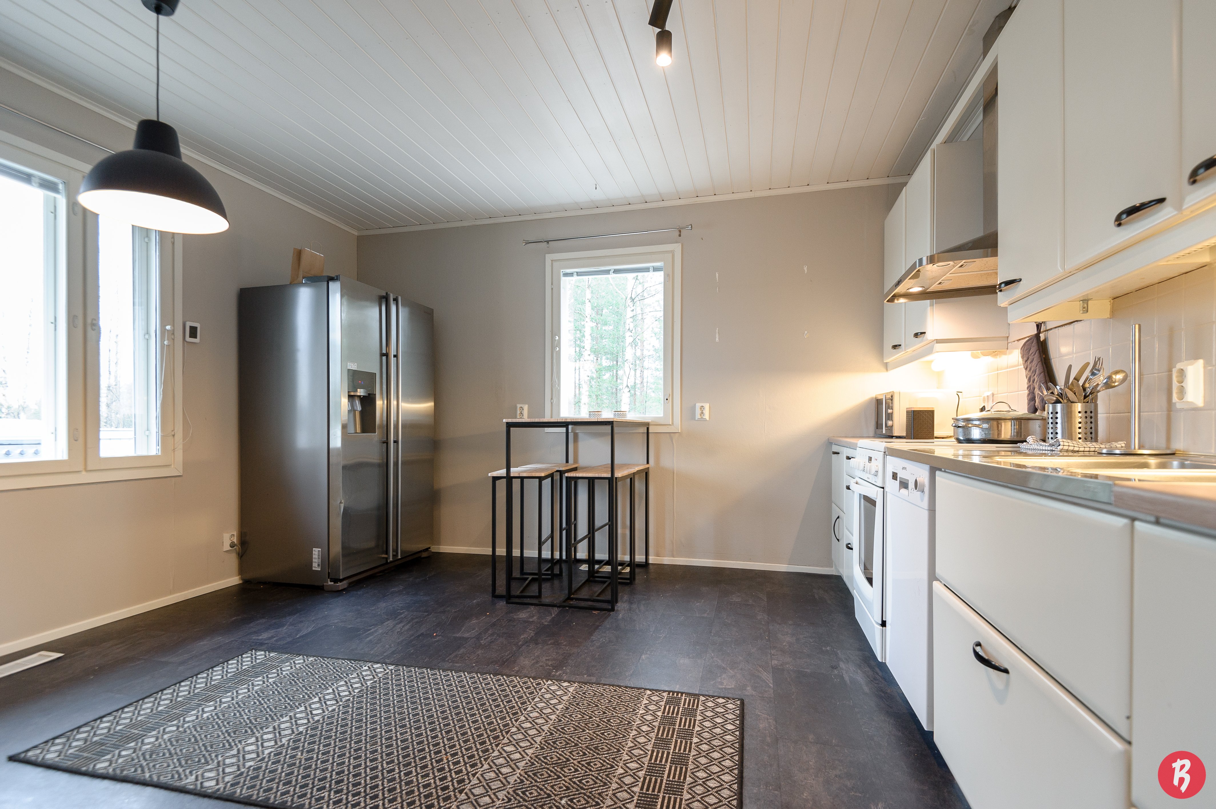 Talossa on kaksi makuuhuonetta, tilava olohuone, ja käytännöllinen keittiö, joka on varustettu nykyaikaisilla laitteilla. Sauna ja kylpyhuone tarjoavat rentoutumisen mahdollisuuden, ja kodinhoitohuoneessa on oma uloskäynti.