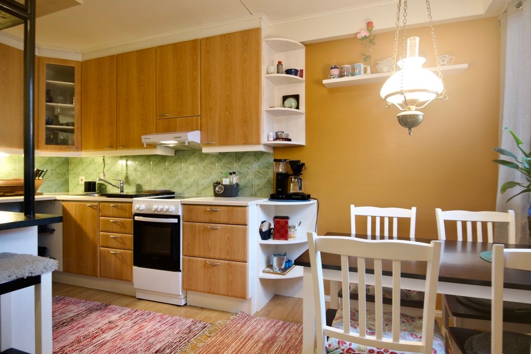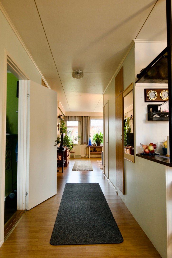 Denna gavellägenhet med tre rum och kök färdigställdes 1974 och är i gott skick.