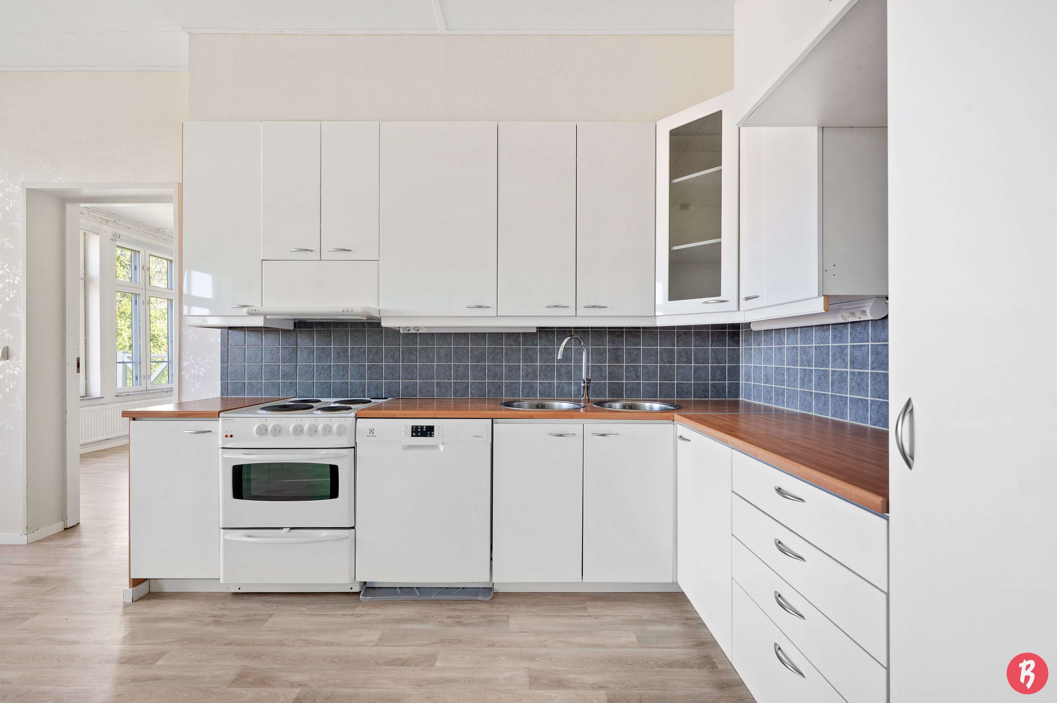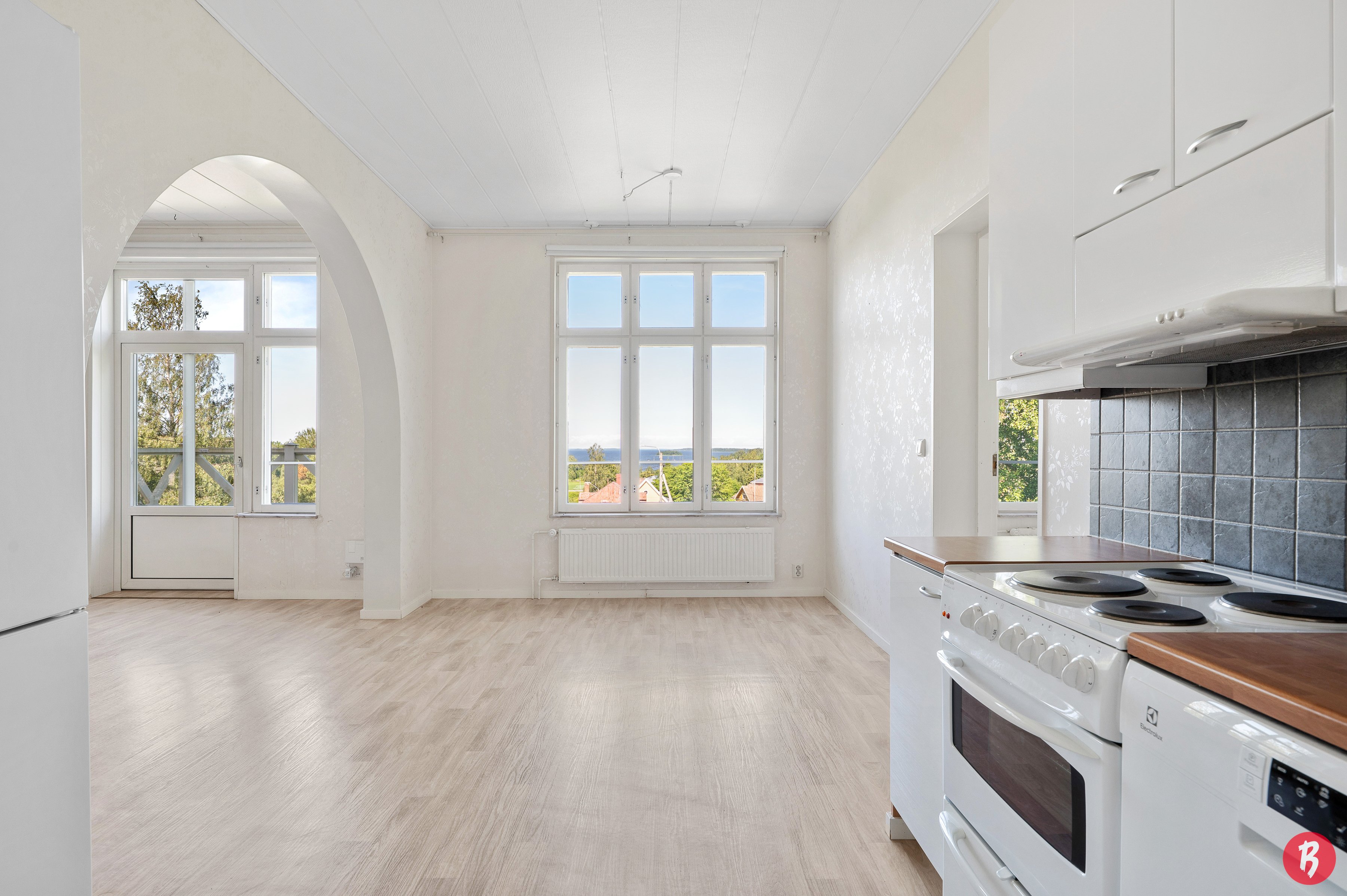 Lägenheten ligger på översta våningen, varifrån man har en fantastisk utsikt över det omgivande lugna landsbyggden. På balkongen kan du njuta av den havsnära atmosfären och de vackra vyerna. Uppvärmningen sker med energieffektiv bergvärme, vilket håller driftkostnaderna låga.