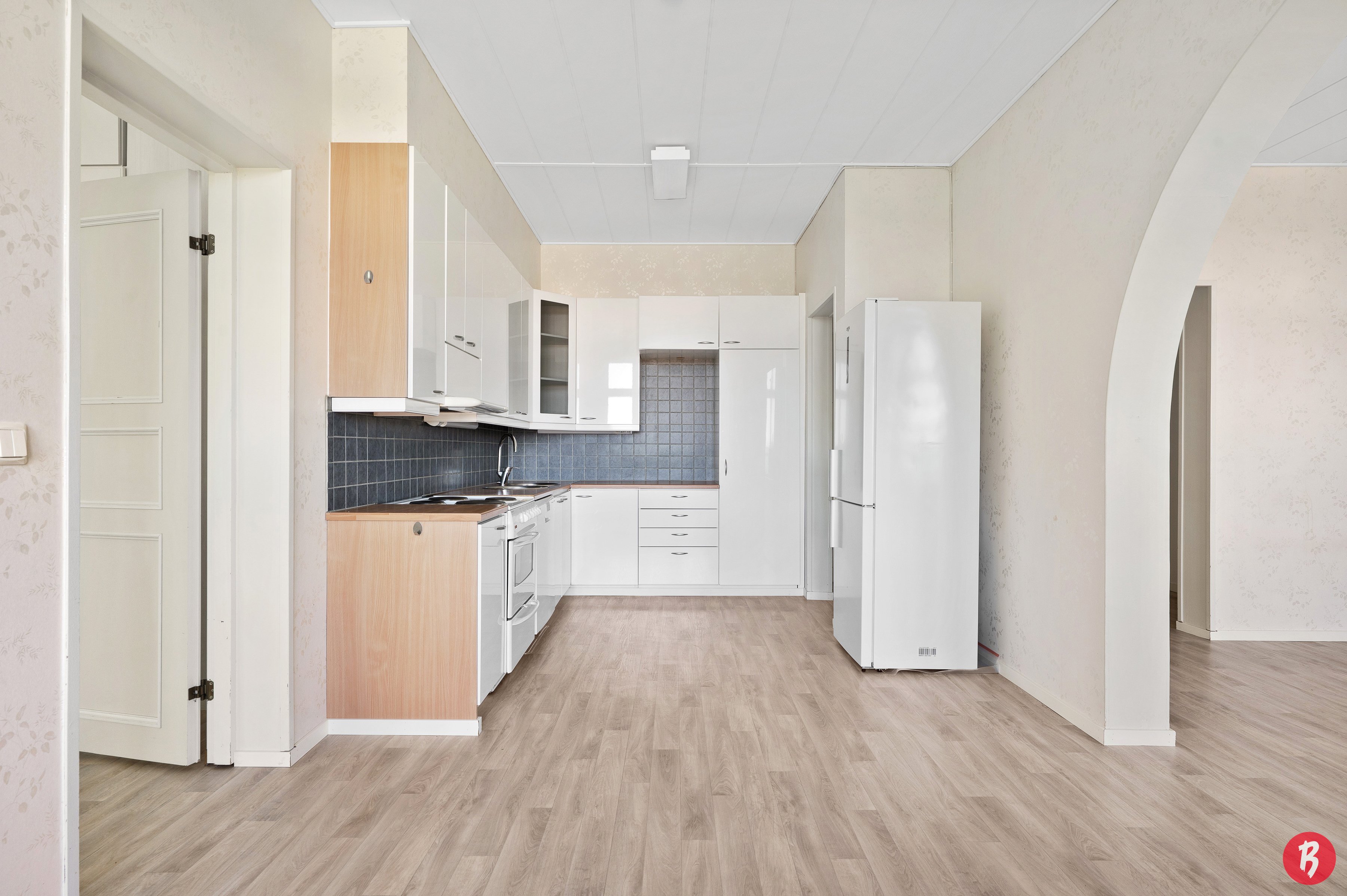 I ett charmigt trähus på Kimovägen 18, mitt i Oravais centrum, väntar en ljus och rymlig tvårummare på sin nya ägare. Denna bostad, som är byggd år 1934 och senare totalrenoverad, erbjuder både komfort och praktiska lösningar. Det rymliga köket är välutrustat, och den egna bastun – perfekt för avkopplande stunder.