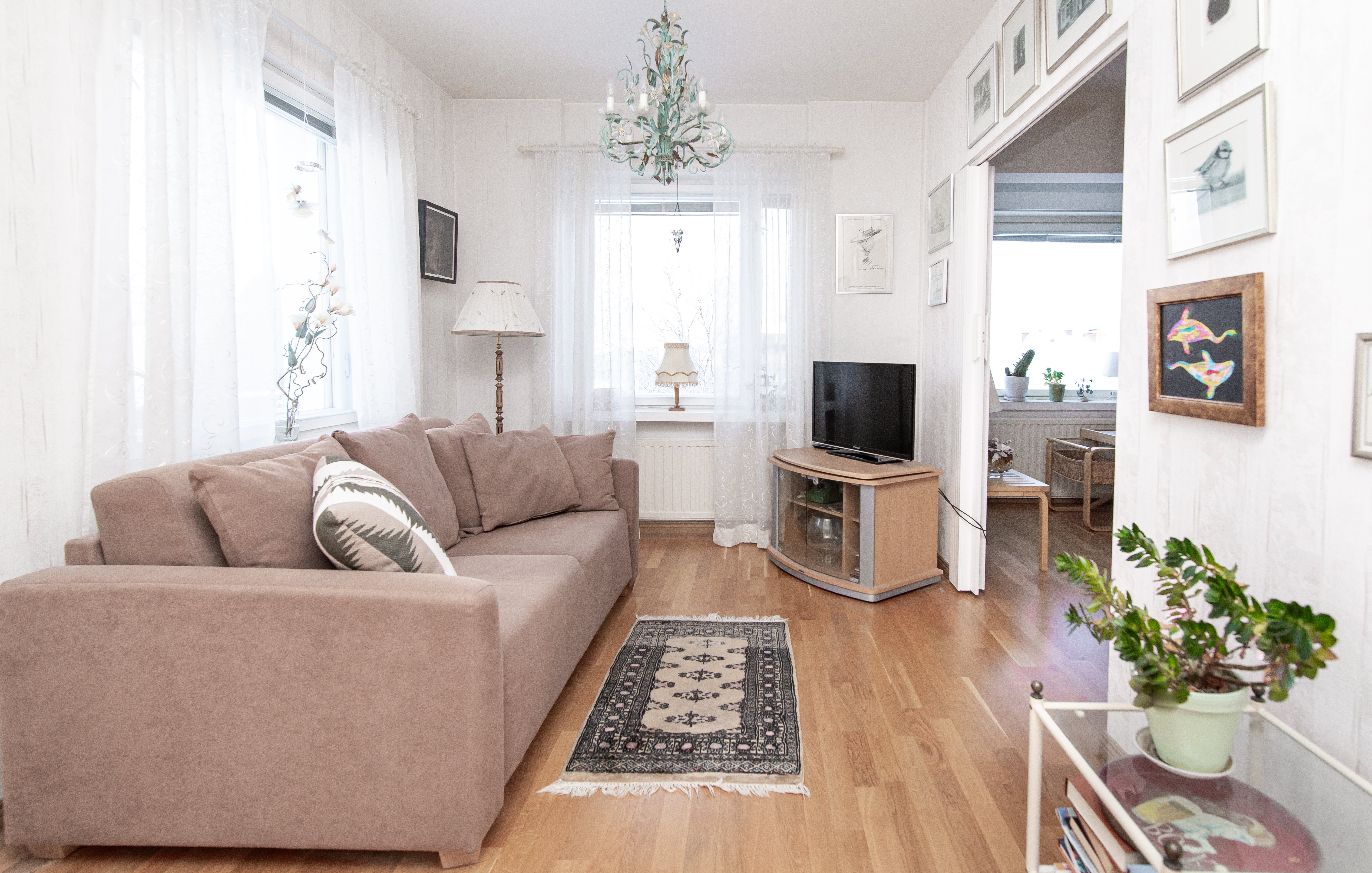 Denna bostad är ett utmärkt val både för en mindre familj och för paret som uppskattar enkelheten och bekvämligheten med att bo i centrum. Du kan flytta in som den är eller renovera den till ditt drömhem!