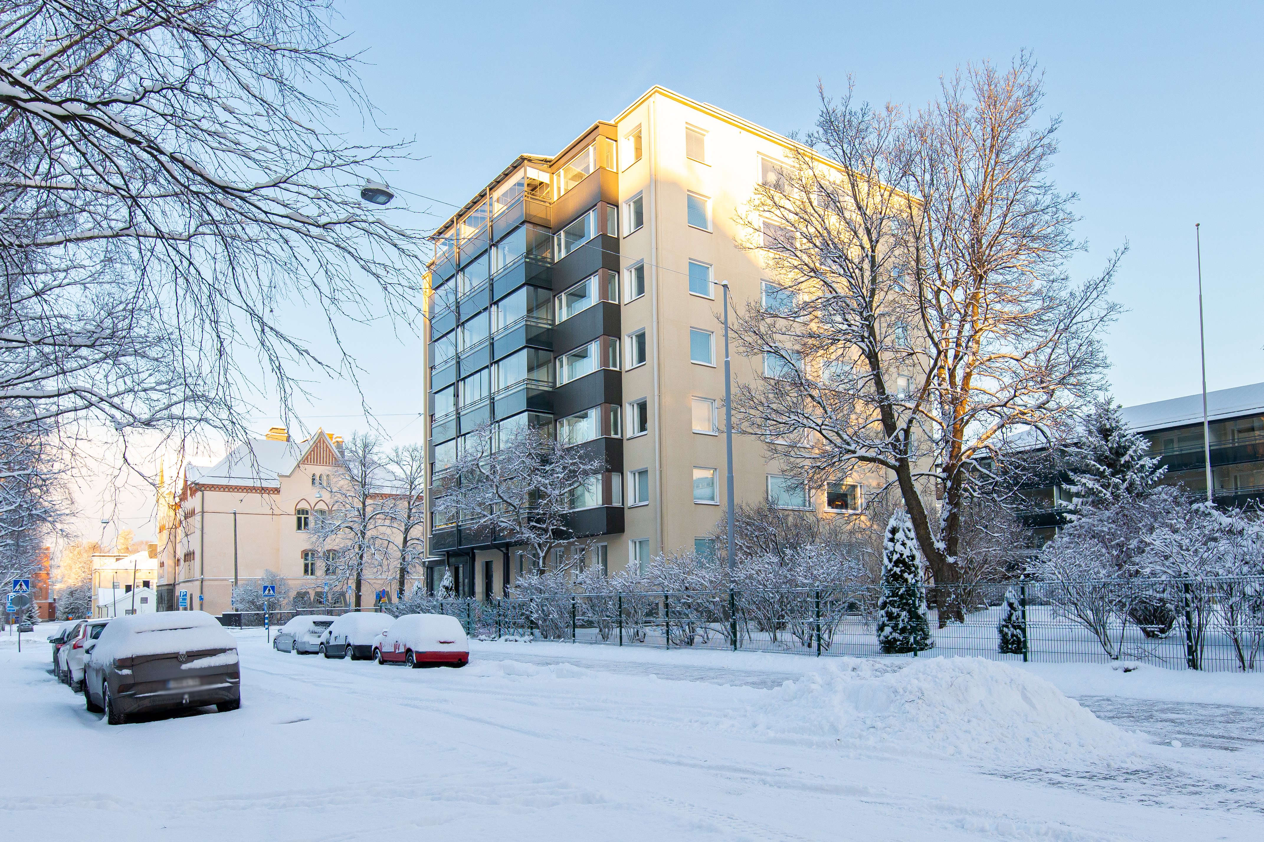 Kirkkopuistikko 29:ssä sijaitseva viihtyisä kolmio tarjoaa erinomaisen mahdollisuuden asua Vaasan keskustan sykkeessä.