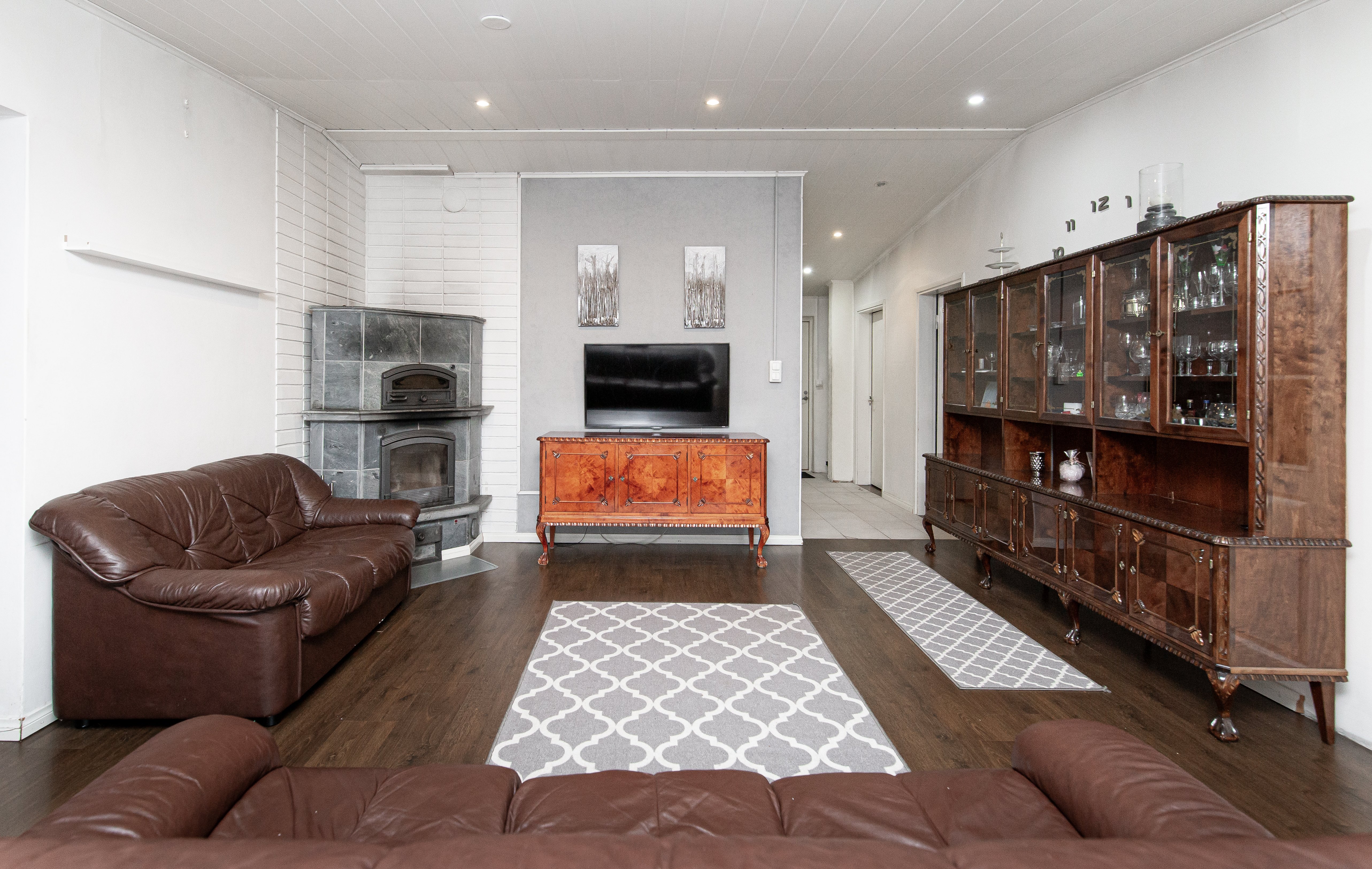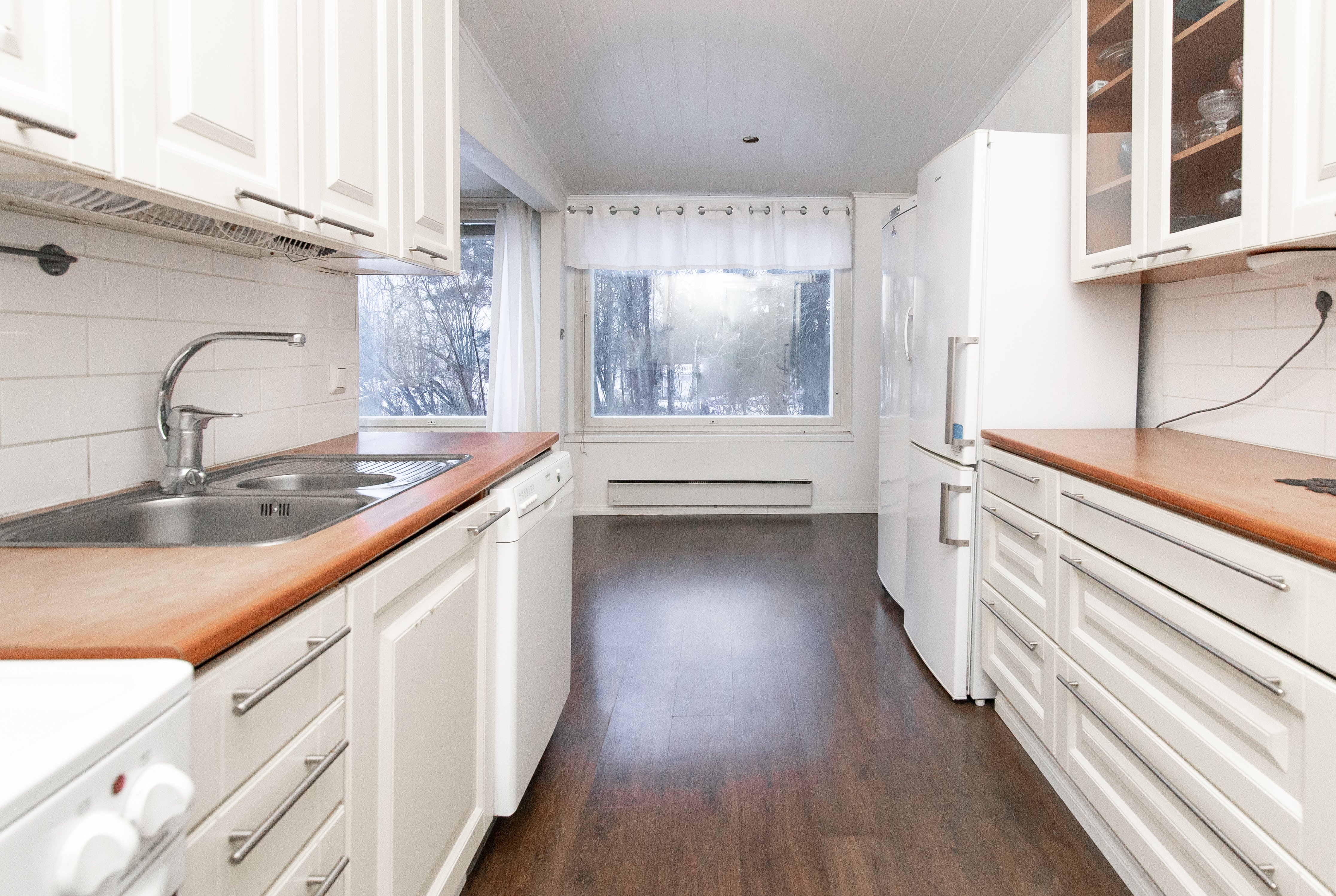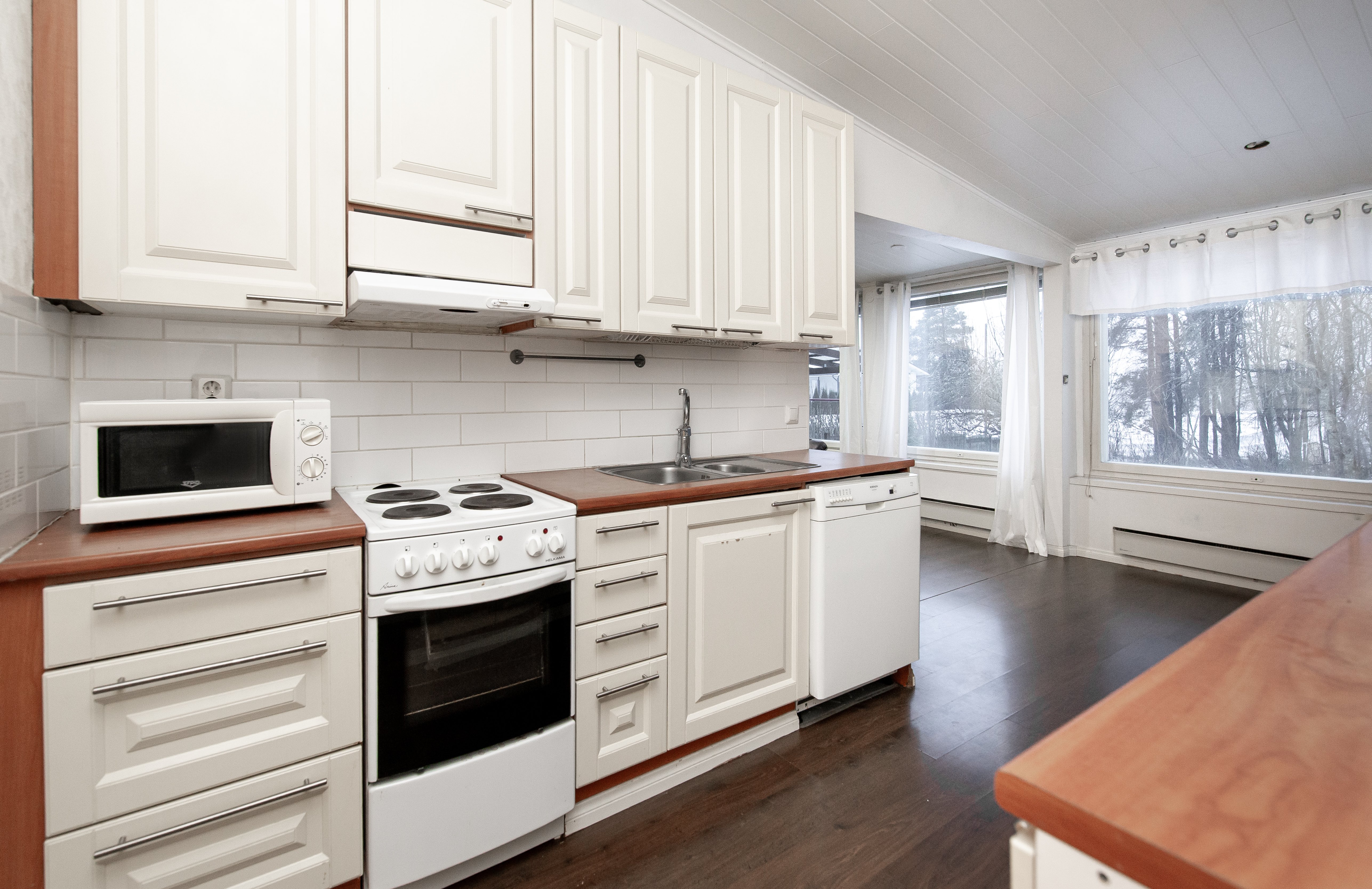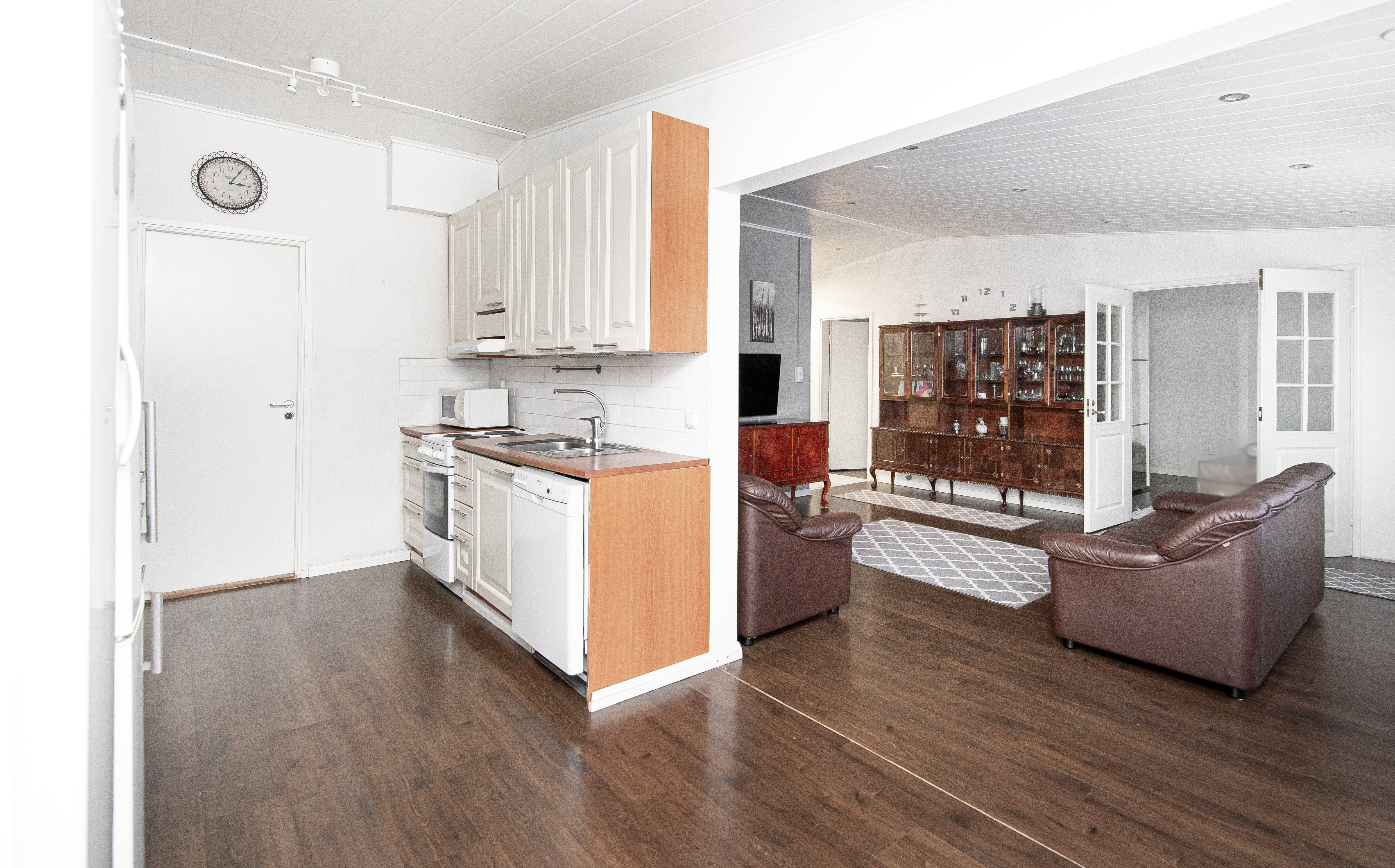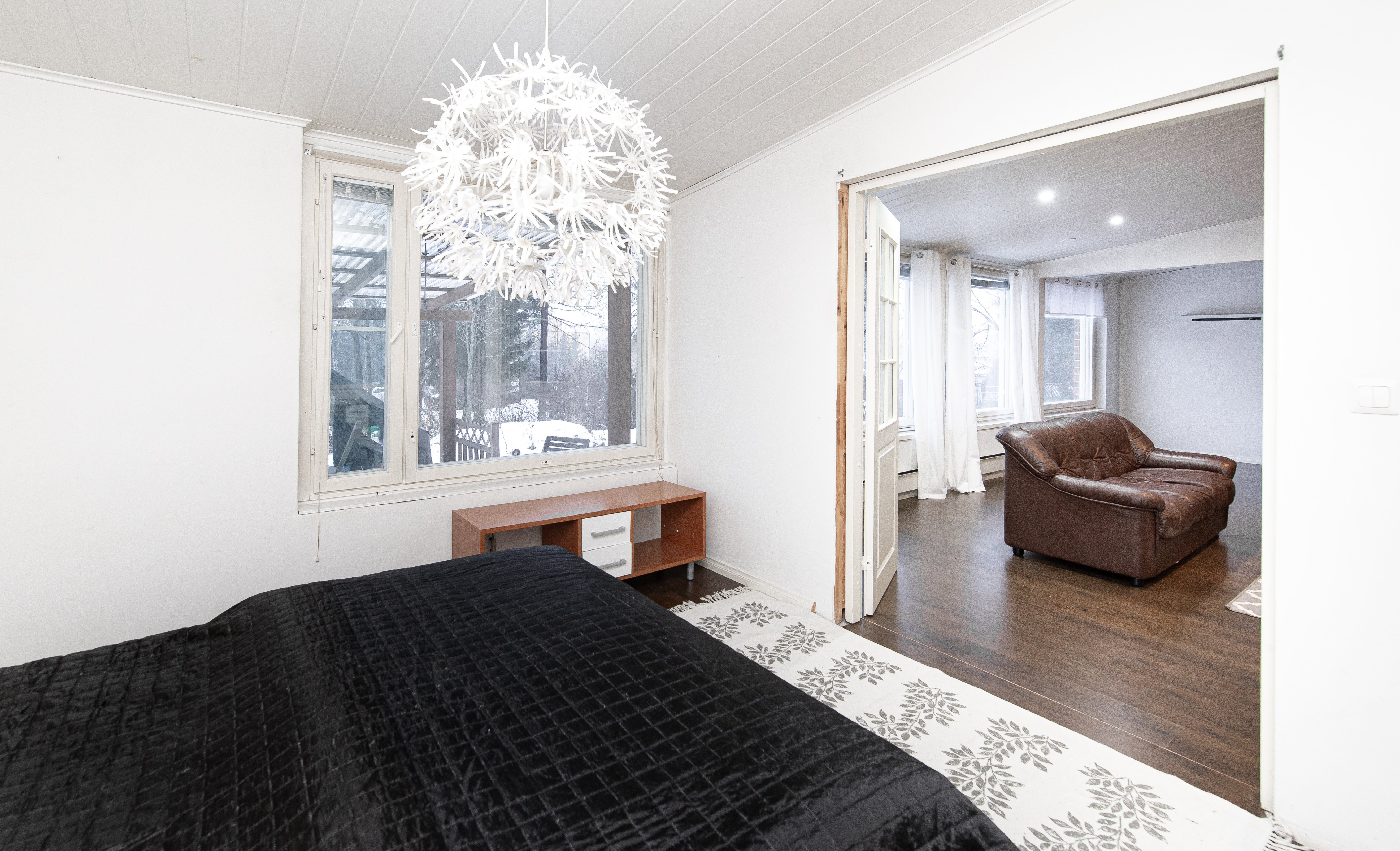 Kodissa on kolme makuuhuonetta, jotka tarjoavat riittävästi tilaa perheen tarpeisiin. Olohuoneen takka luo lämpöä ja tunnelmaa, ja keittiö on varustettu kaikilla tarvittavilla kodinkoneilla. Sauna tarjoaa rentouttavat löylyt pitkän päivän päätteeksi.