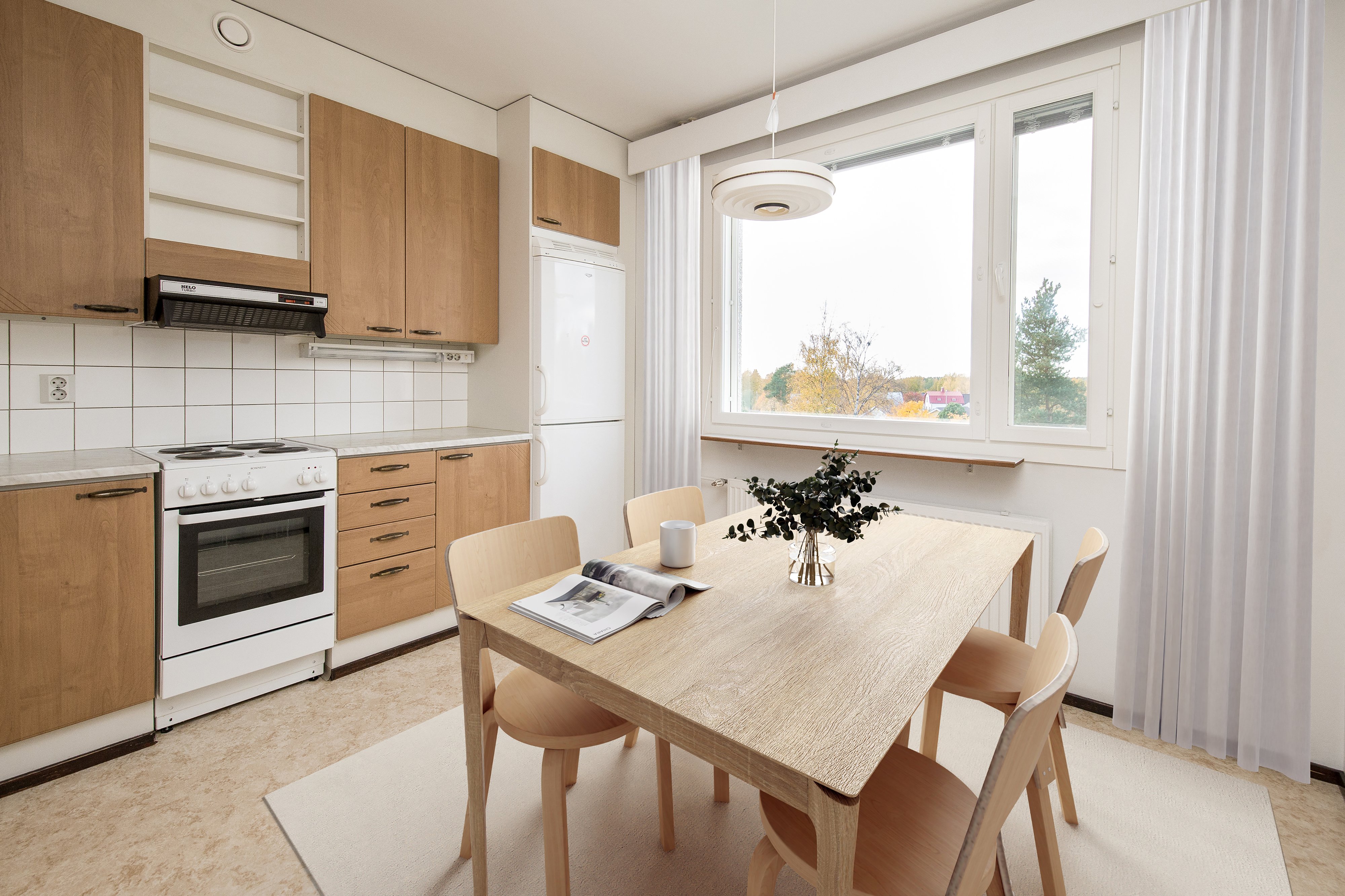 Tässä läpitalon asunnossa on hyvä ja toimiva pohjaratkaisu, sekä runsaasti säilytystilaa. Keittiö on riittävän kokoinen isommallekin ruokapöydälle, ja laskutilaakin löytyy runsaasti. Olohuoneesta pääset omalle, viihtyisälle ja aurinkoiselle eteläparvekkeelle, jossa voit vaikka grillata perheen ja ystävien kanssa. Pesutilat ovat hyvässä kunnossa. Ja sieltä löytyy myös oma sauna.