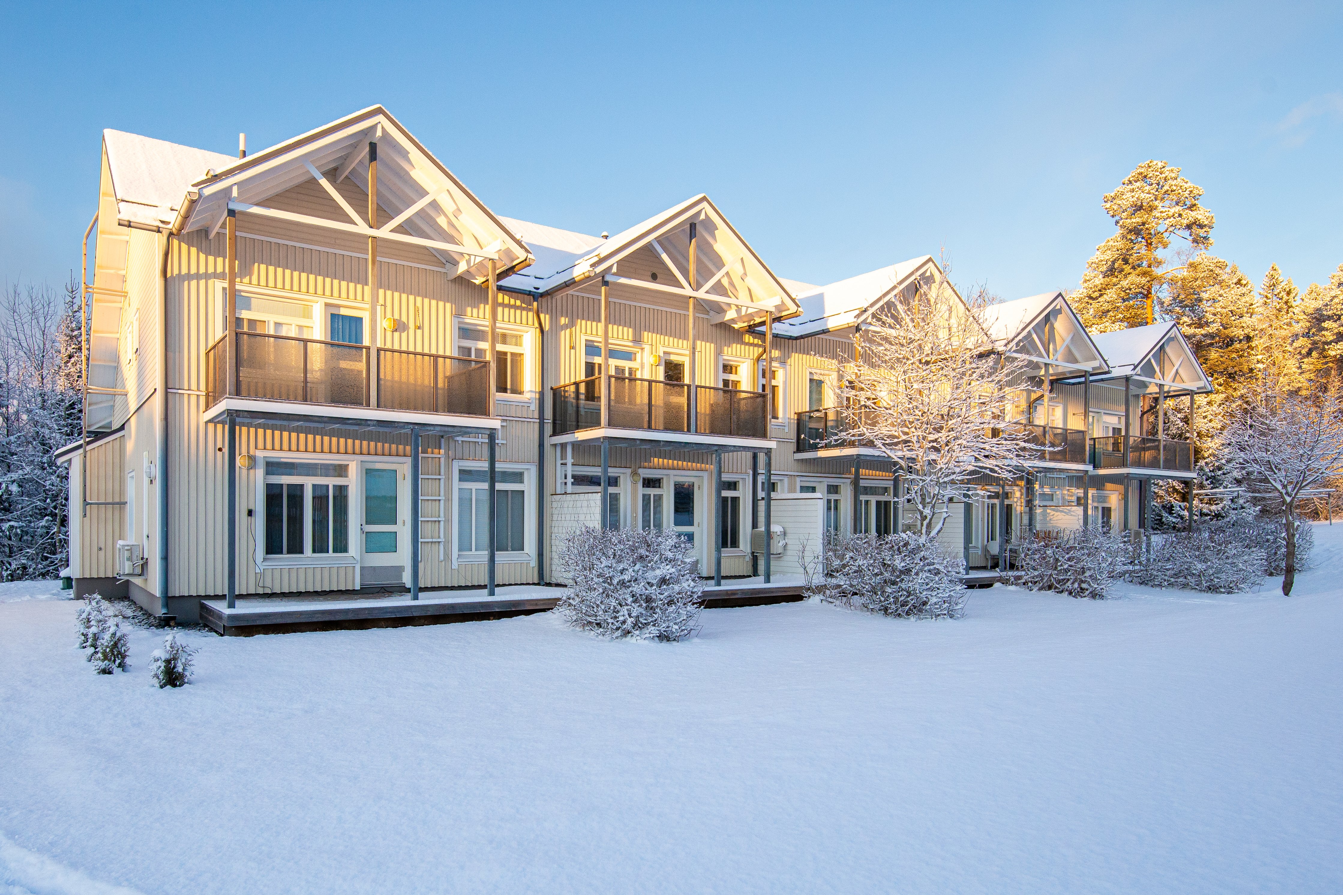 Asunnon alakerrassa on avoin pohjaratkaisu. Siellä on valoisa, moderni ja kutsuva keittiö integroiduilla kodinkoneilla. Ja olohuone, josta on kulku aurinkoiselle terassille. Alakerrassa löytyy myös pesutilat ja sauna modernilla lasiseinällä ja upotetulla kiukaalla sekä wc. Asunnossa on ilmalämpöpumppu, joka tuo lämpöä pakkaspäiviin talvipäivinä ja viilennystä kuumimpiin kesähelteisiin.