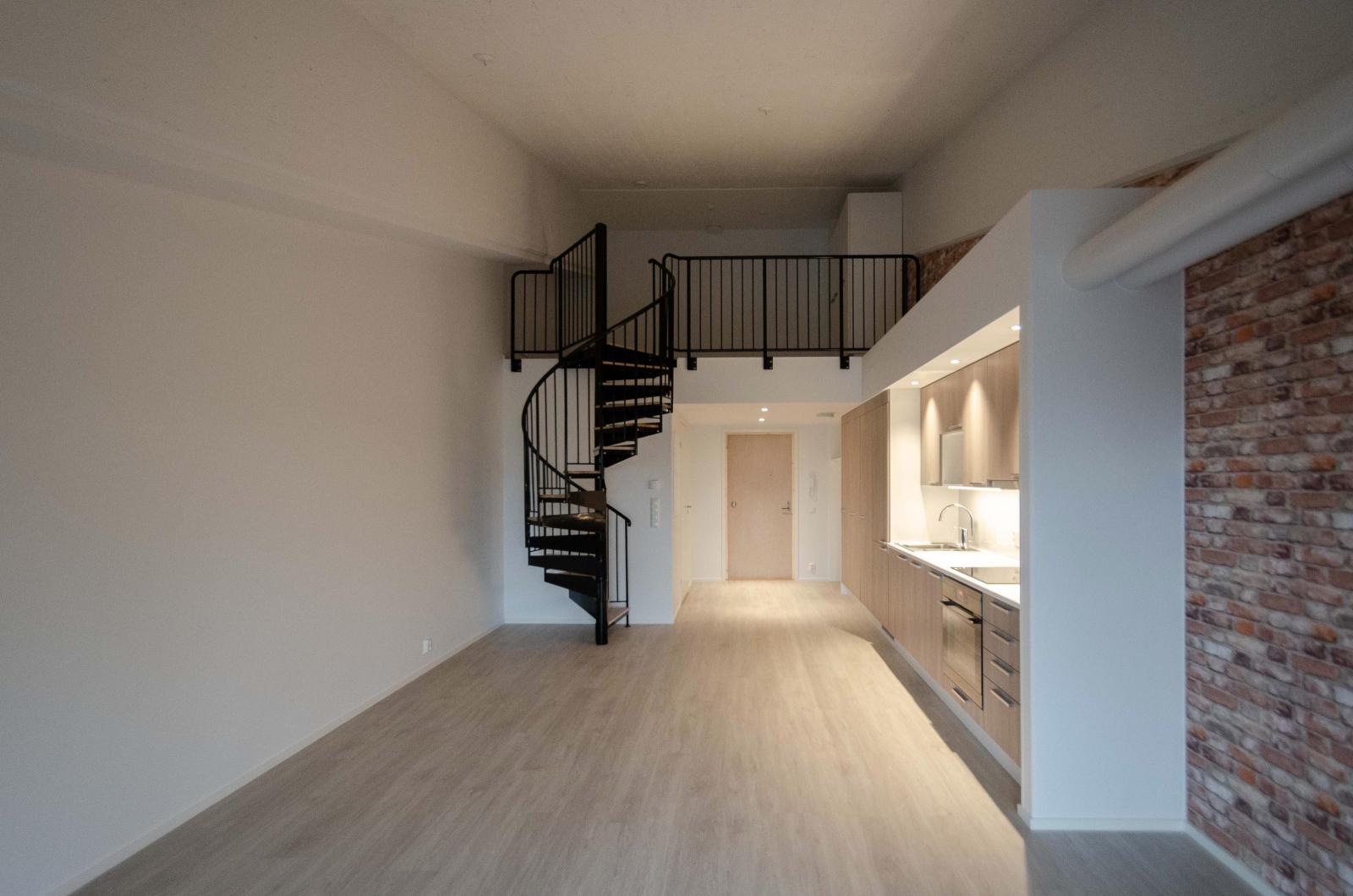 Upea loft asunto, jossa on osittain korotettu huonekorkeus, parvi sekä reilunkokoinen lasitettu parveke. Lähes tuliterä asunto jossa on kaikki mukavuudet, laadukkaat materiaalit ja kaunis vimeistely. Kylpyhuoneessa on luonnollisesti tila sekä liitäntä pesukoneelle. Asuntoon kuuluu oma häkkivarasto, taloyhtiön yhteiset saunatilat löytyvät samasta kerroksesta. Asunto vuokrataan yhdessä autohallipaikan kanssa.