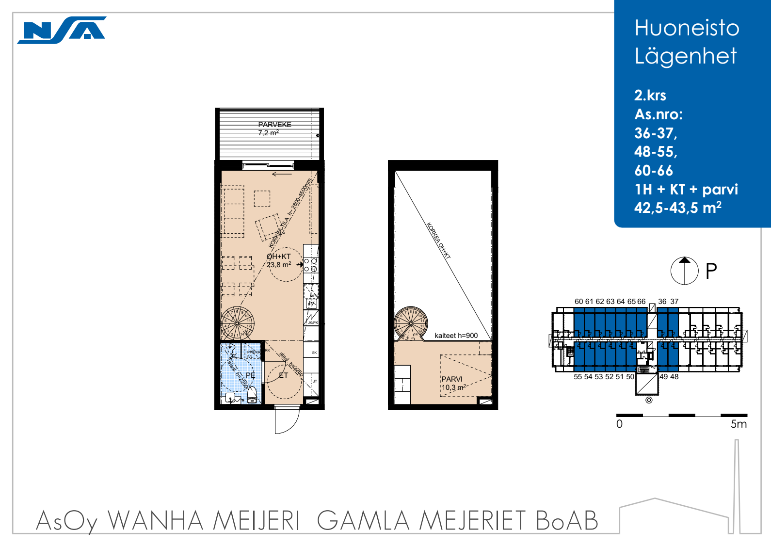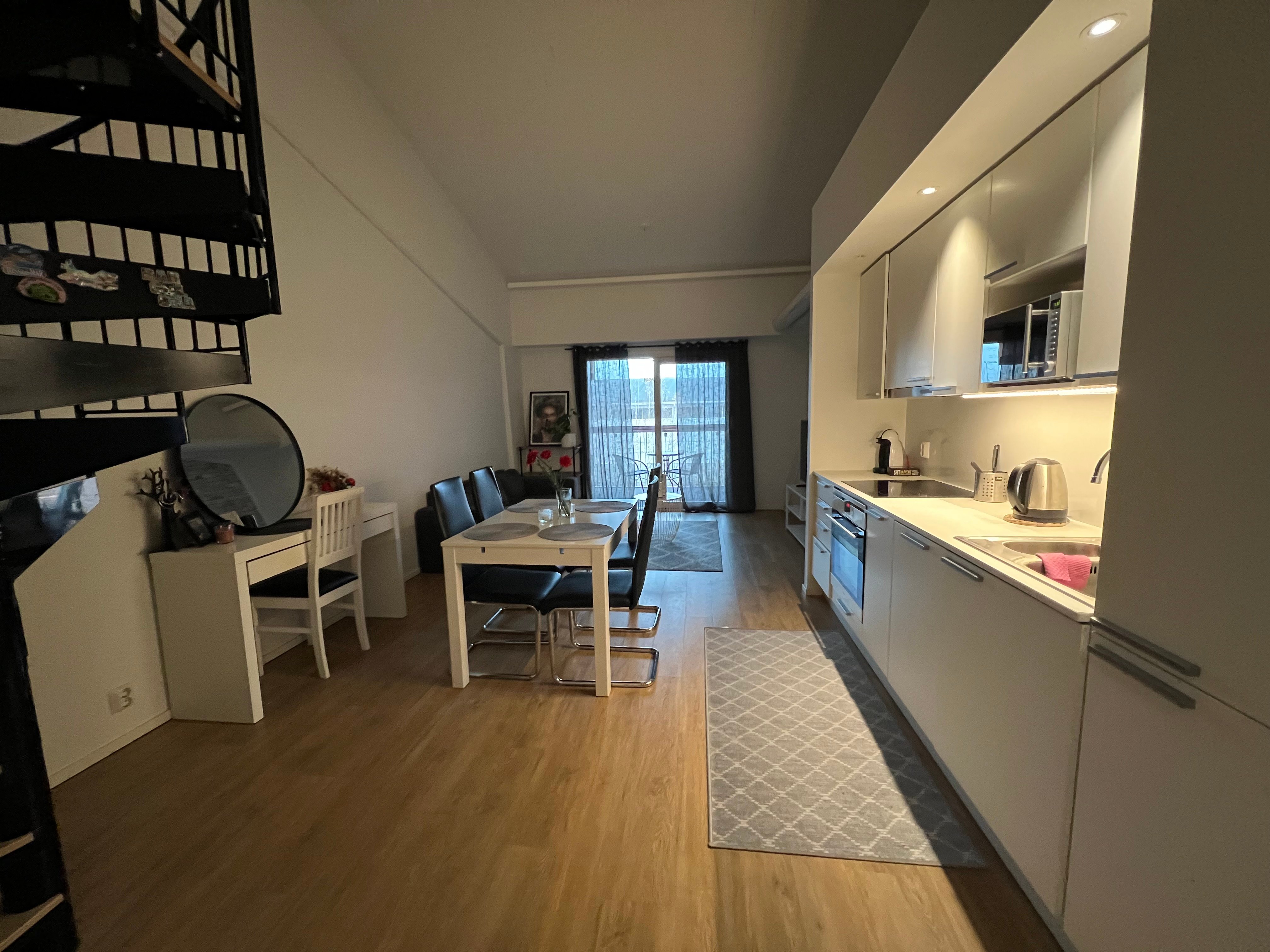 Upea loft asunto, jossa on osittain korotettu huonekorkeus, parvi sekä reilunkokoinen lasitettu parveke. Lähes tuliterä asunto jossa on kaikki mukavuudet, laadukkaat materiaalit ja kaunis viimeistely. Kylpyhuoneessa on luonnollisesti tilaa sekä liitäntä pesukoneelle. Asuntoon kuuluu oma häkkivarasto, taloyhtiön yhteiset saunatilat löytyvät samasta kerroksesta huoneiston kanssa.