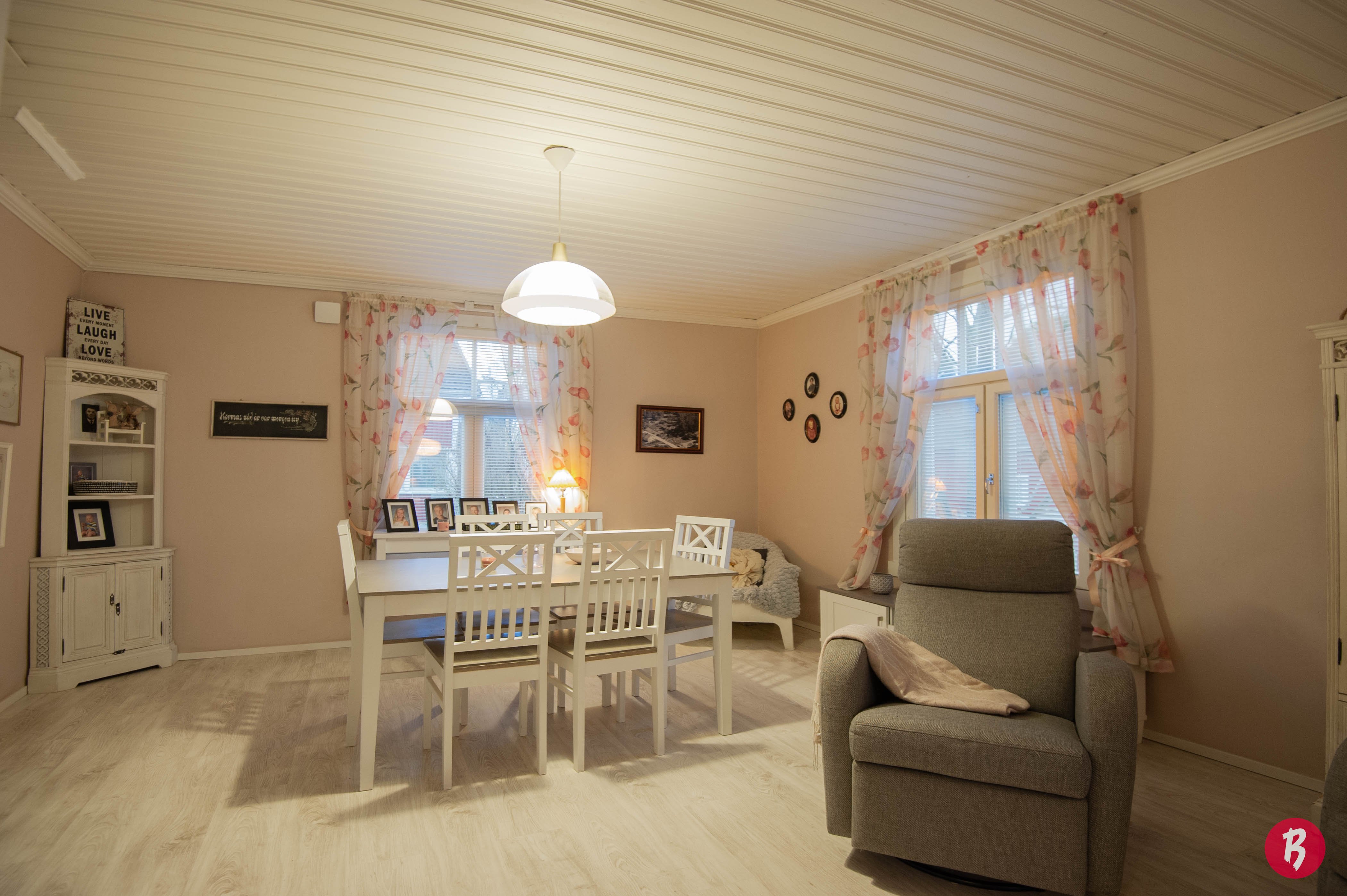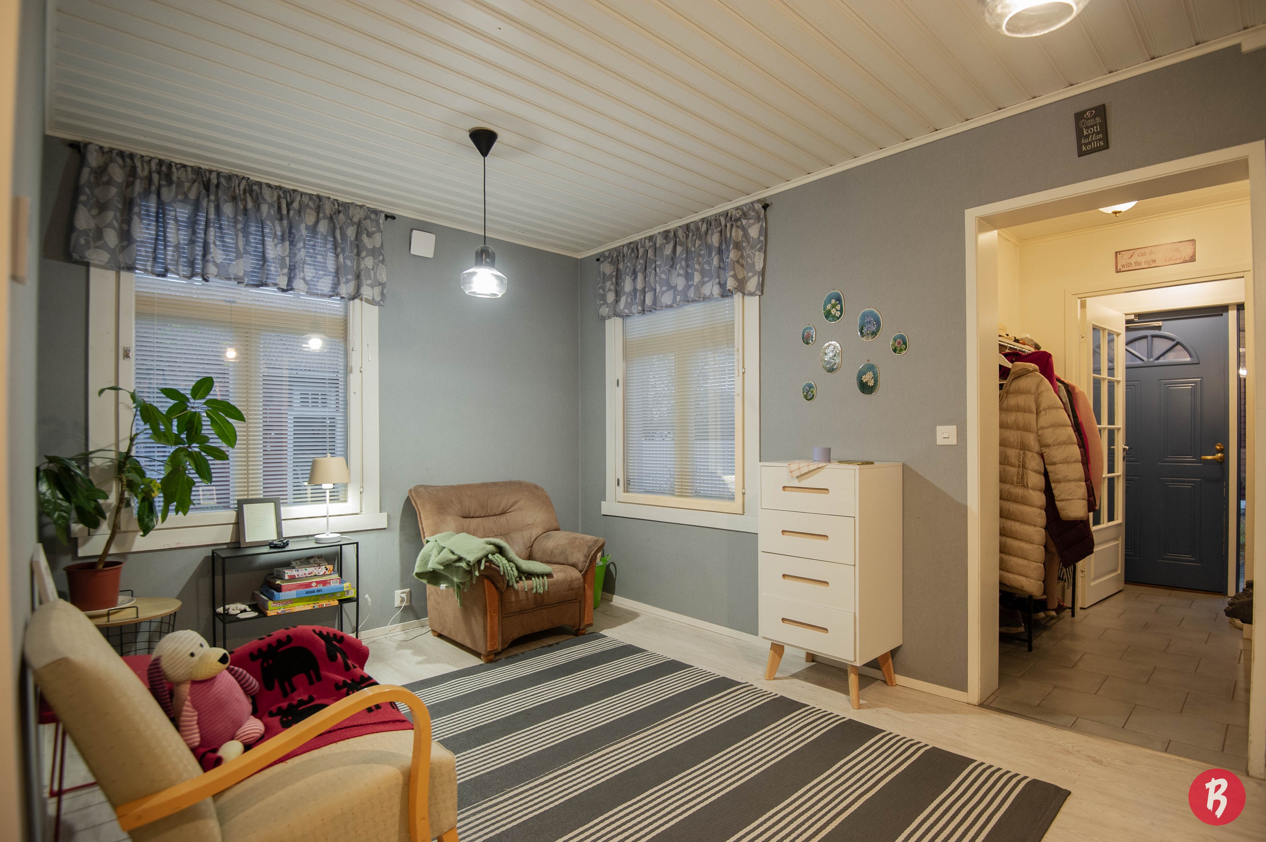 Kodin 140 neliömetriä tarjoavat runsaasti tilaa elämiseen ja yhdessäoloon. Suuret ikkunat tuovat luonnonvaloa sisään ja luovat avaran tunnelman. Talossa on neljä huonetta, keittiö, sauna sekä kaksi wc:tä, mikä tekee siitä ihanteellisen perheasunnon.